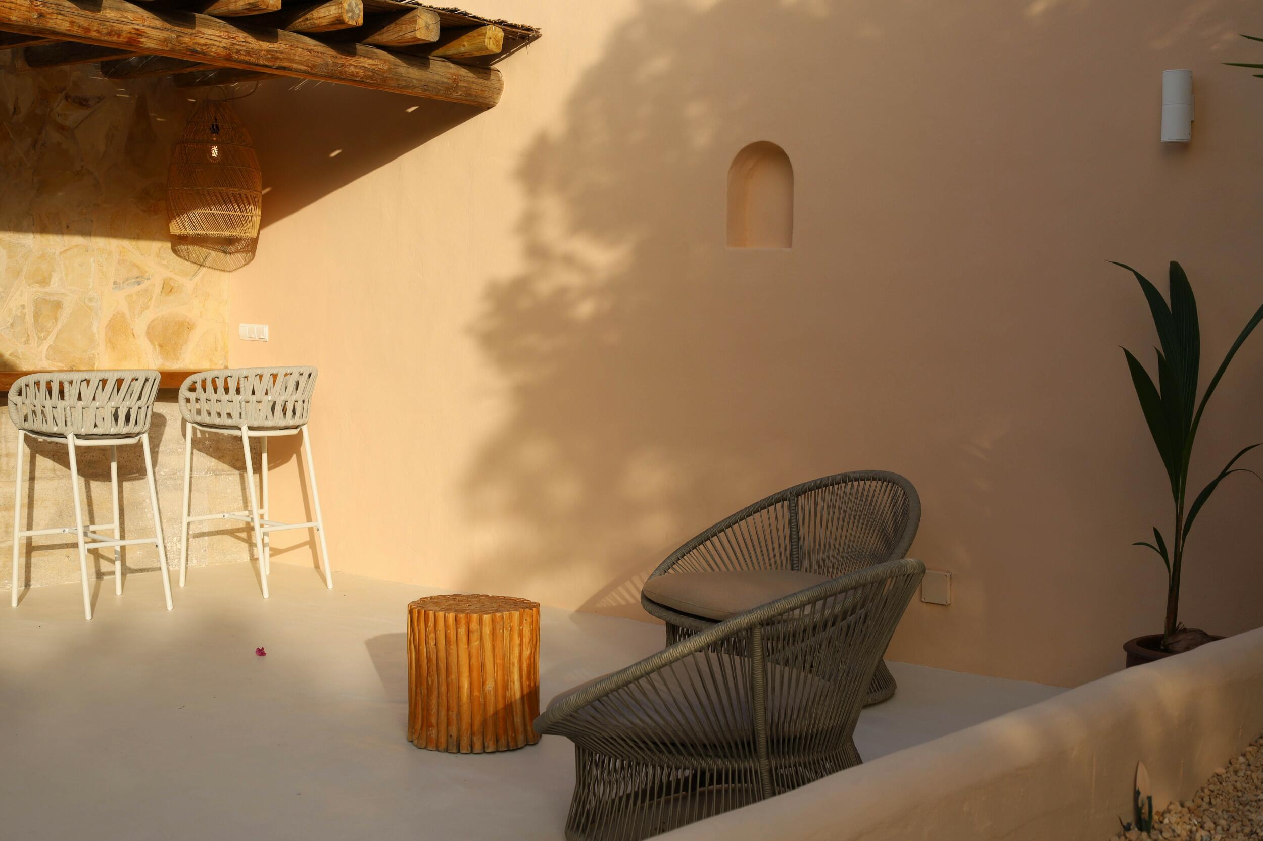 • Arquitectura ibicenca tradicional con materiales naturales y espacios abiertos