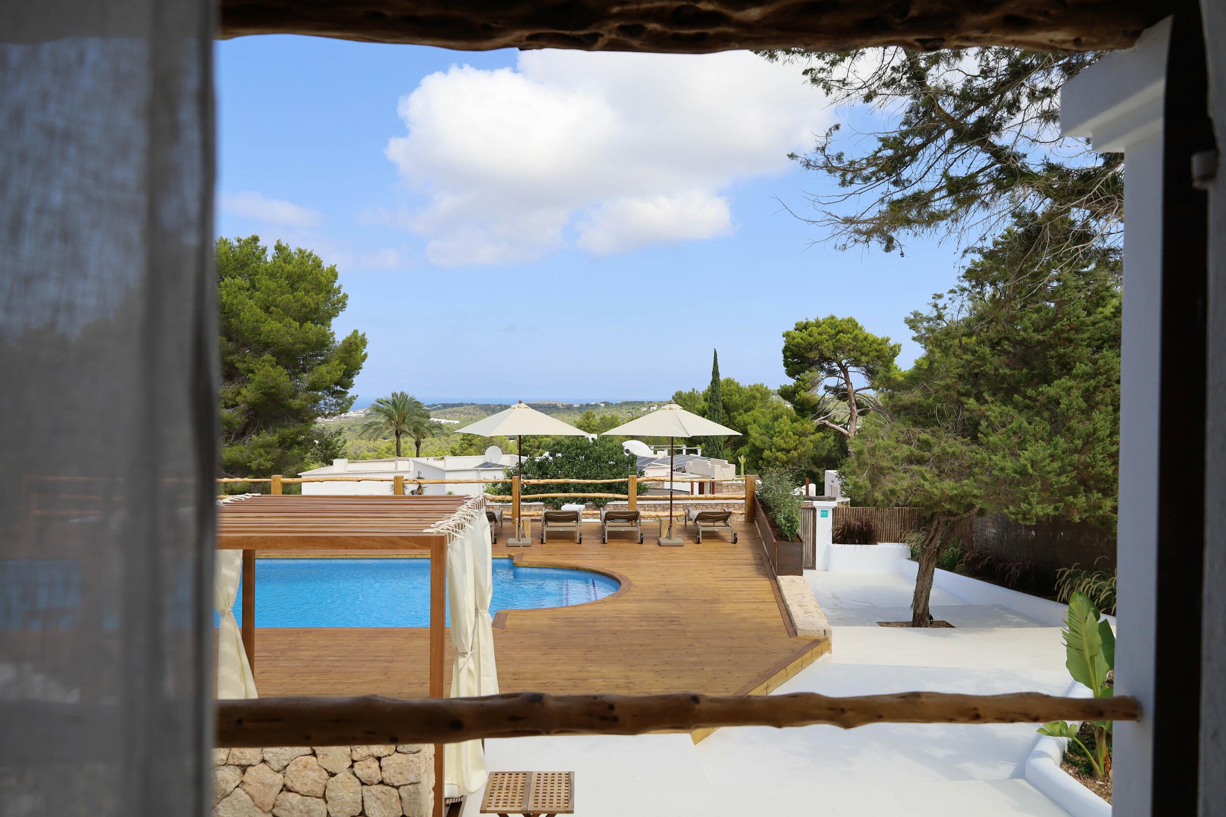 Encantadora villa de 4 dormitorios con vistas al mar y piscina en Es Cubellsdesde 4.000 € semanal