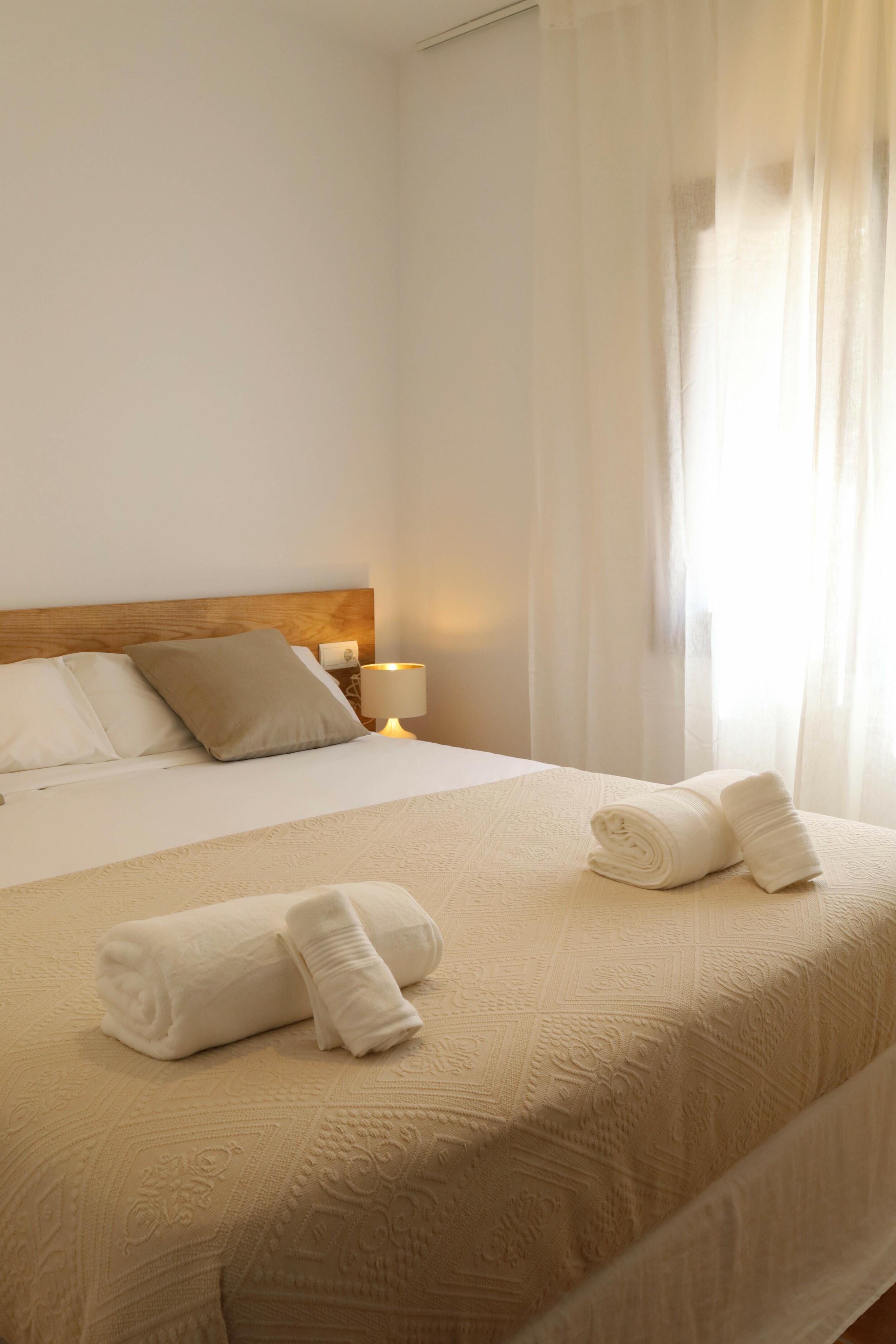 • Dormitorio principal con cama doble, A/C y vistas al mar