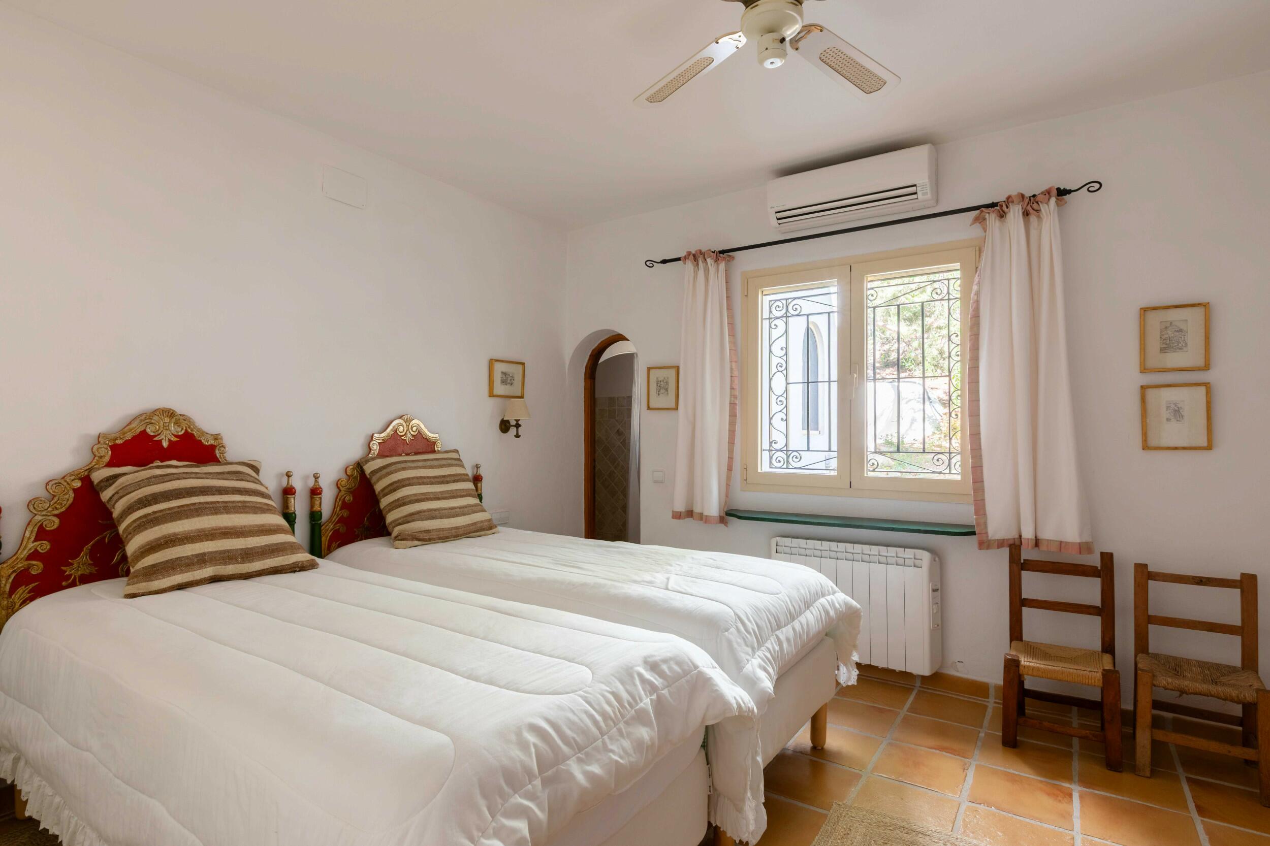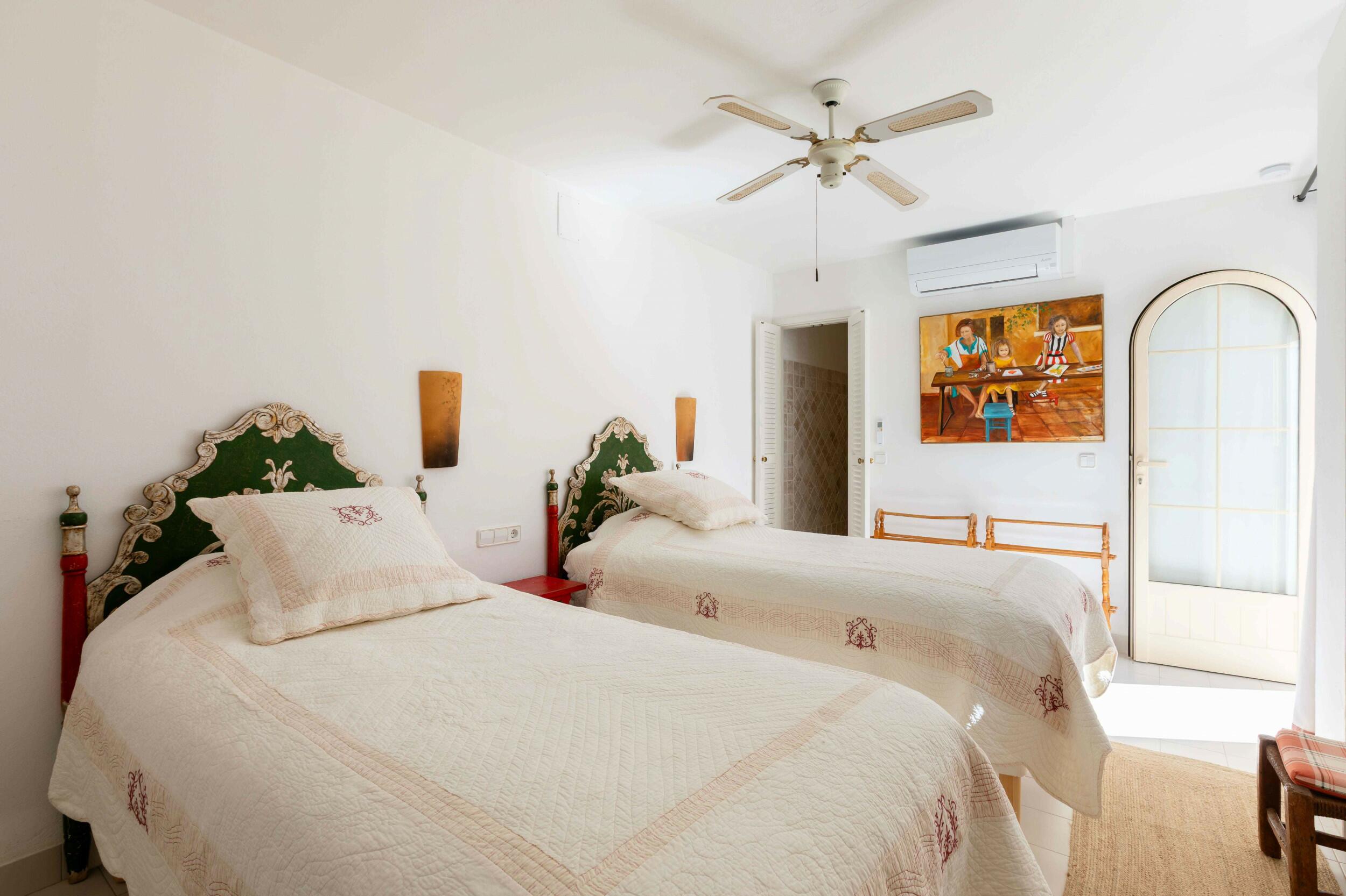 2º dormitorio doble con dos camas, acceso a la terraza y vista al mar.
