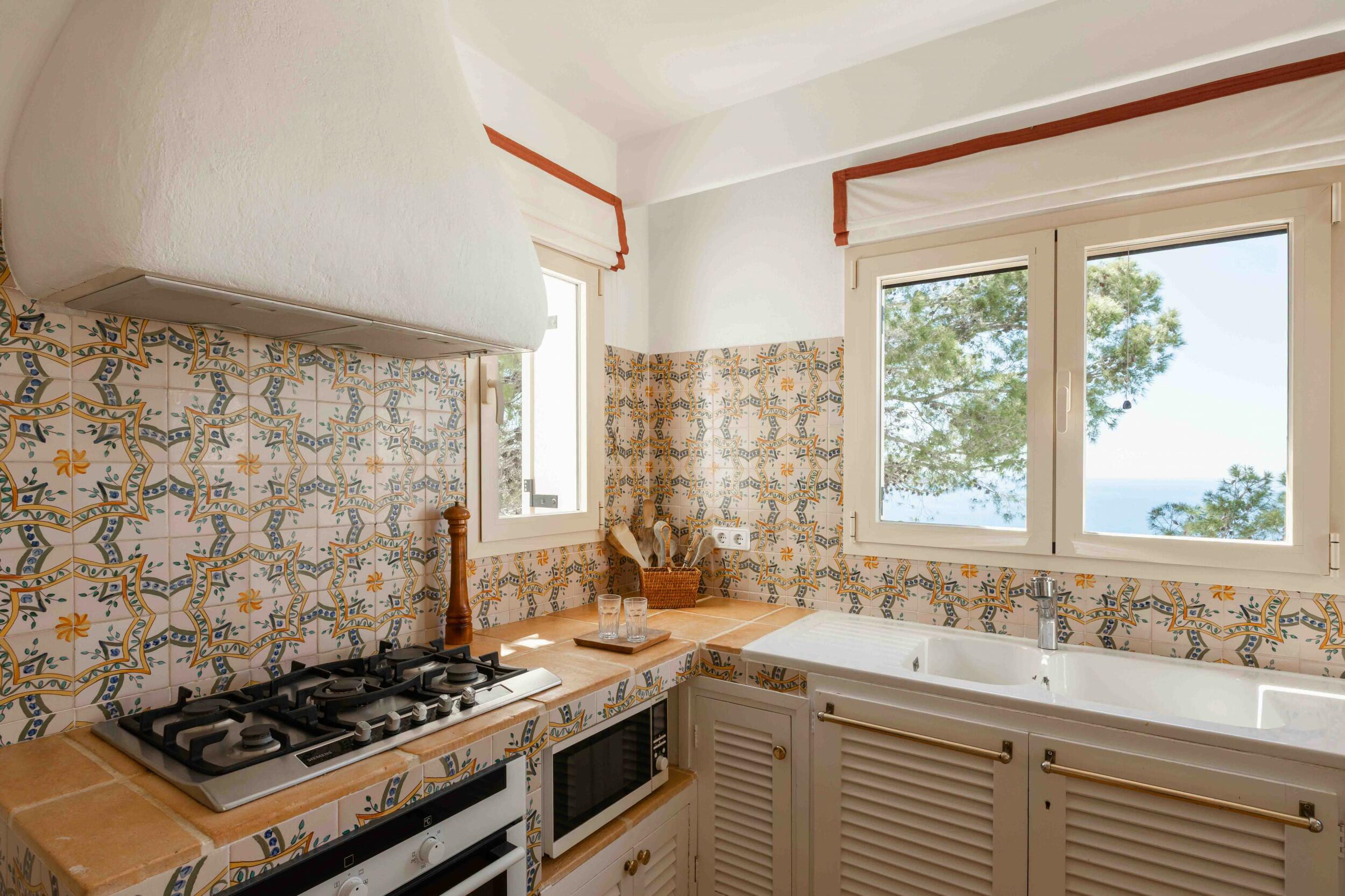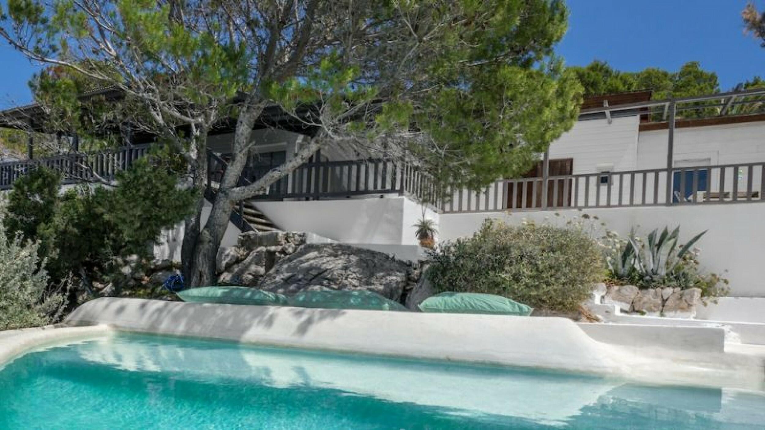 Cap Nono es una encantadora casa de vacaciones situada entre Cala Gracio y Cala Salada, una bahía cerrada a los vientos y las corrientes donde hay que adentrarse en el agua para cubrirla. Por estas características, es una playa ideal para familias con niños. La ubicación de la casa frente al mar ofrece increíbles vistas abiertas al hermoso jardín y a la zona de la piscina.