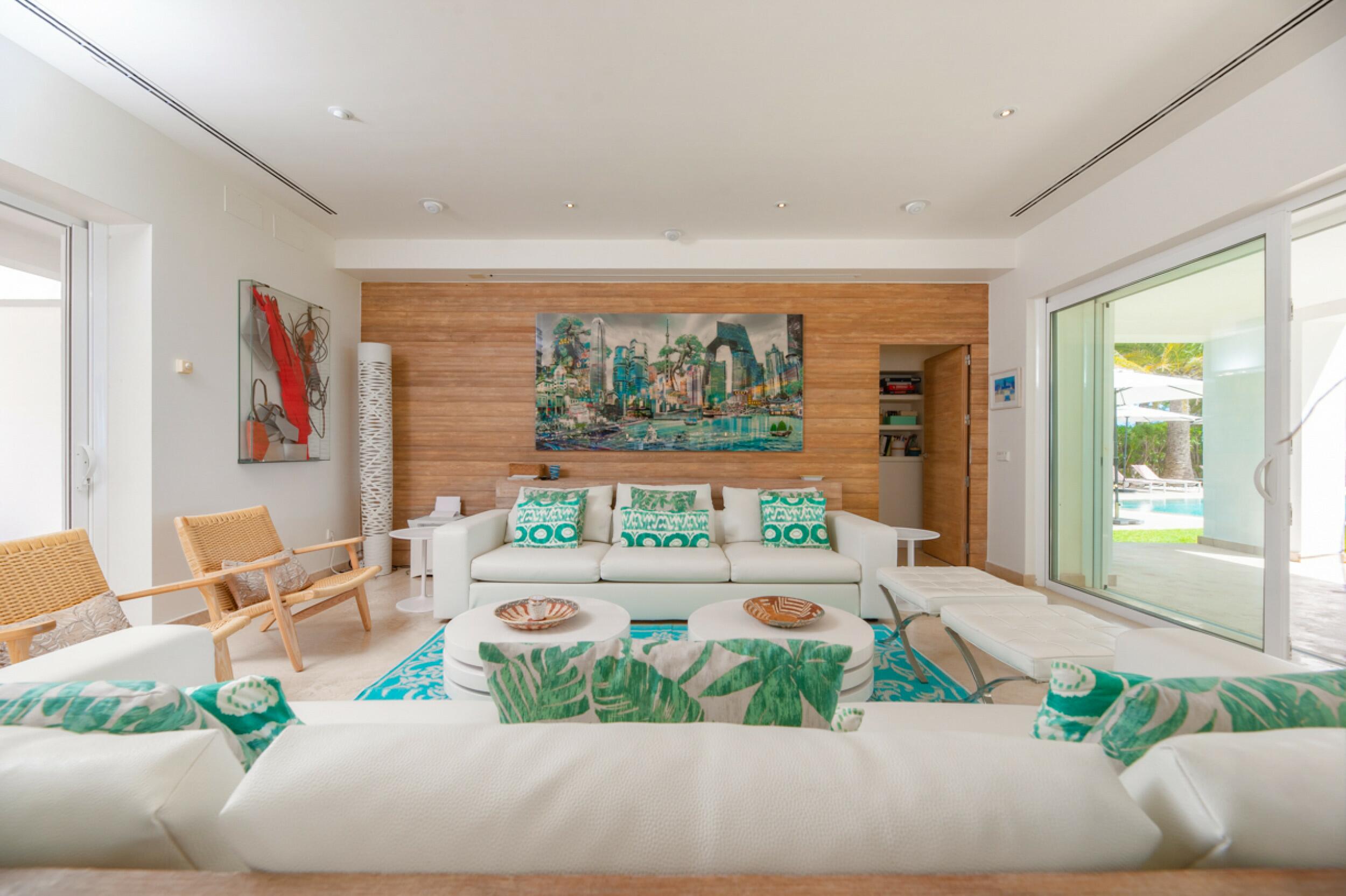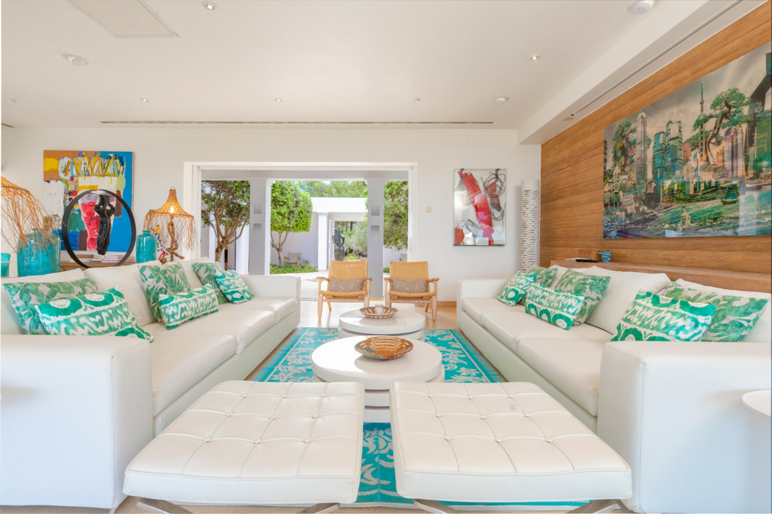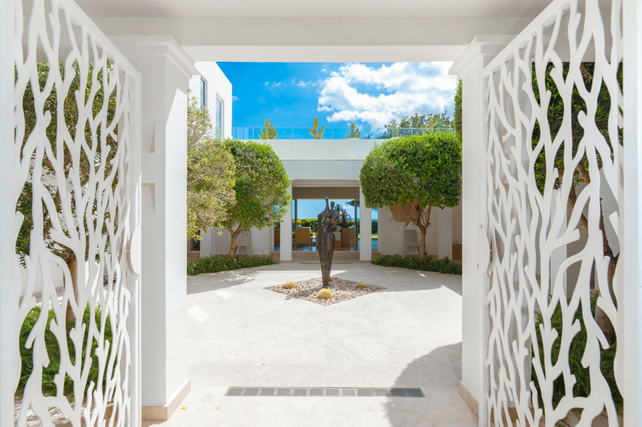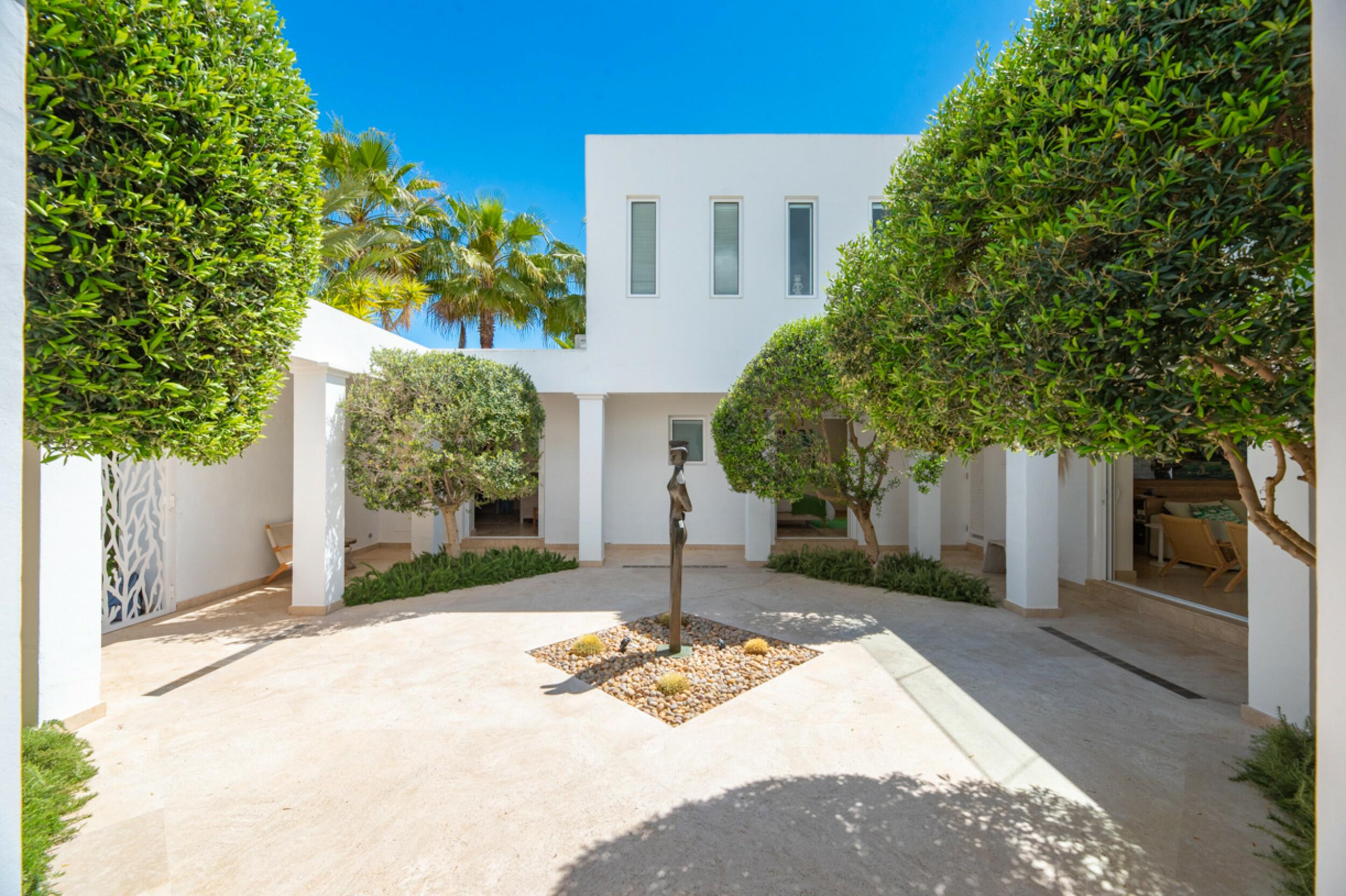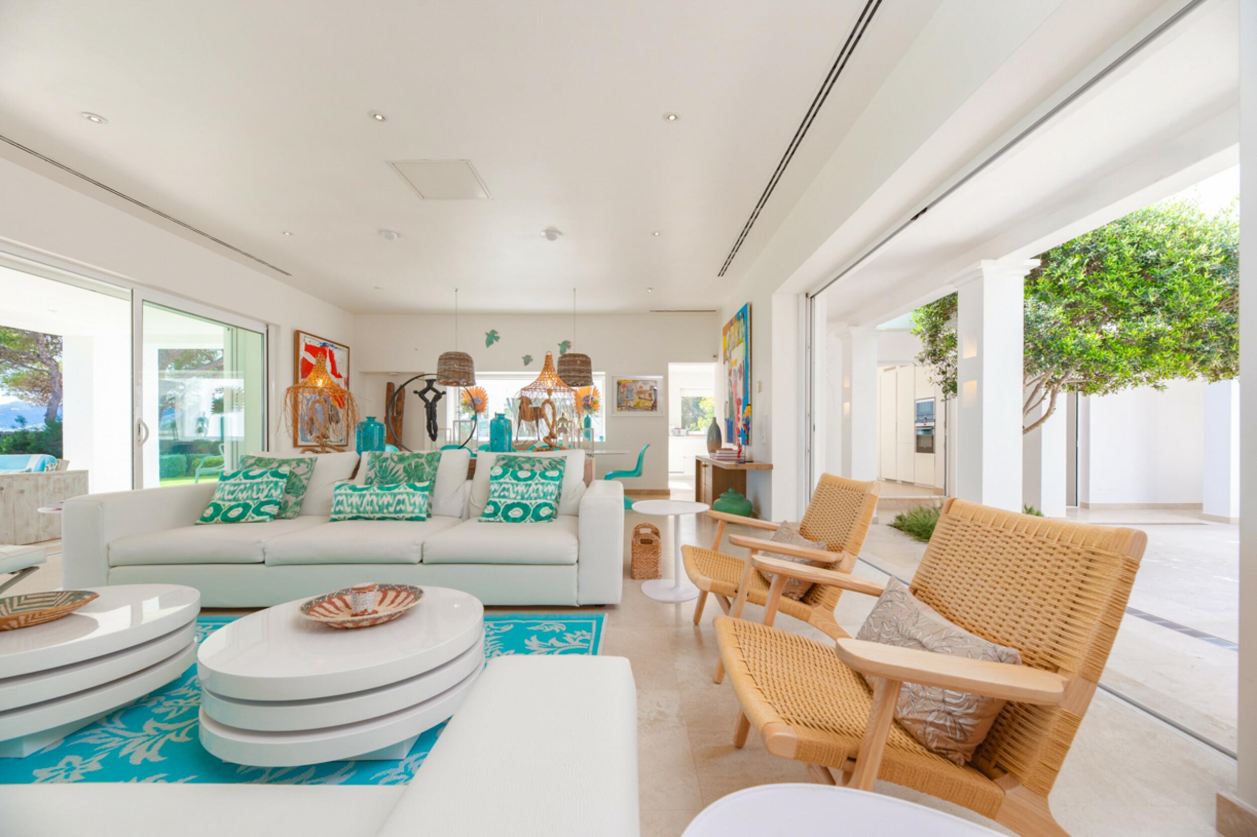 El diseño minimalista caracteriza esta fina propiedad de 500 m2 con 5 dormitorios, 5 baños, en una parcela de 2.000 m2 ventanas de suelo a techo y puertas correderas en todas las habitaciones, aire acondicionado, wifi y sistema de alarma. La propiedad se encuentra en Roca Llisa, una urbanización de lujo en una ubicación privilegiada con seguridad 24 horas, con acceso pavimentado e iluminado y a sólo un minuto del único campo de golf de la isla.