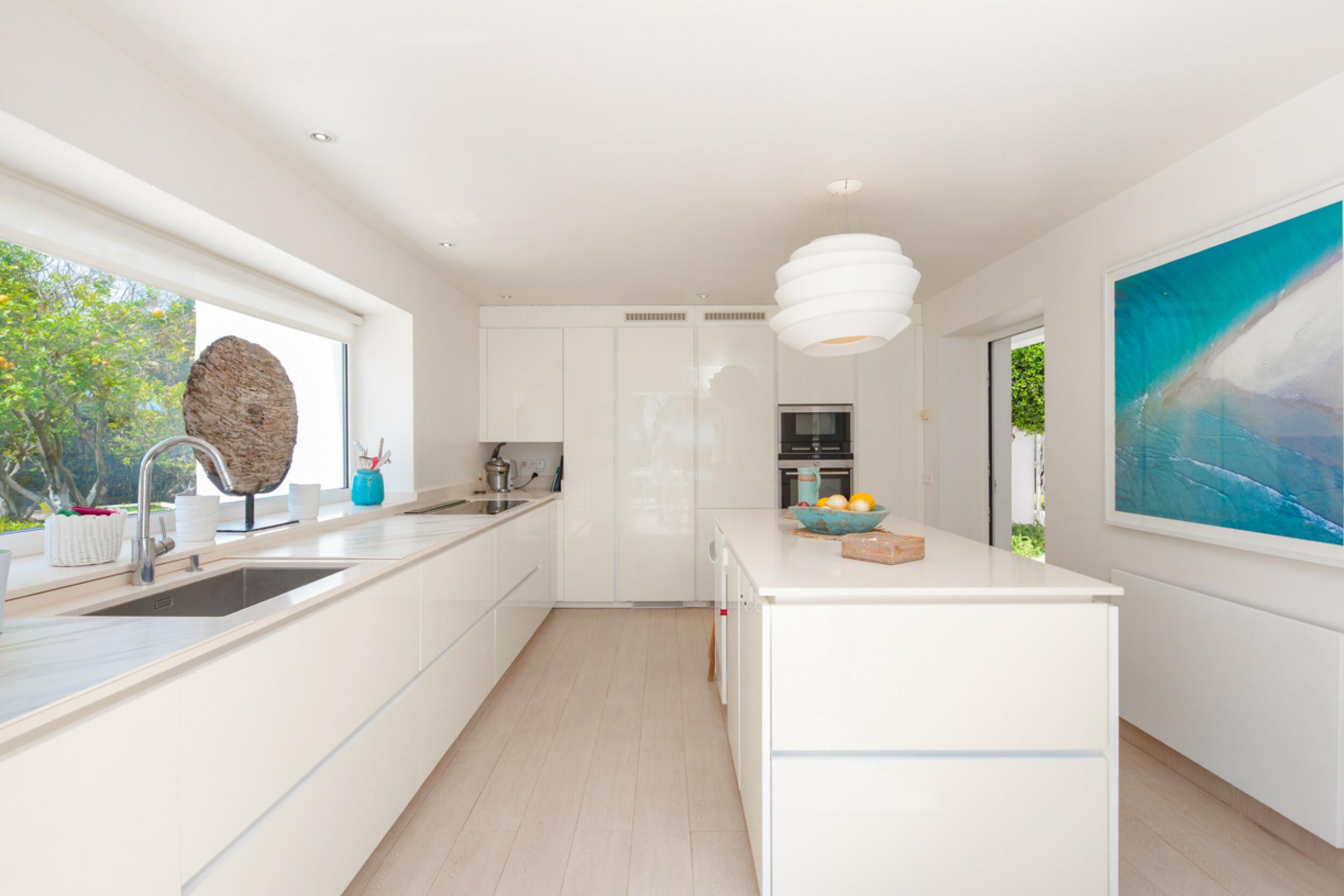 En el interior hay amplias zonas de estar con un concepto abierto - salón, comedor, cocina, totalmente equipada con una gran isla y dos hornos.