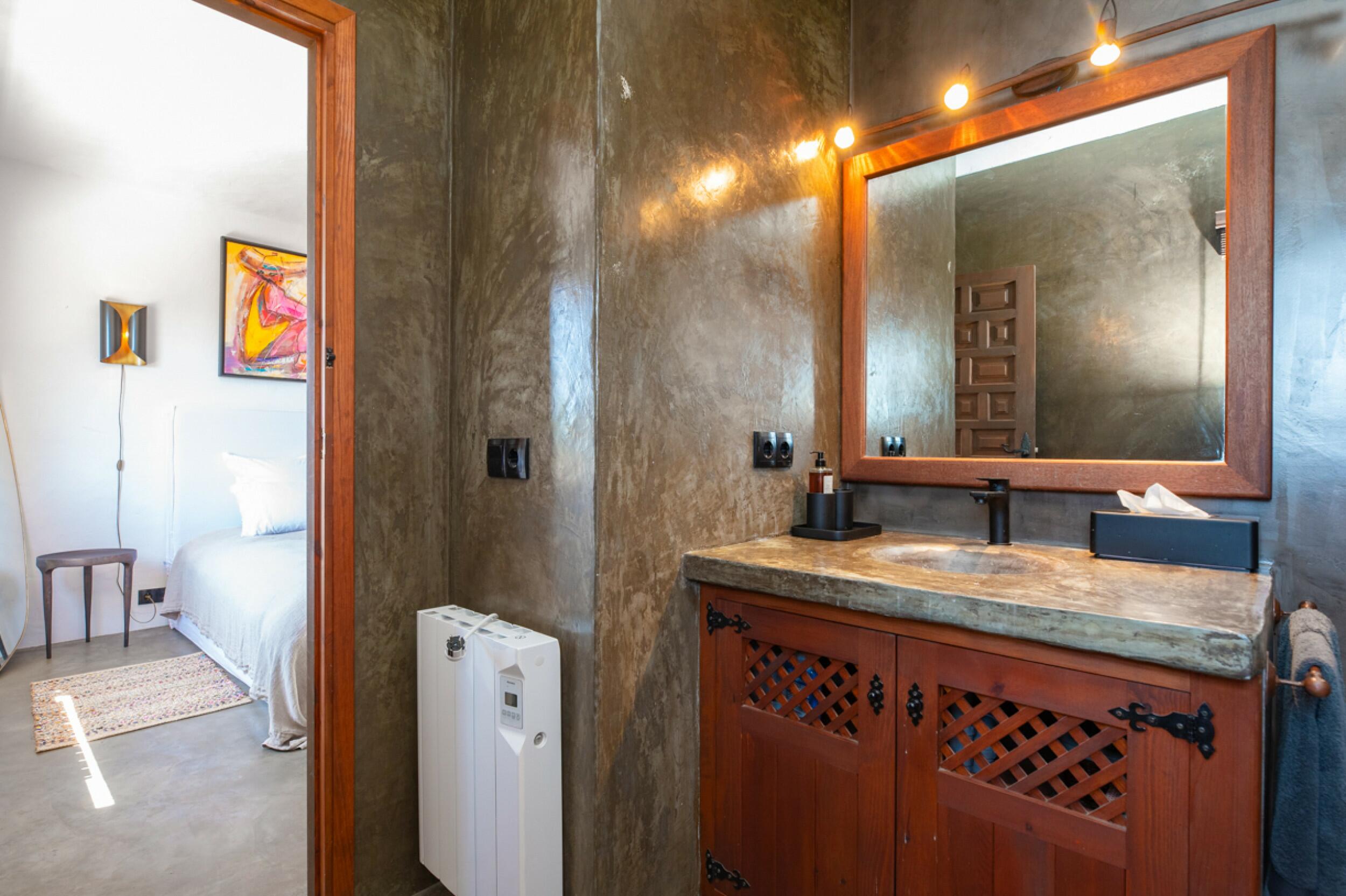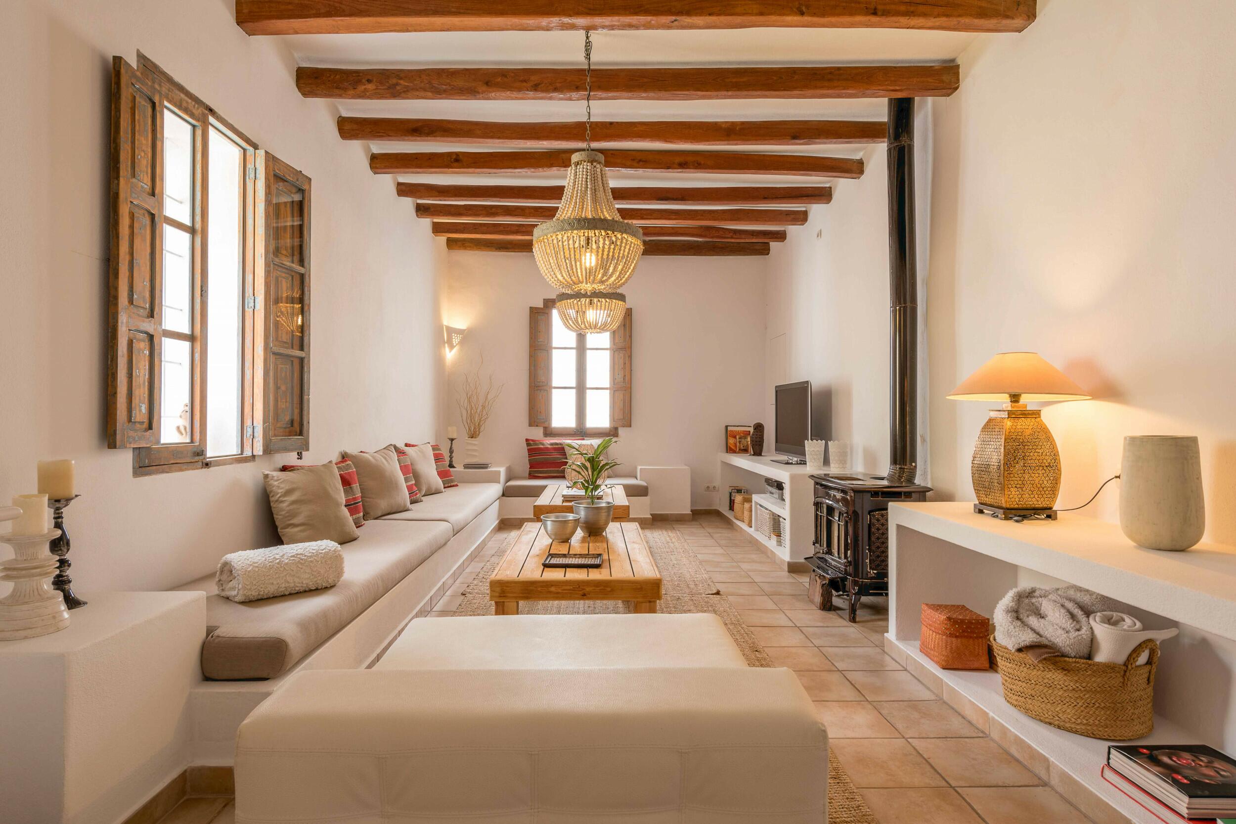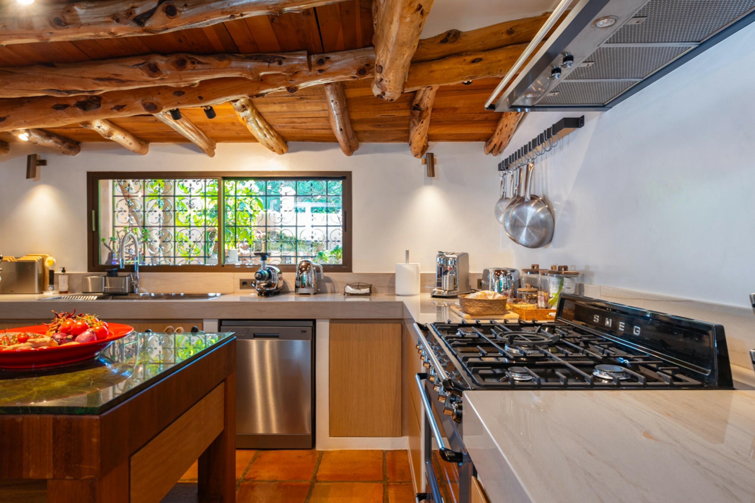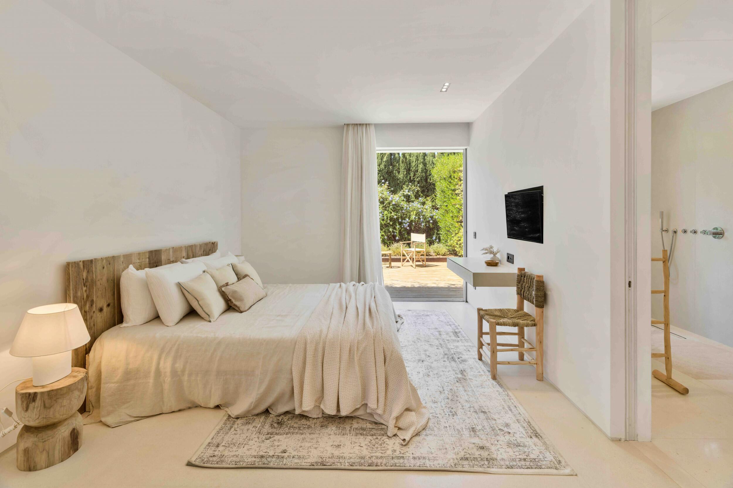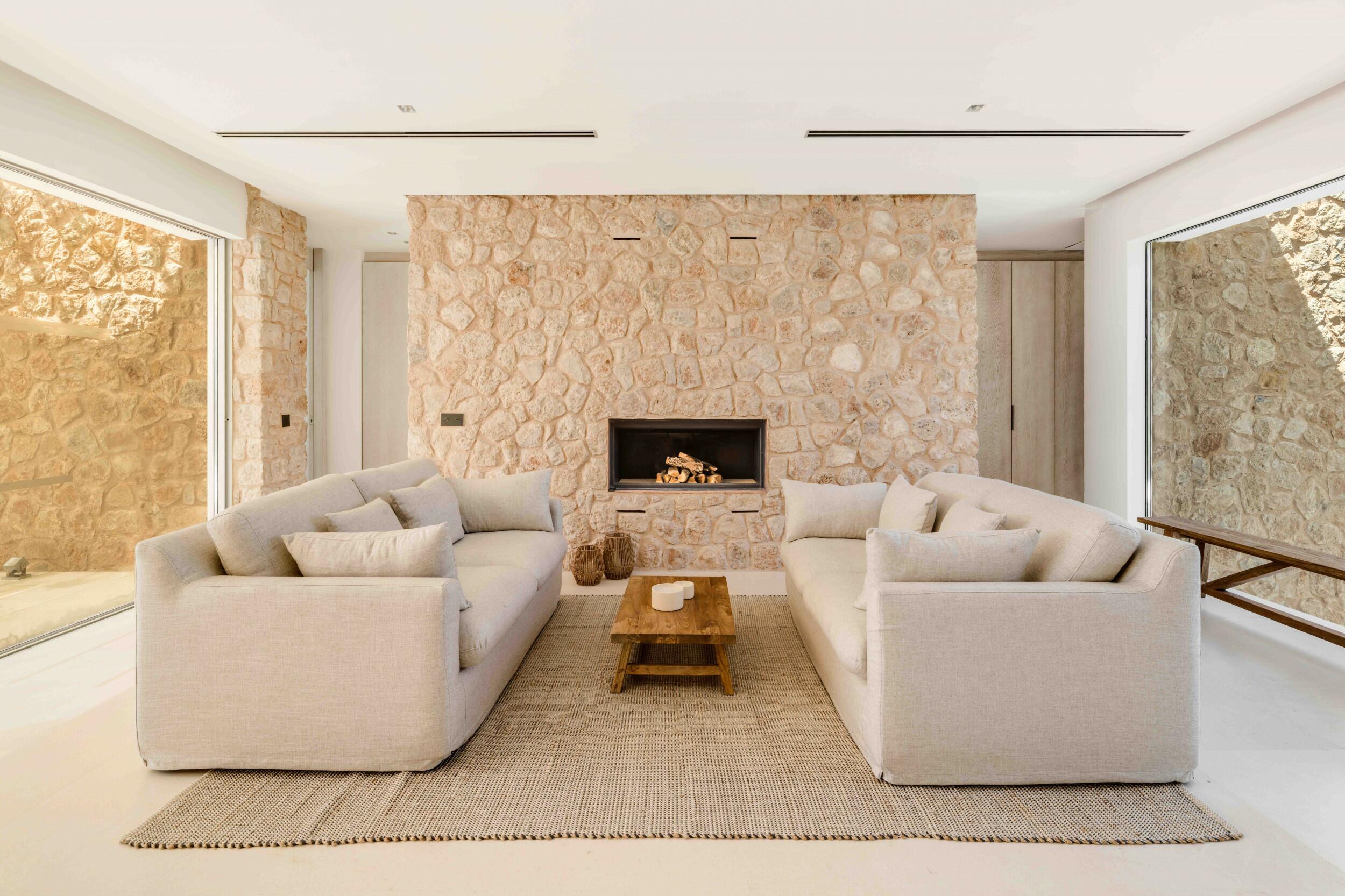 Casa Fontana combina el carácter ibicenco atemporal con el confort contemporáneo: muros de piedra natural y suelos de terracota se combinan con amplios ventanales para inundar los espacios de vida con luz mediterránea. Una cocina de planta abierta, totalmente equipada, fluye hacia el comedor y hacia las terrazas orientadas al sur y al oeste, creando un ritmo fácil y acogedor de la mañana a la noche. Las habitaciones y la sala de estar principal cuentan con aire acondicionado, con detalles pensados como cortinas opacas, Smart TV, Wi-Fi y un cuarto de lavandería con frigorífico adicional.