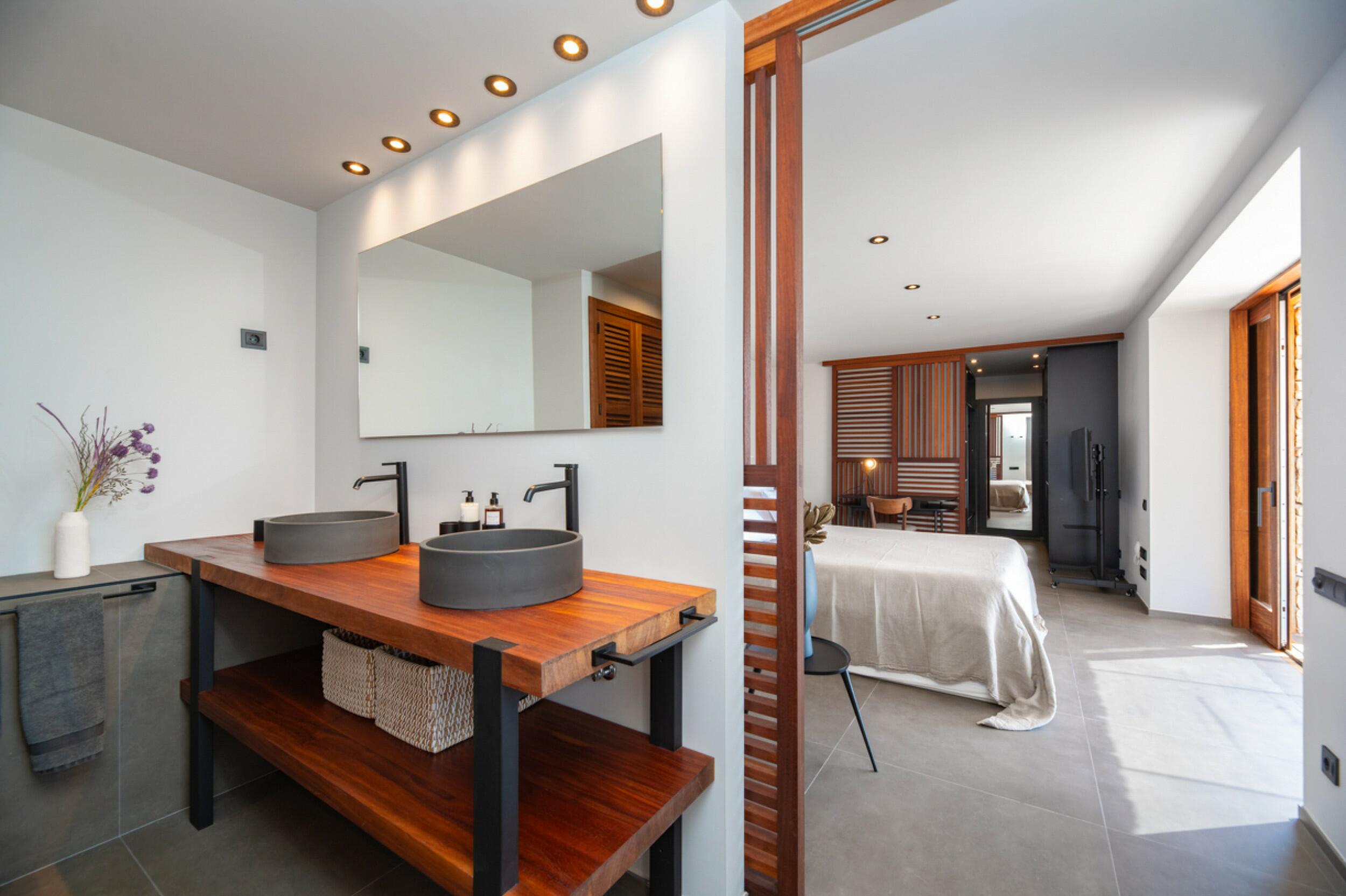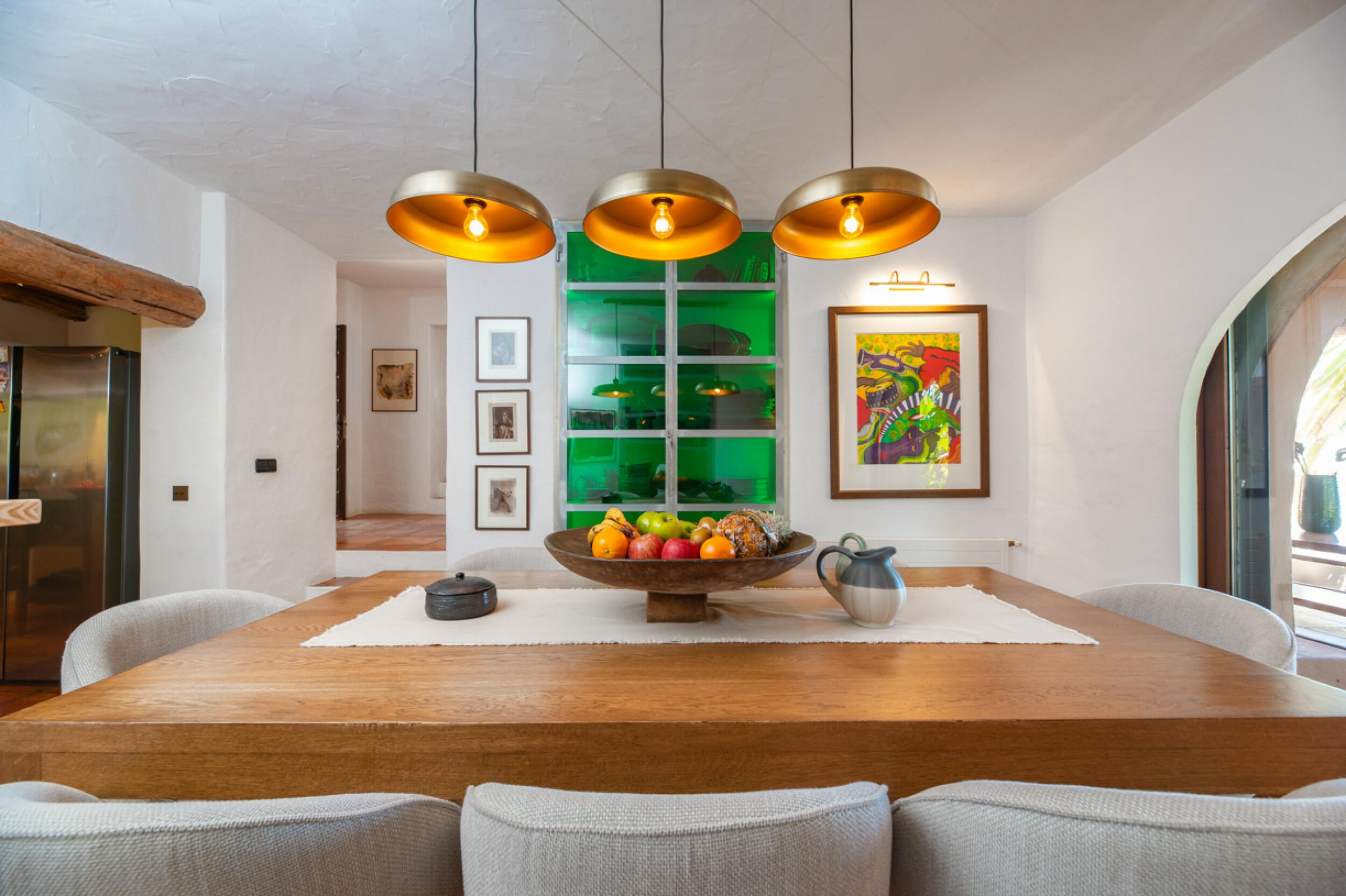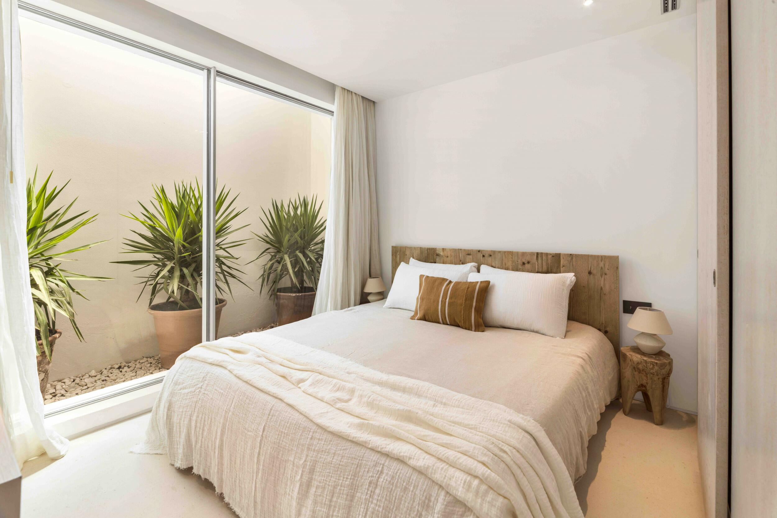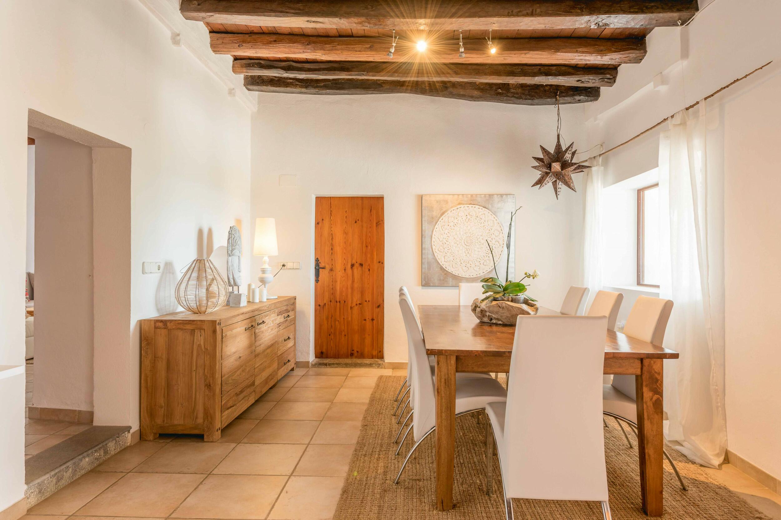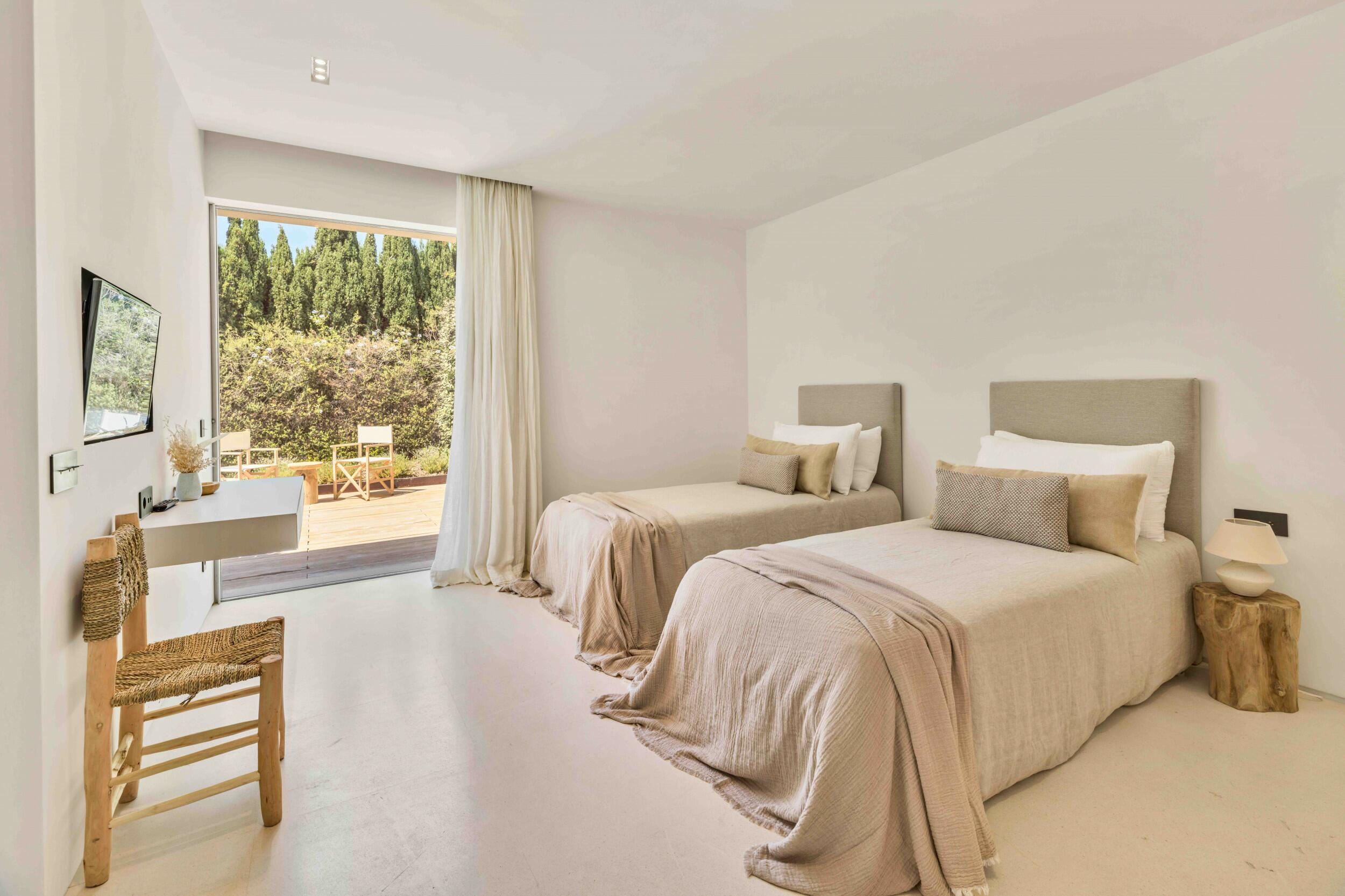 Casa Fontana combina el carácter ibicenco atemporal con el confort contemporáneo: muros de piedra natural y suelos de terracota se combinan con amplios ventanales para inundar los espacios de vida con luz mediterránea. Una cocina de planta abierta, totalmente equipada, fluye hacia el comedor y hacia las terrazas orientadas al sur y al oeste, creando un ritmo fácil y acogedor de la mañana a la noche. Las habitaciones y la sala de estar principal cuentan con aire acondicionado, con detalles pensados como cortinas opacas, Smart TV, Wi-Fi y un cuarto de lavandería con frigorífico adicional.