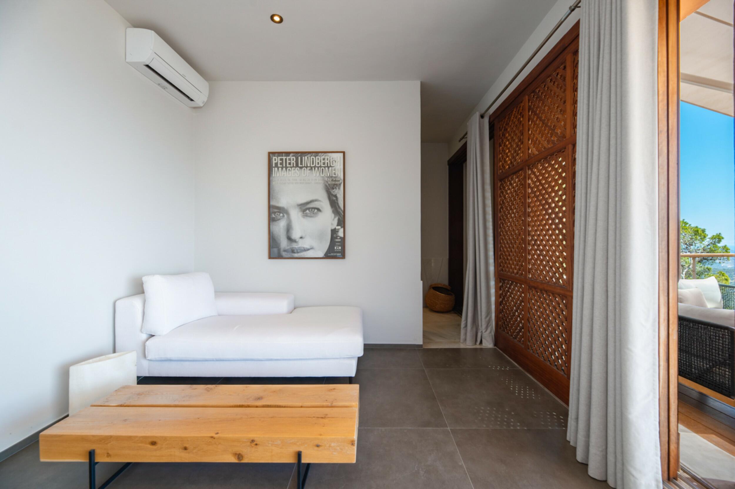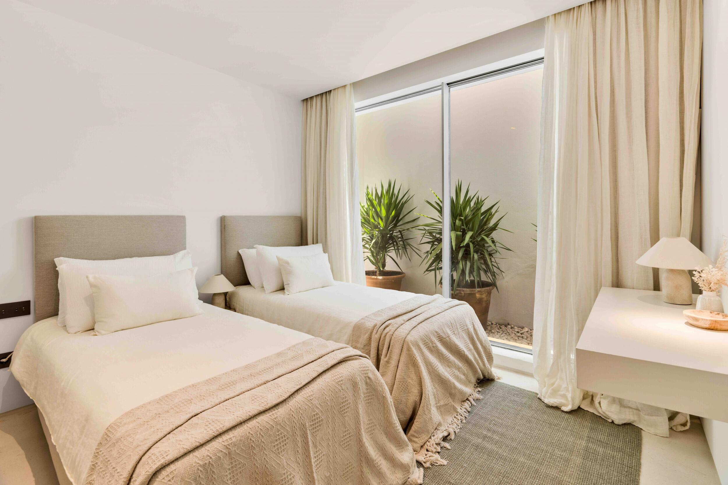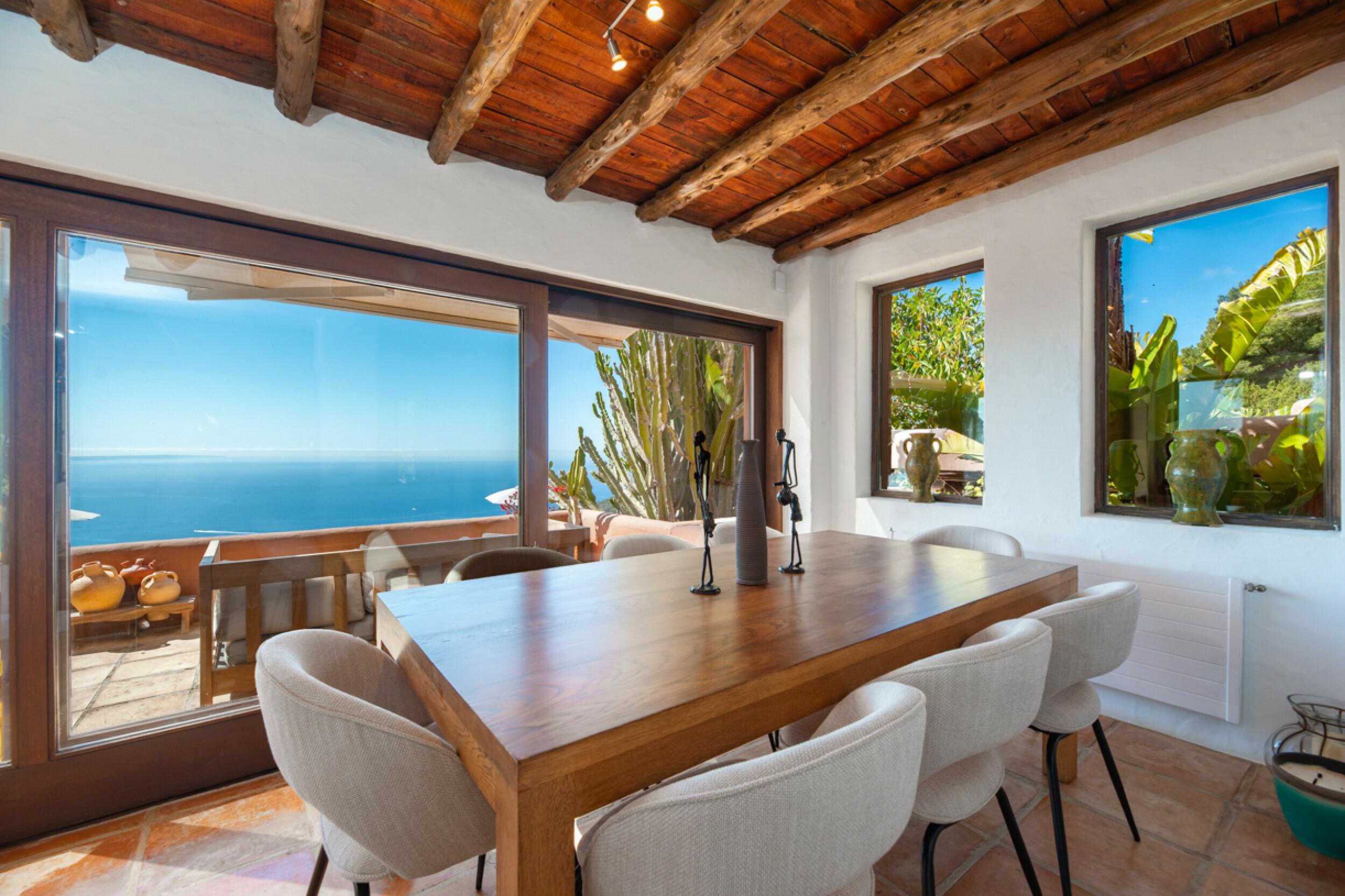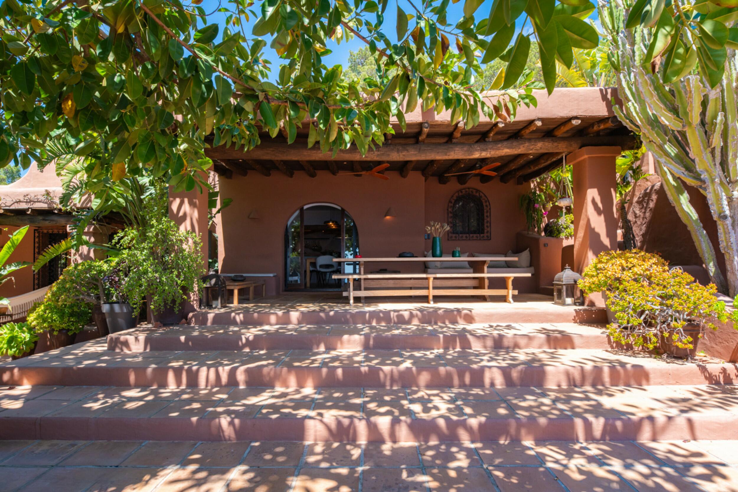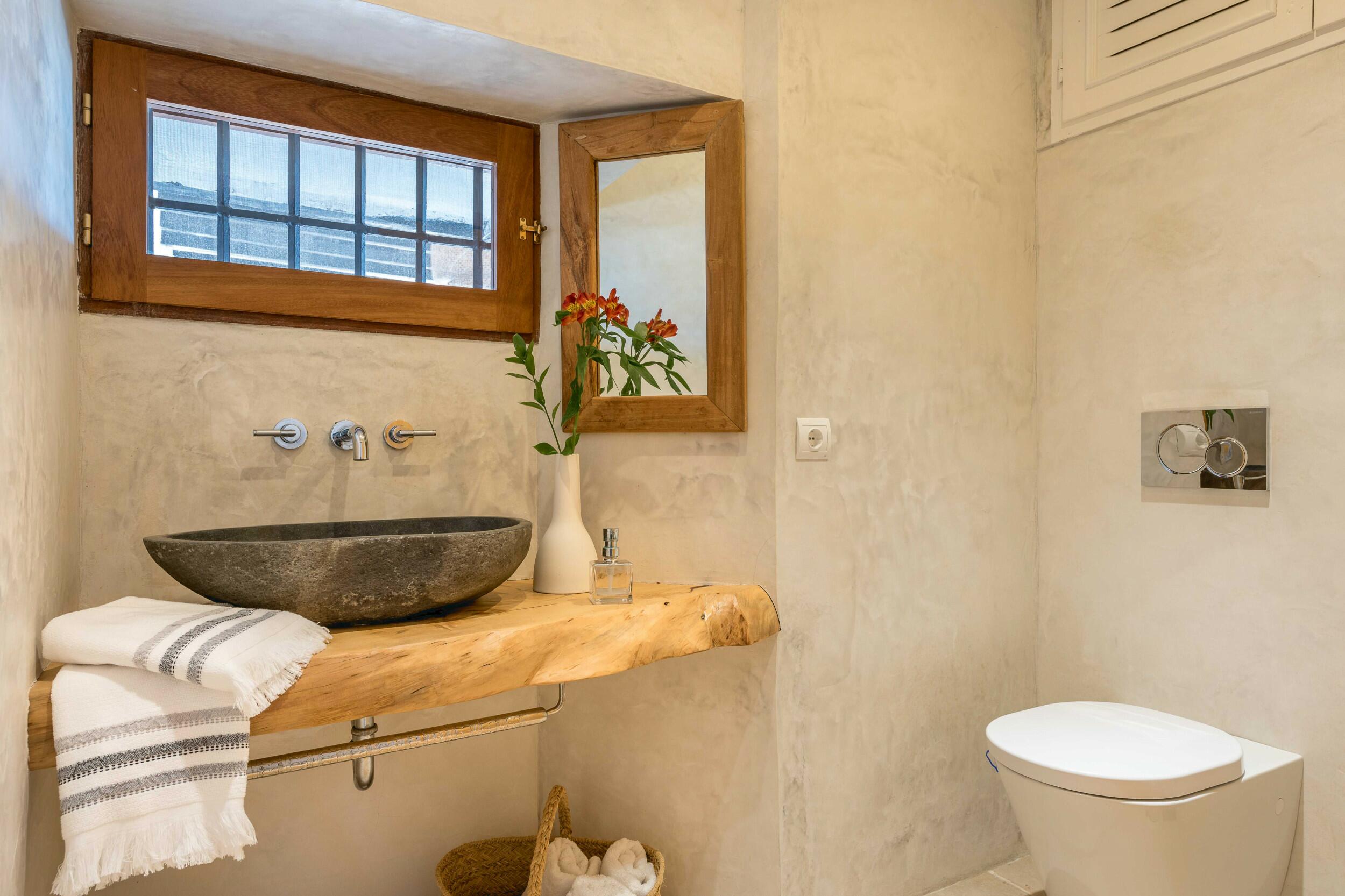 Casa Fontana combina el carácter ibicenco atemporal con el confort contemporáneo: muros de piedra natural y suelos de terracota se combinan con amplios ventanales para inundar los espacios de vida con luz mediterránea. Una cocina de planta abierta, totalmente equipada, fluye hacia el comedor y hacia las terrazas orientadas al sur y al oeste, creando un ritmo fácil y acogedor de la mañana a la noche. Las habitaciones y la sala de estar principal cuentan con aire acondicionado, con detalles pensados como cortinas opacas, Smart TV, Wi-Fi y un cuarto de lavandería con frigorífico adicional.
