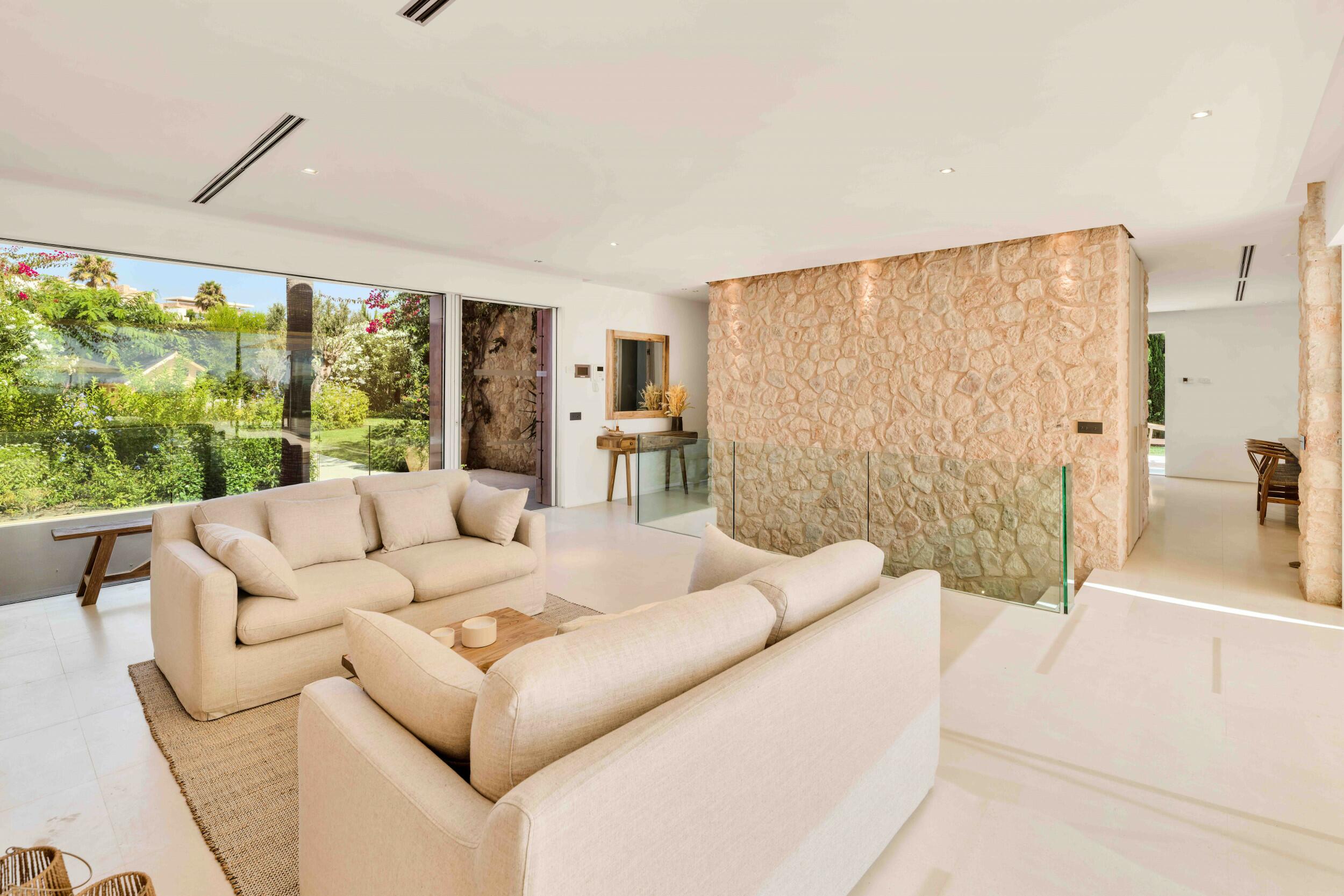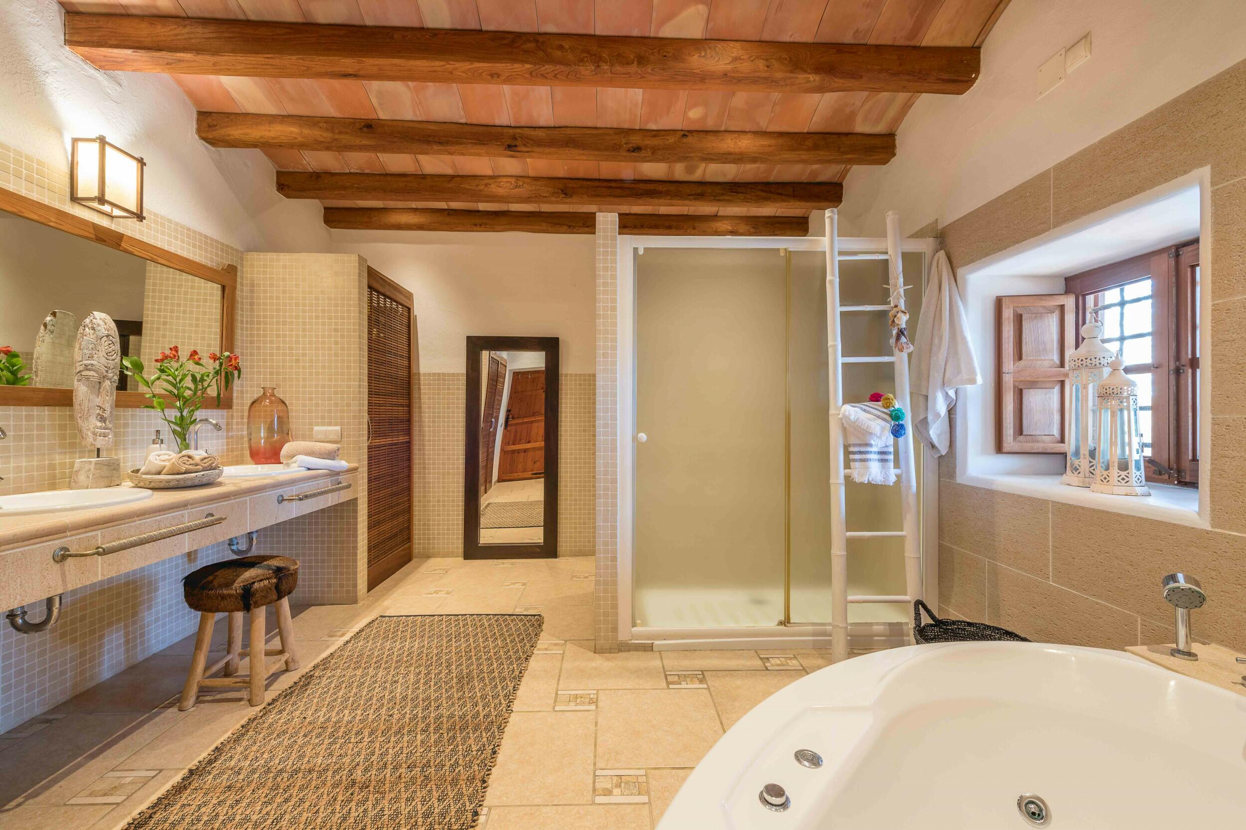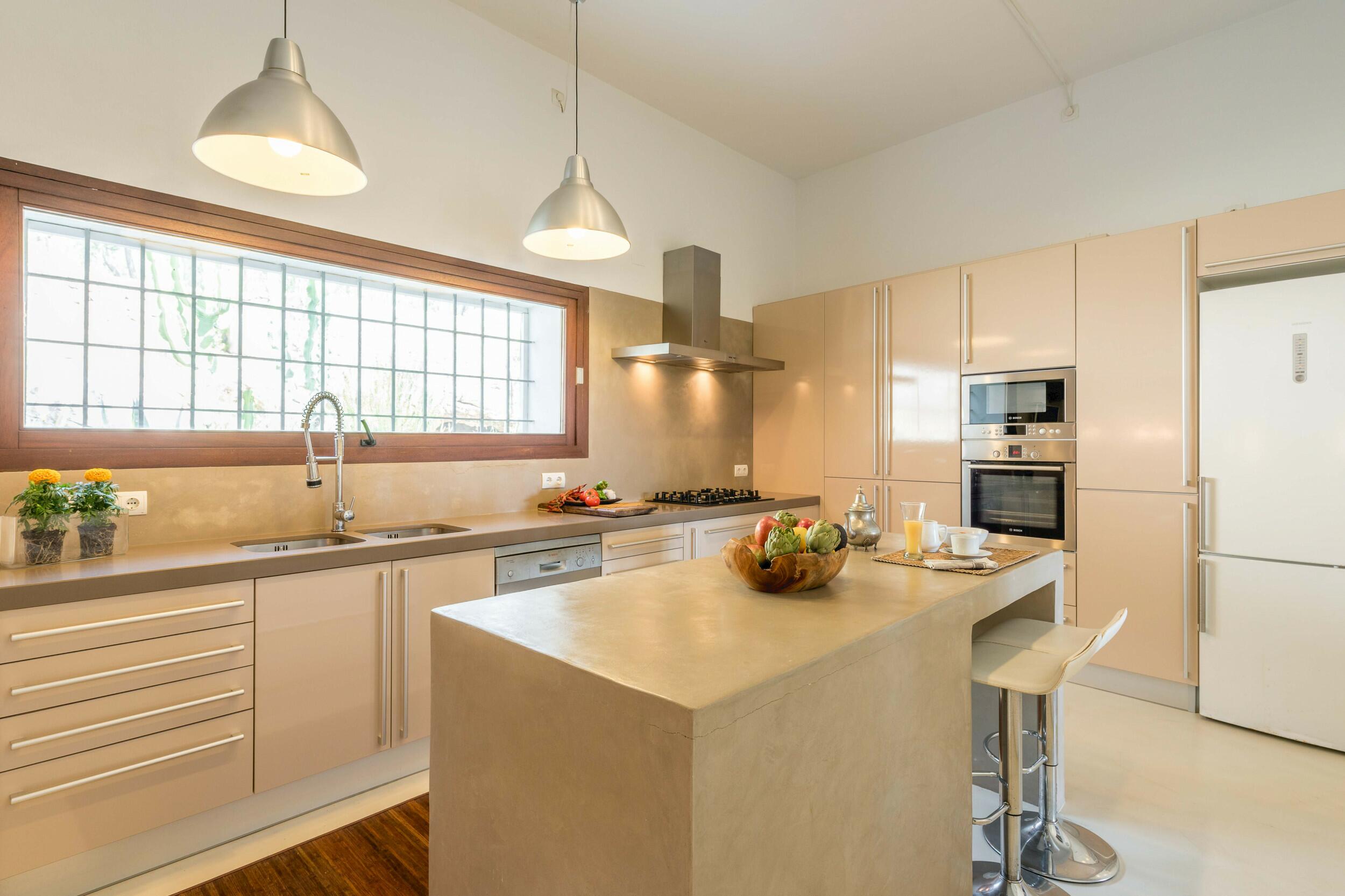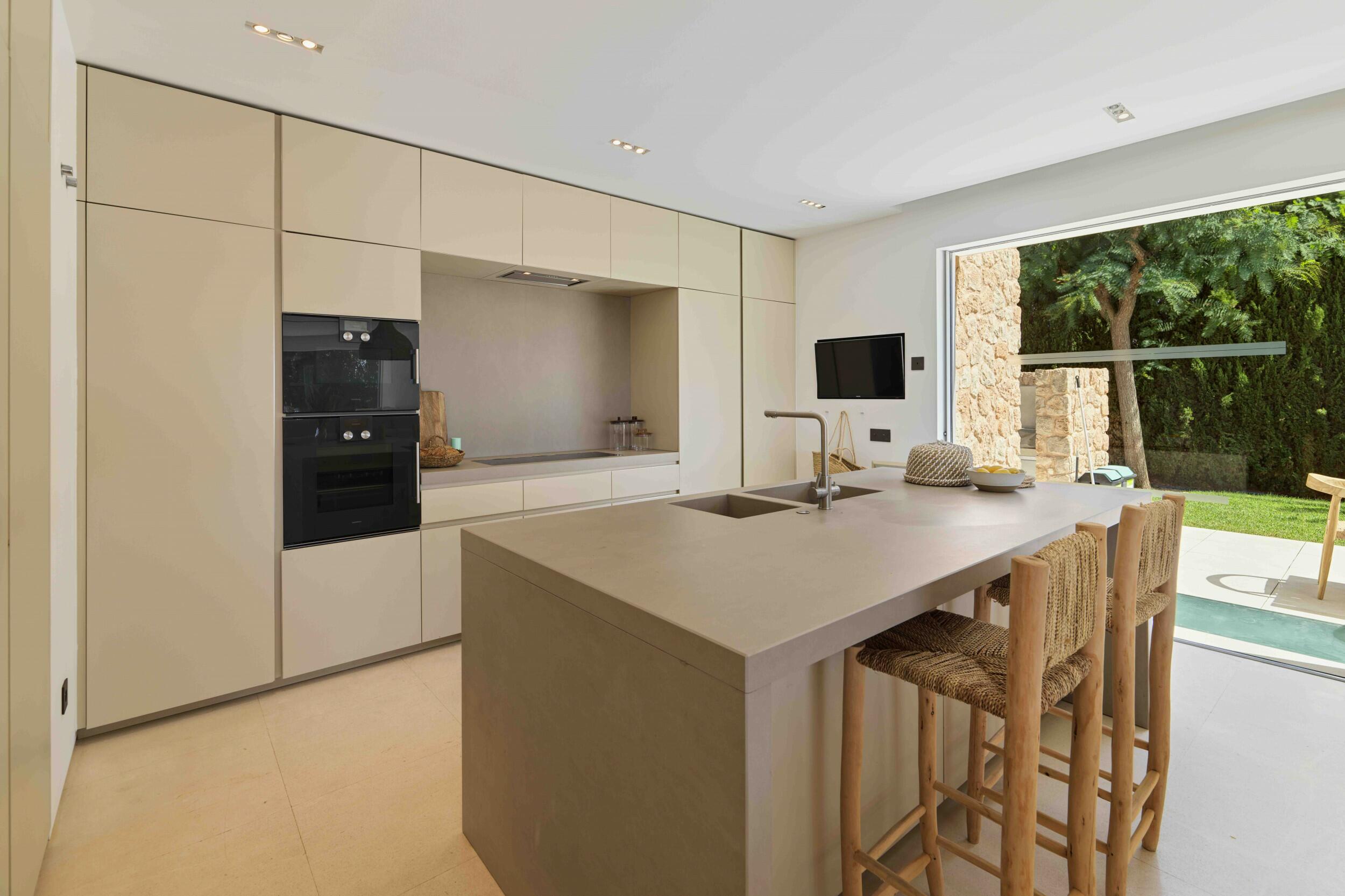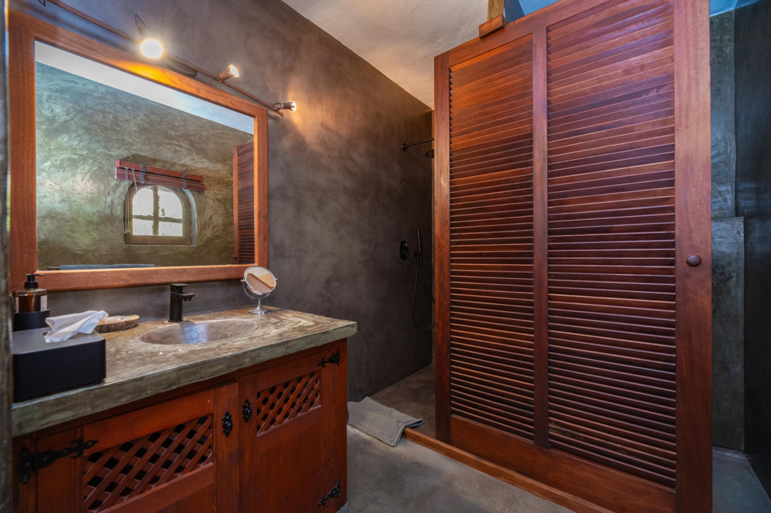 Casa Fontana combina el carácter ibicenco atemporal con el confort contemporáneo: muros de piedra natural y suelos de terracota se combinan con amplios ventanales para inundar los espacios de vida con luz mediterránea. Una cocina de planta abierta, totalmente equipada, fluye hacia el comedor y hacia las terrazas orientadas al sur y al oeste, creando un ritmo fácil y acogedor de la mañana a la noche. Las habitaciones y la sala de estar principal cuentan con aire acondicionado, con detalles pensados como cortinas opacas, Smart TV, Wi-Fi y un cuarto de lavandería con frigorífico adicional.