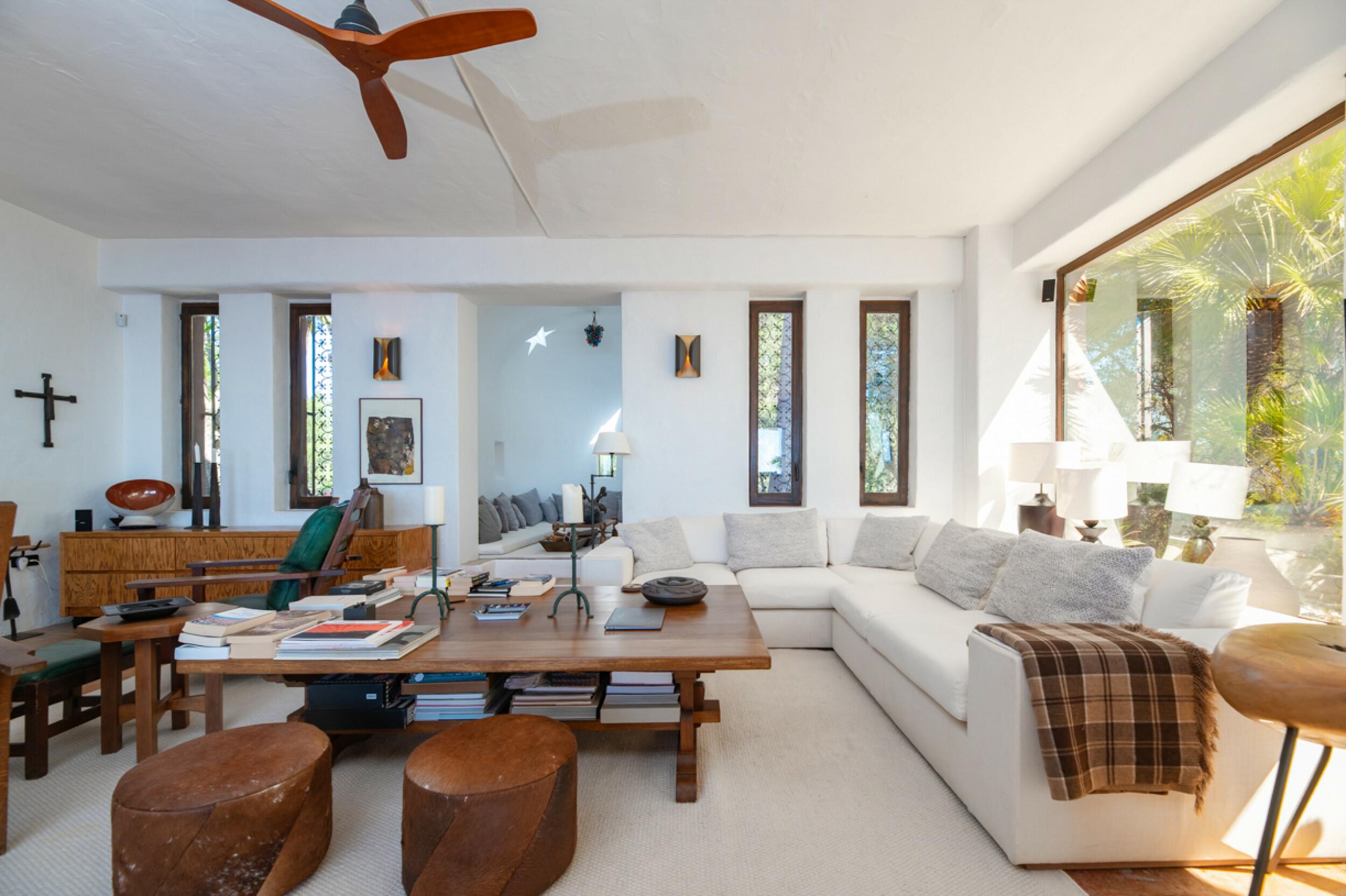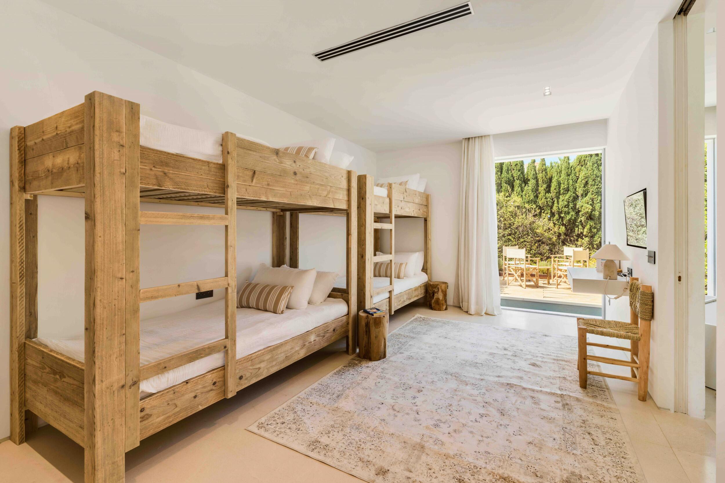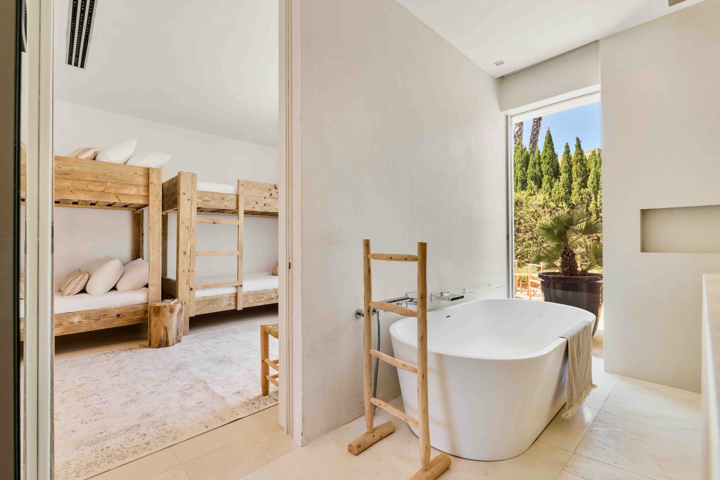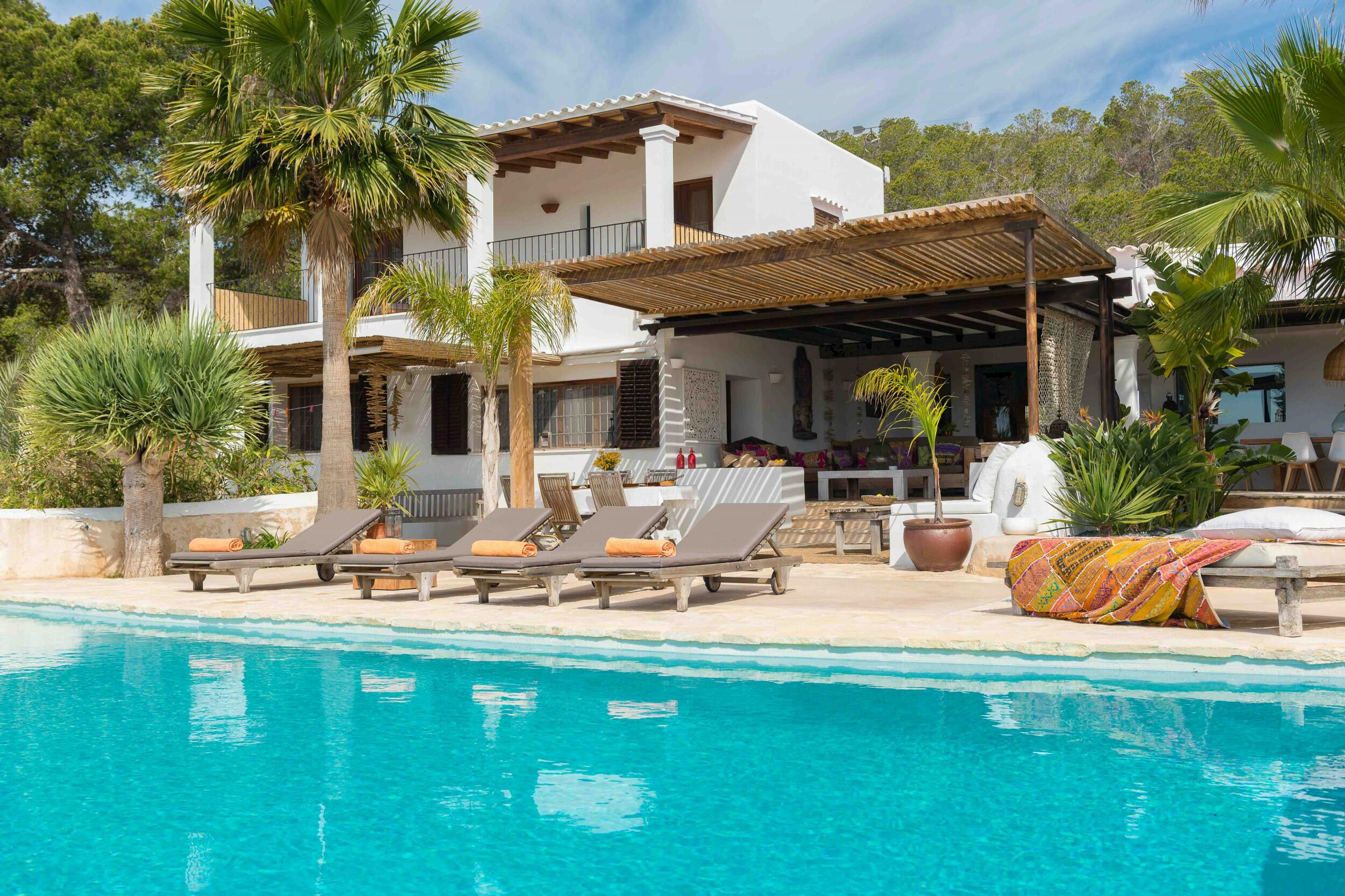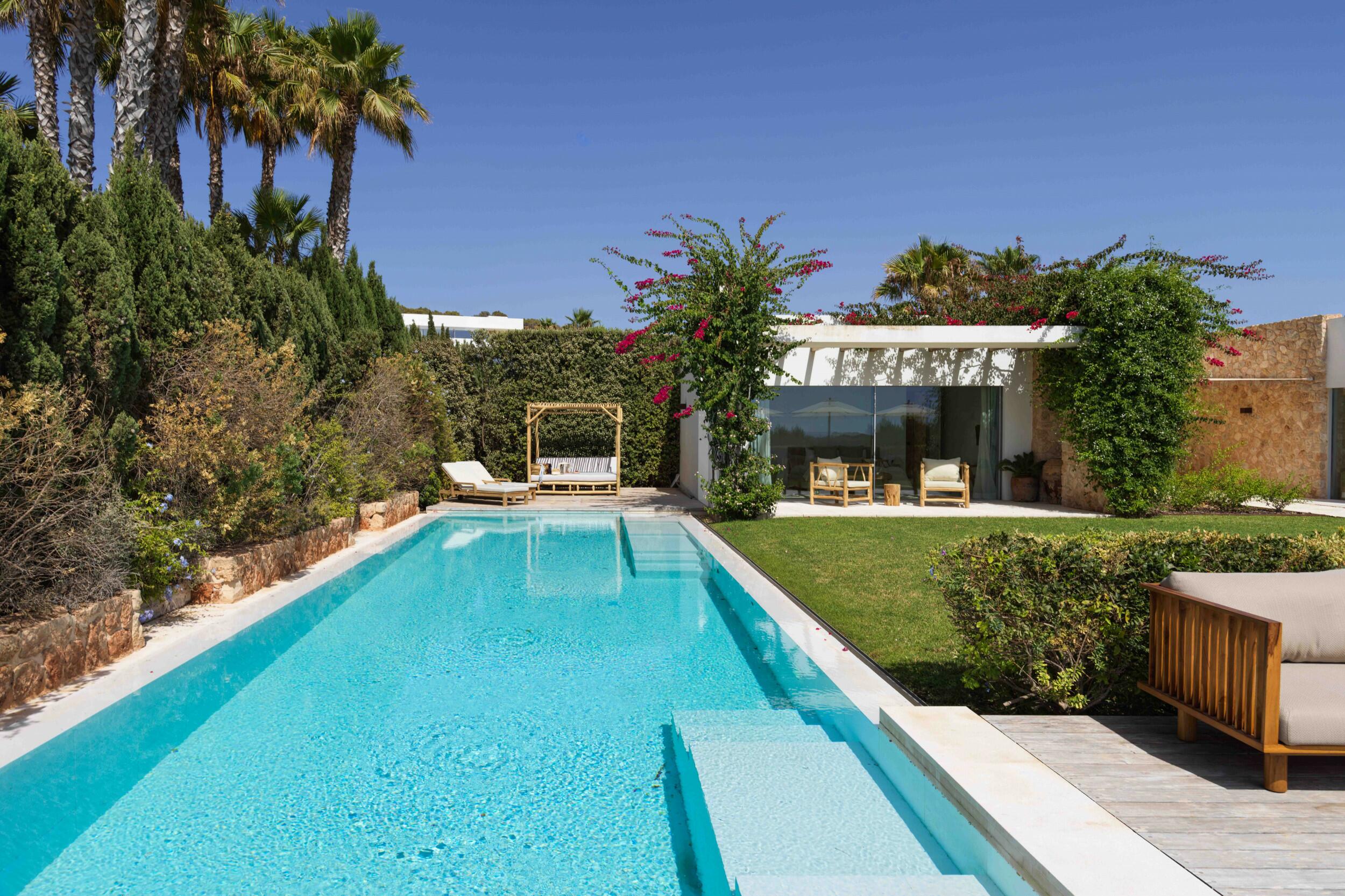 Una refinada villa de 6 dormitorios en San José, Casa Fontana lo sitúa a minutos de las elegantes playas del sur de Ibiza y del vibrante centro de Ibiza, al tiempo que ofrece vistas tranquilas y panorámicas sobre Ses Salines, Cap d’es Falcó y hacia Formentera. Pase los días disfrutando de las playas como Cala Jondal’s Blue Marlin o disfrutando de largos almuerzos en Ses Salines, luego regrese para cócteles al atardecer en su terraza y cenas bajo las estrellas junto a la piscina; perfecto para familias o grupos que buscan una elegancia apartada cerca de la acción.