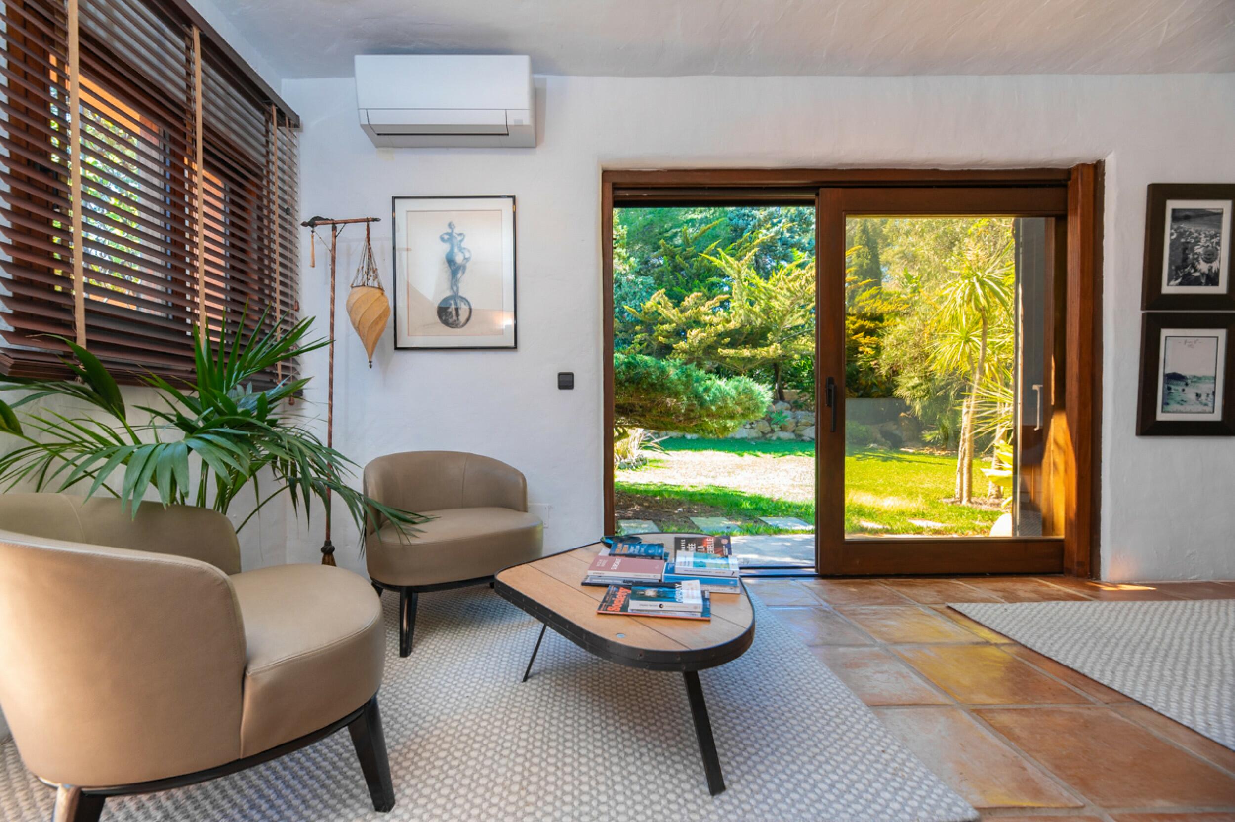 <15 minutos a la playa<15 minutos al aeropuerto<15 minutos de Ibiza ciudadAire acondicionadoAlarmaCaja FuerteCalefacciónChimeneaInternetJardínLavadoraParcela valladaParkingPiscinaSecador de peloSecadoraTelevisión por SatéliteTerrazaVistas a SalinasVistas al jardínVistas al marZona de CéspedZona tranquila