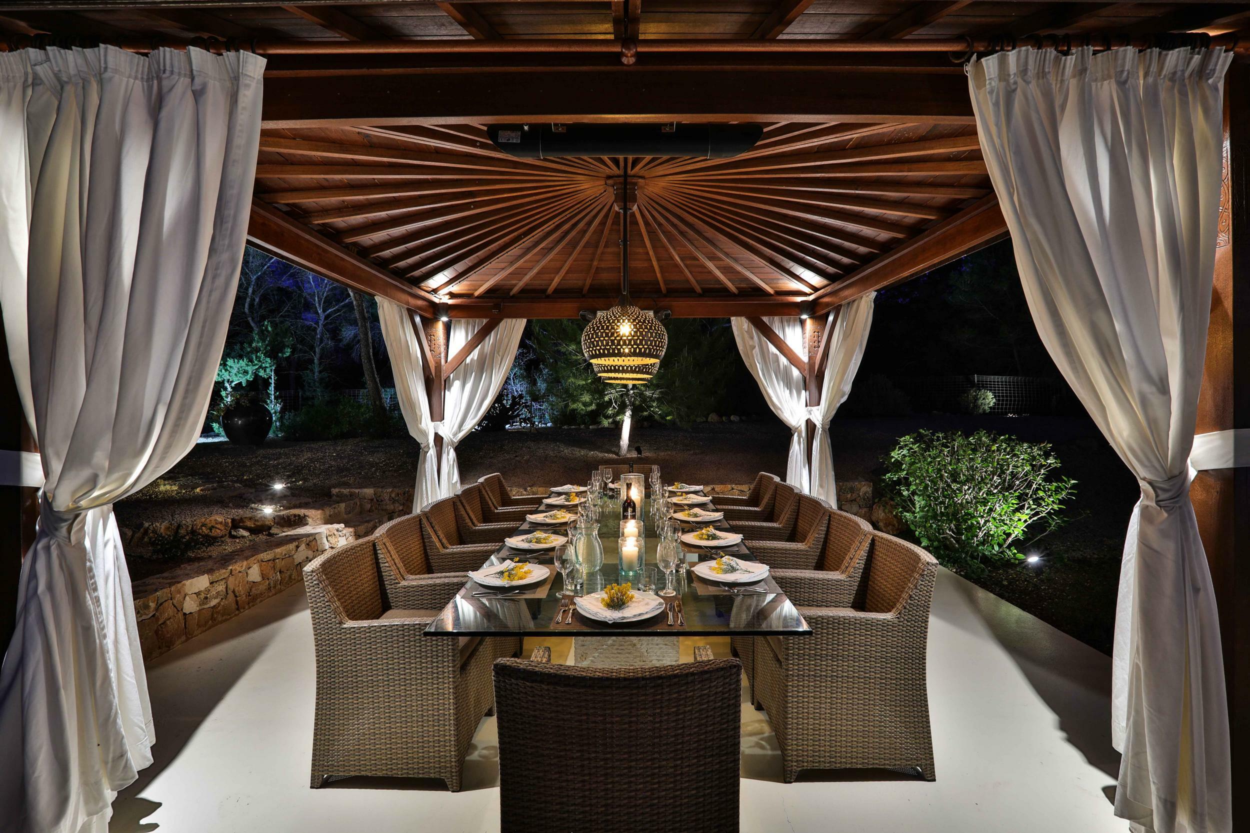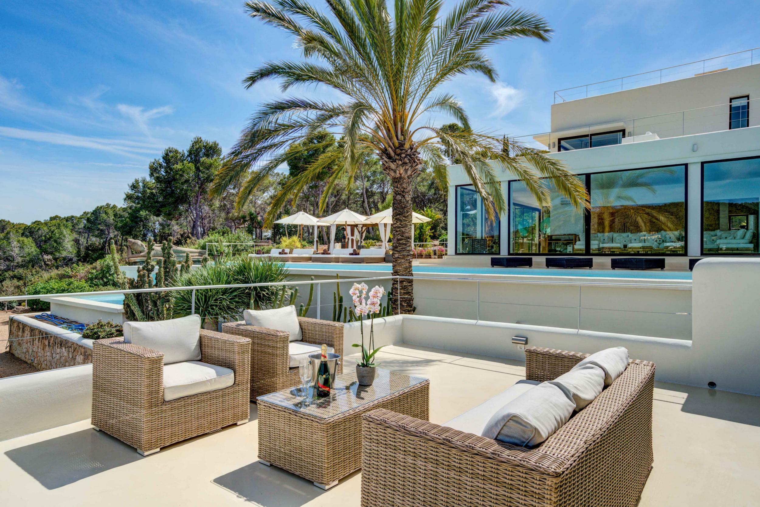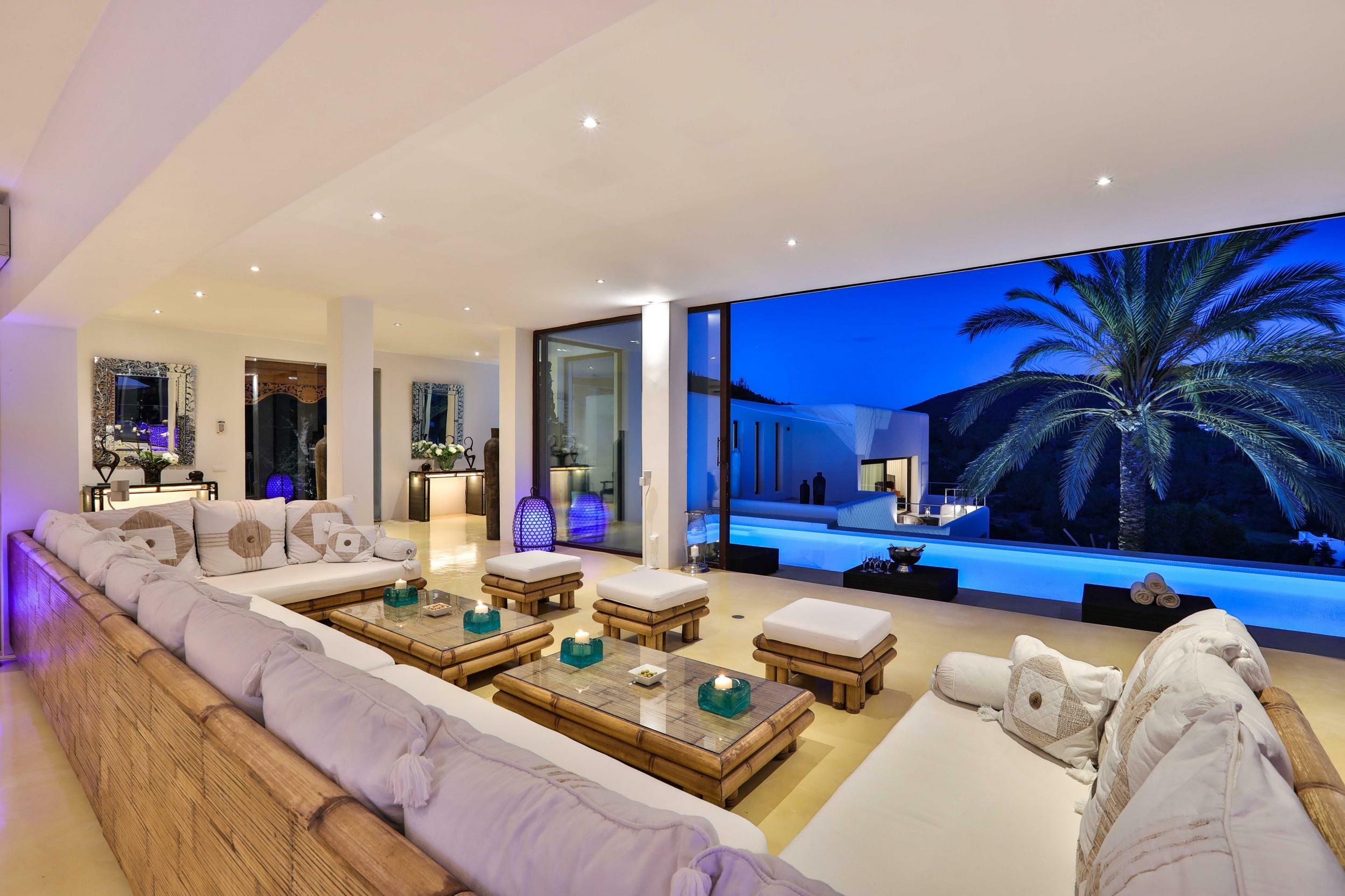 Situada en la urbanización privada más exclusiva de Ibiza, en la costa del Parque Natural de Es Cubells, considerado desde hace tiempo como uno de los mejores y más impresionantes emplazamientos para villas en el Mediterráneo, esta villa con vistas al mar es una de las impresionantes propiedades que salpican este escarpado y dramático entorno. Una villa de lujo verdaderamente única con amplias terrazas, comedor al aire libre y zonas de entretenimiento, jardines y una majestuosa piscina en forma de oasis.