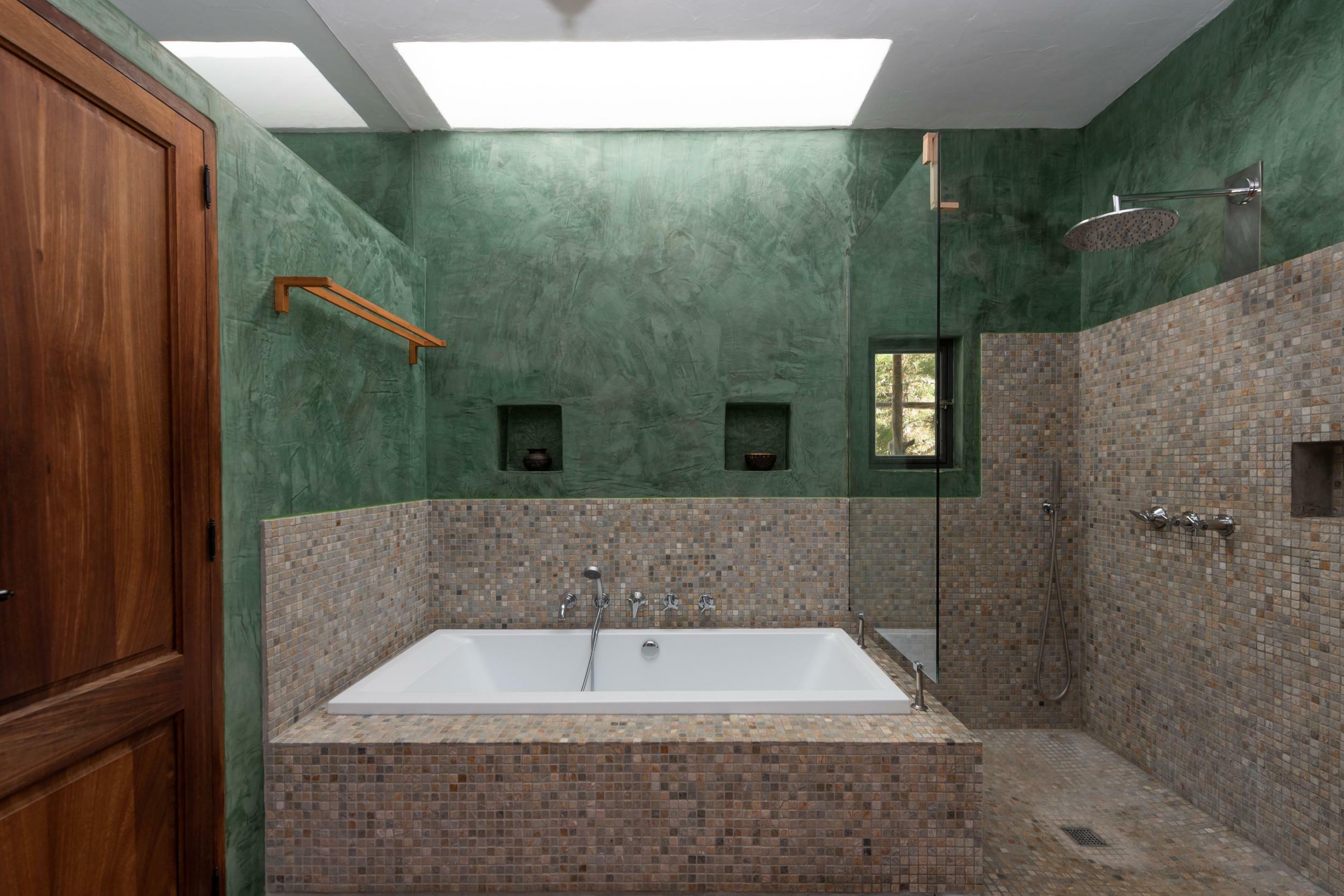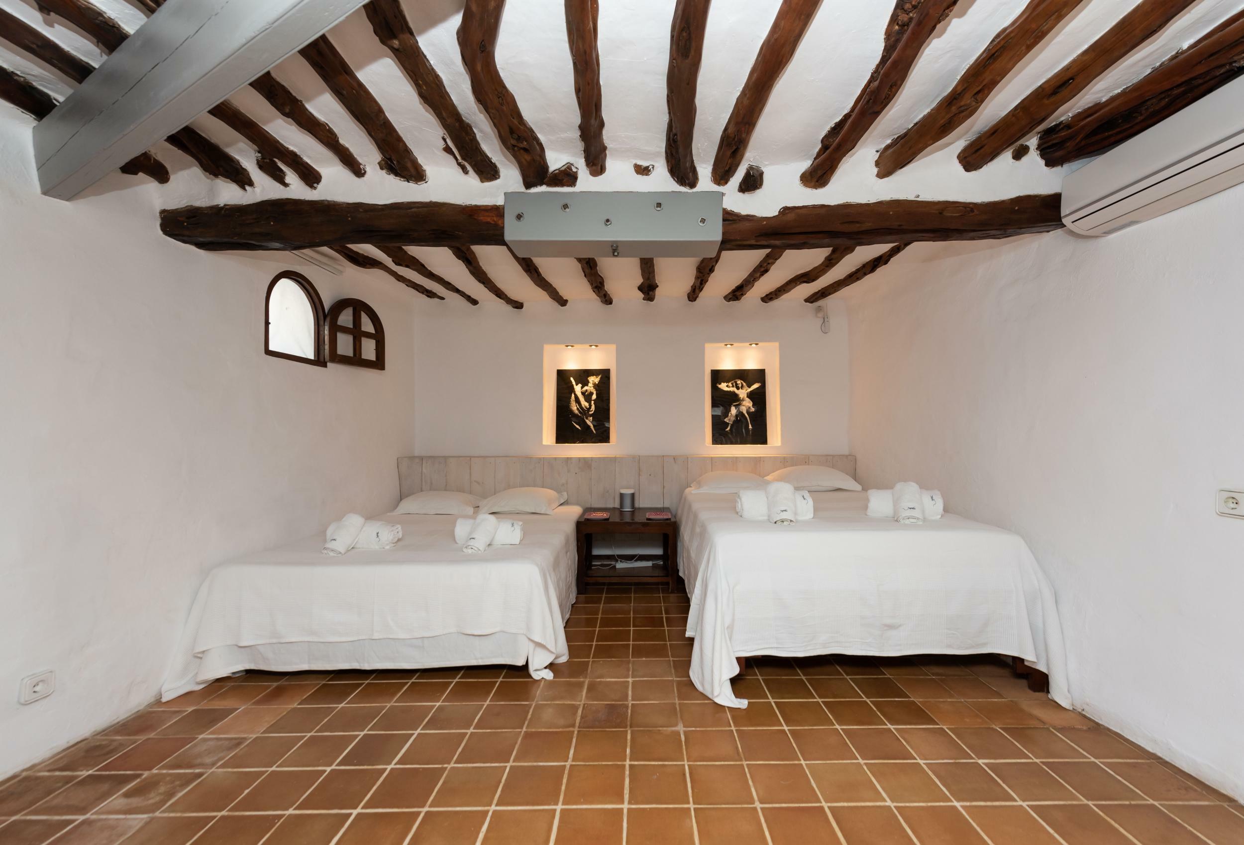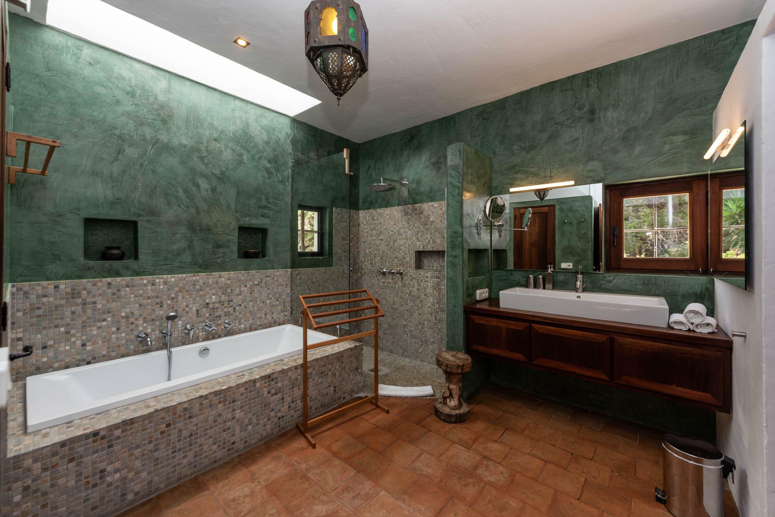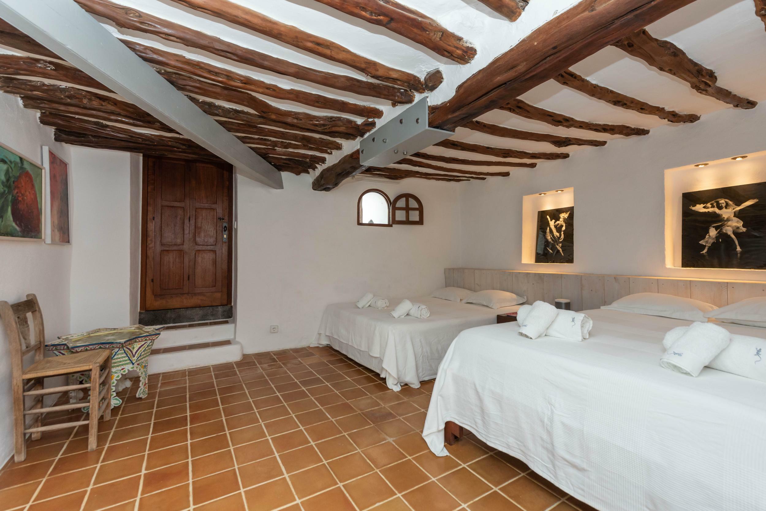 La planta baja cuenta con un dormitorio doble con cama king-size, bañera independiente, cuarto de baño en suite con duchas de lluvia gemelas y lavabos, con acceso directo a la terraza de la piscina y al jardín. En la planta superior, el dormitorio principal ofrece vistas al océano y al valle, con una cama king-size, cuarto de baño privado, terraza privada y acceso a la terraza de la azotea. La planta baja inferior tiene dos dormitorios dobles, uno con cama king-size y baño en-suite y el otro con baño en-suite y terraza privada, de fácil acceso a la terraza de la piscina.