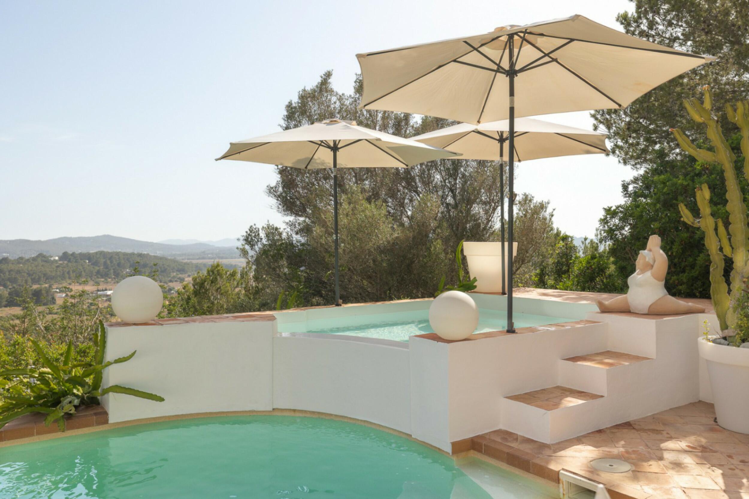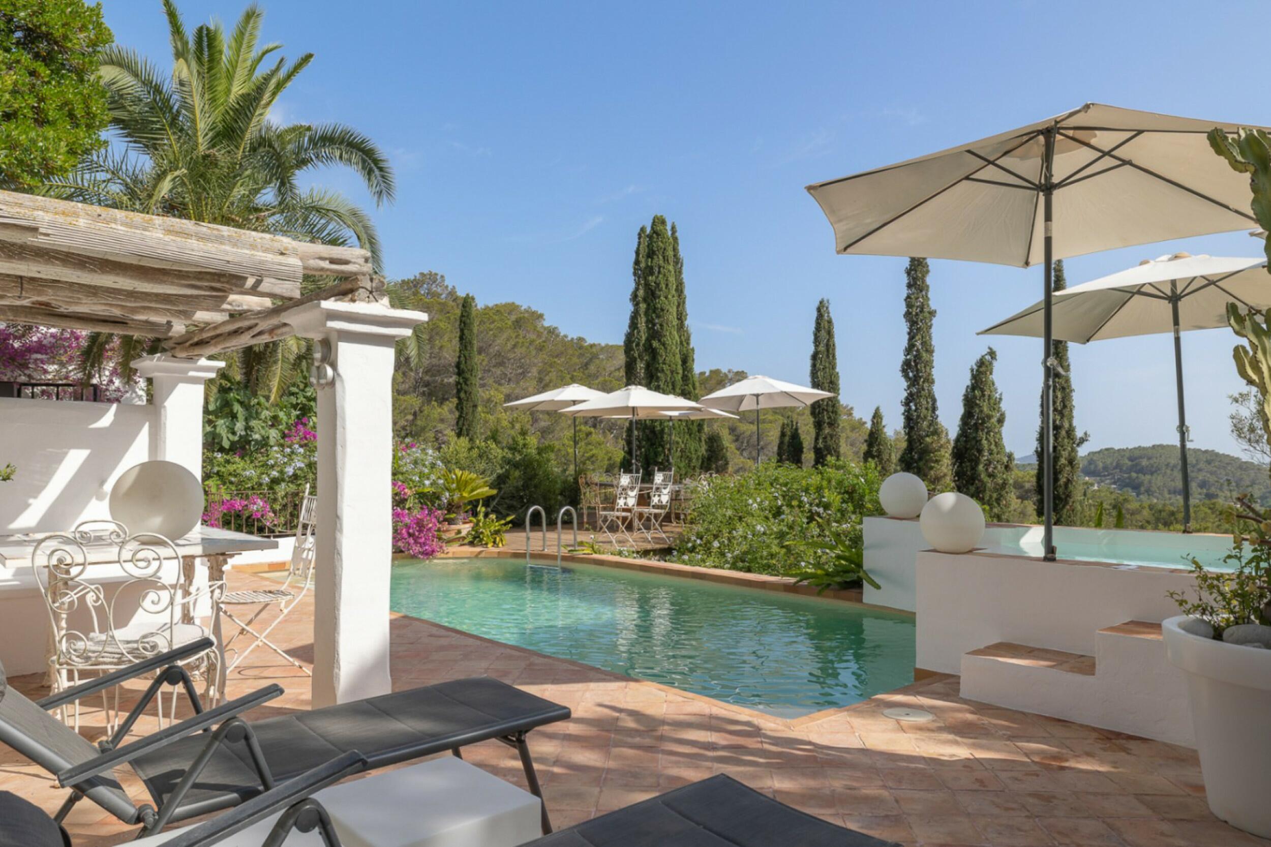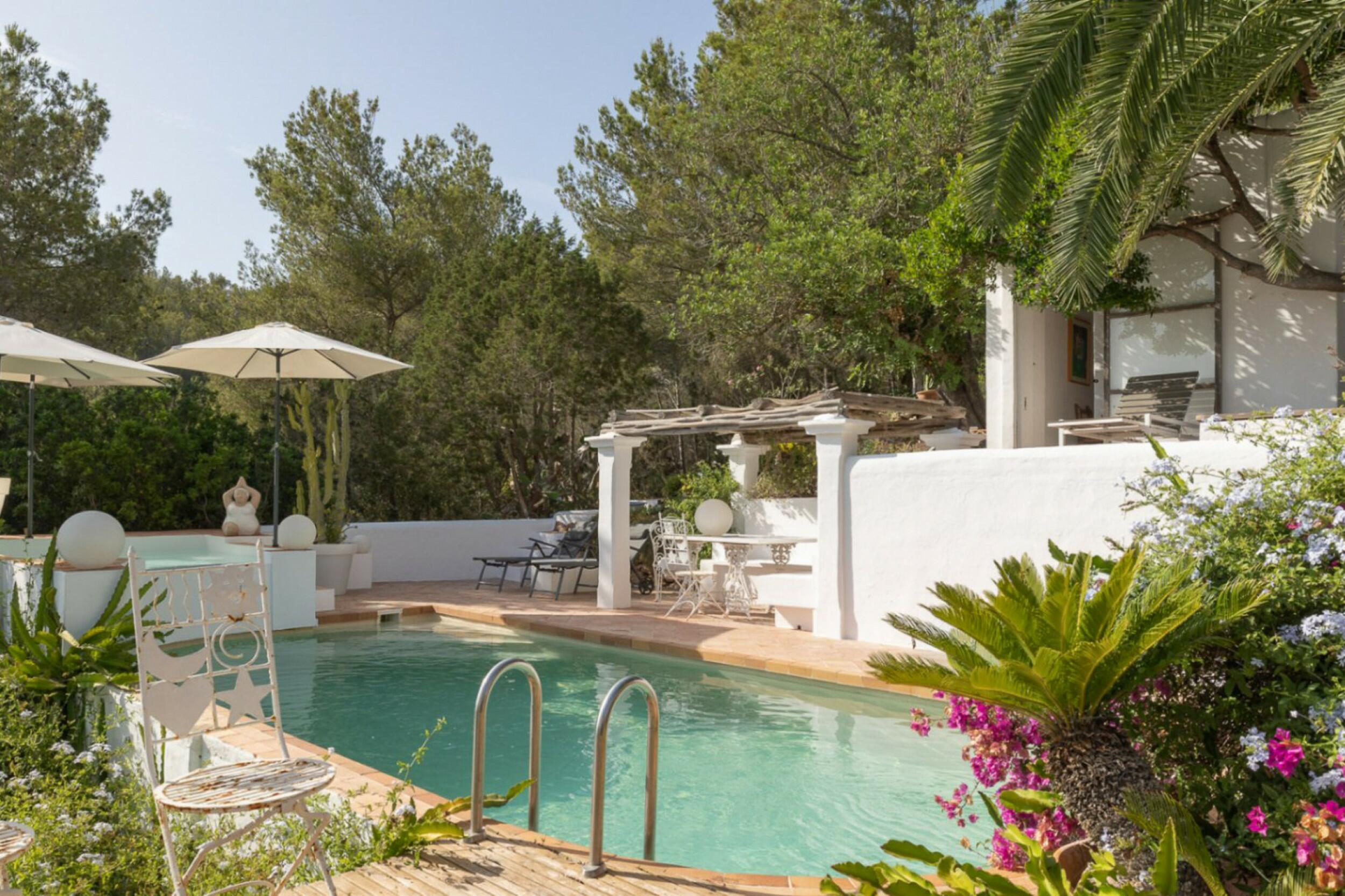 Esta comunidad de cinco villas disfruta de un jardín comunitario de 2.500 sm2, un club social de 233 m2 que podría ser utilizado para eventos familiares, barbacoas, etc .. con una pérgola de cocina. Los jardines mediterráneos han sido conscientemente diseñados con variedades de bajo riego y mantenimiento para mejorar la eficiencia y ahorrar costes. El entorno del complejo ofrece una vista muy agradable de campos silvestres con árboles que es muy típico del paisaje ibicenco.