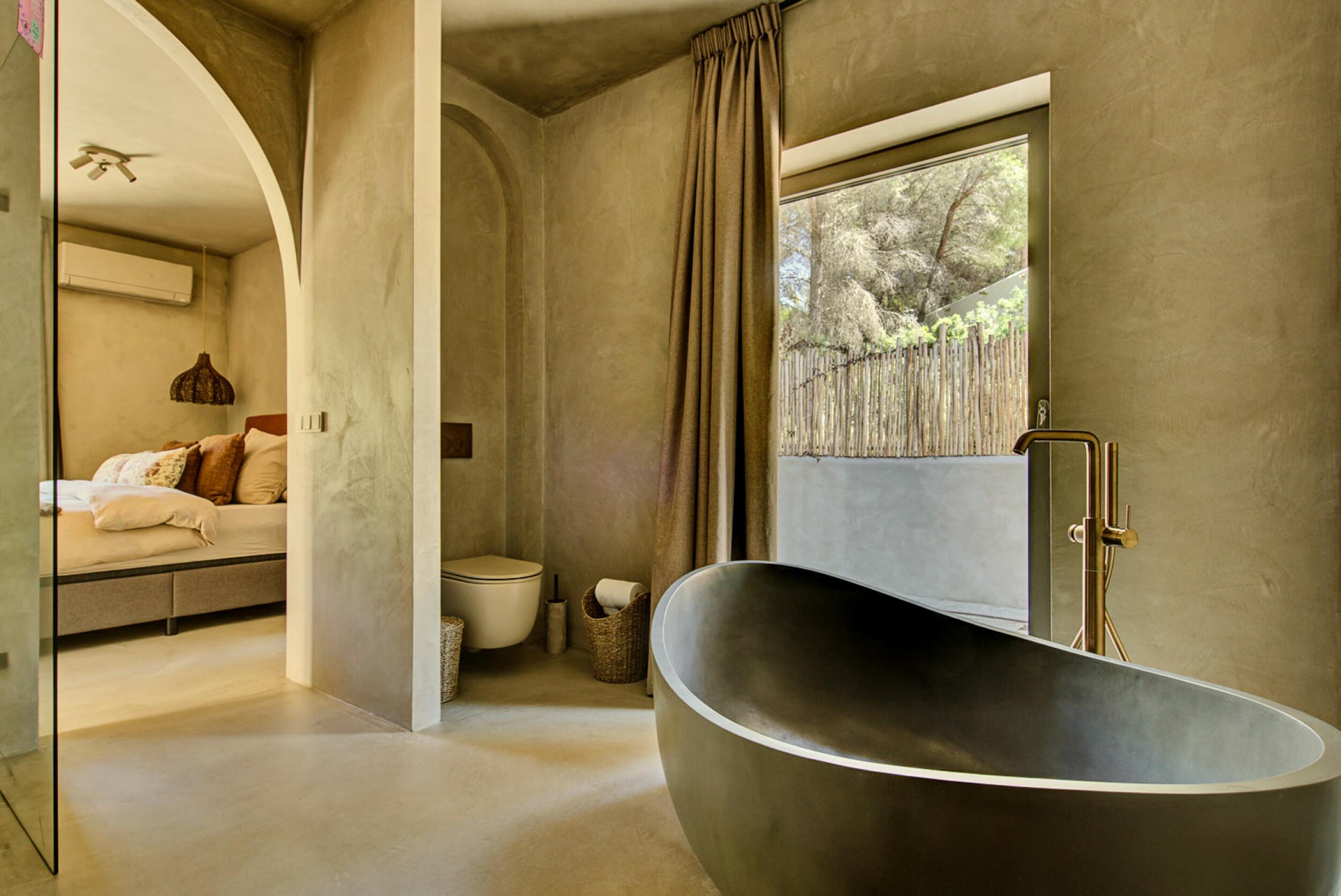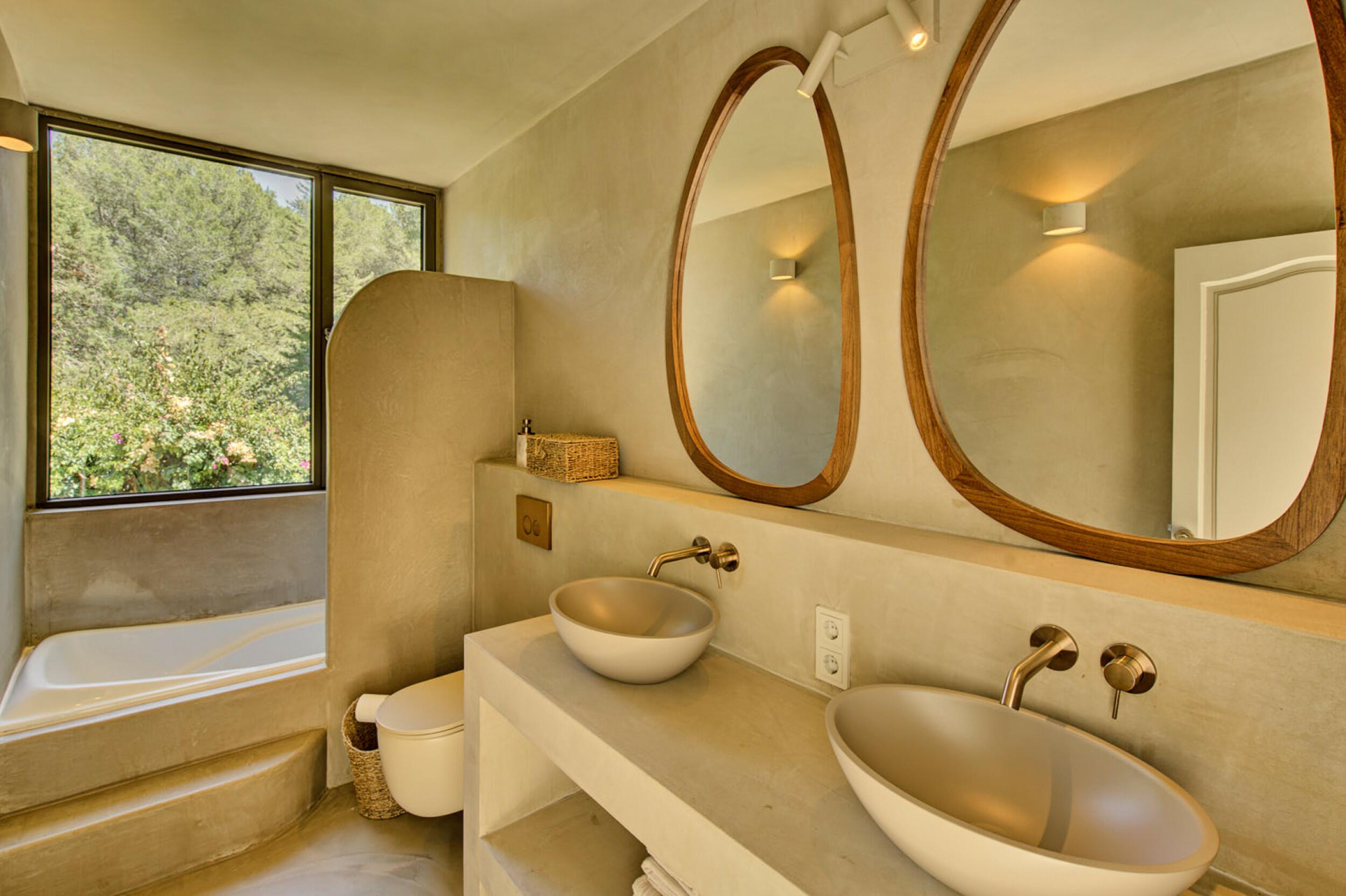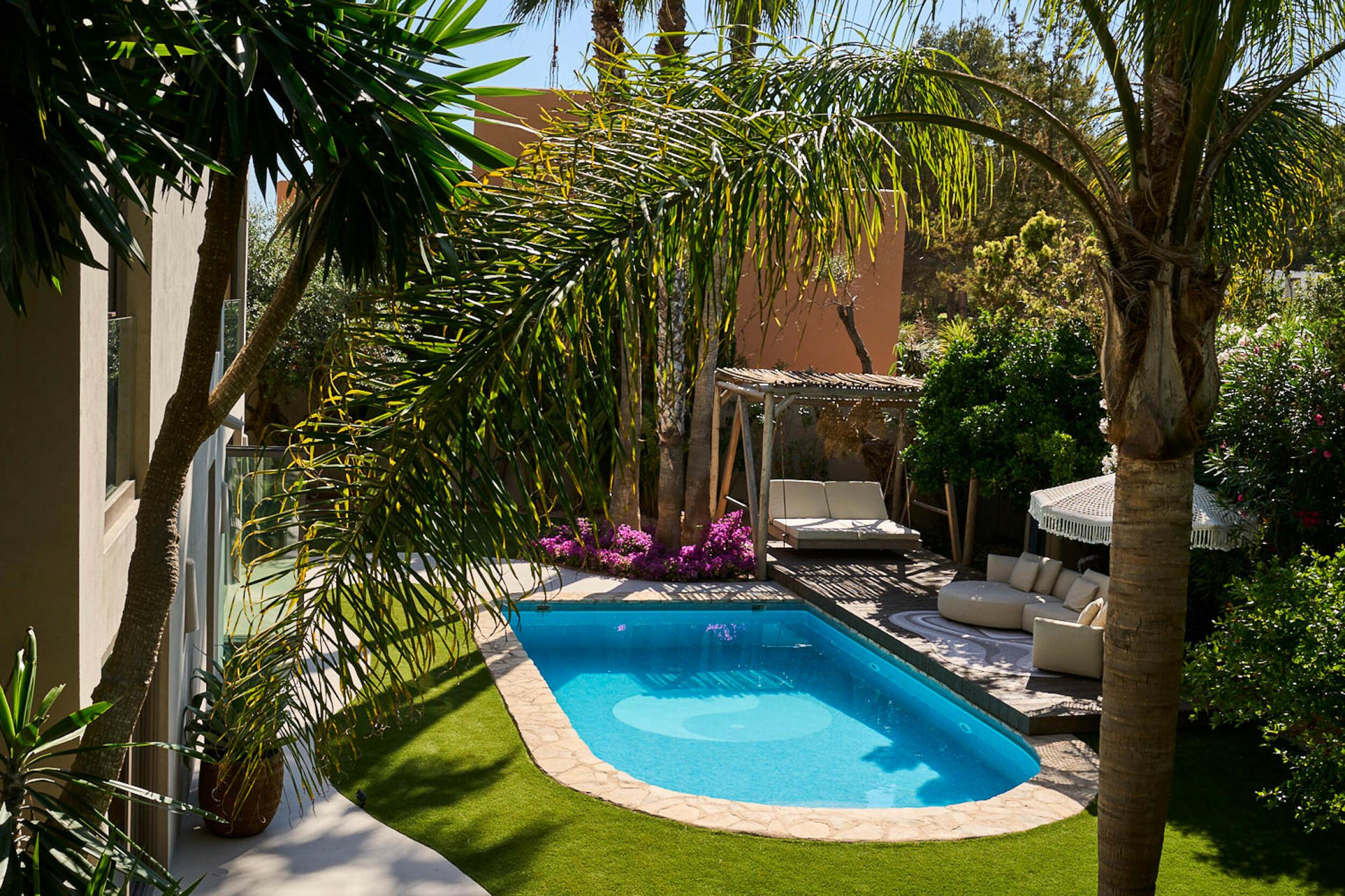 En las "Villas Imagine", orientadas al sur, vivirá en plena naturaleza, se despertará cada mañana ante la inmensa bahía de Talamanca y el Mediterráneo. Desde la ubicación privilegiada de Cap Martinet, disfrutará de las vistas al mar desde su hamaca o desde la increíble piscina.