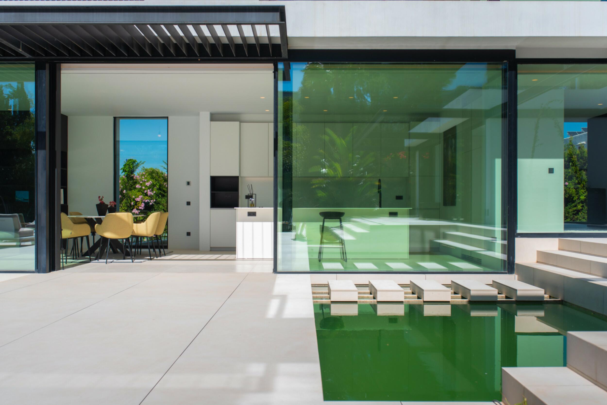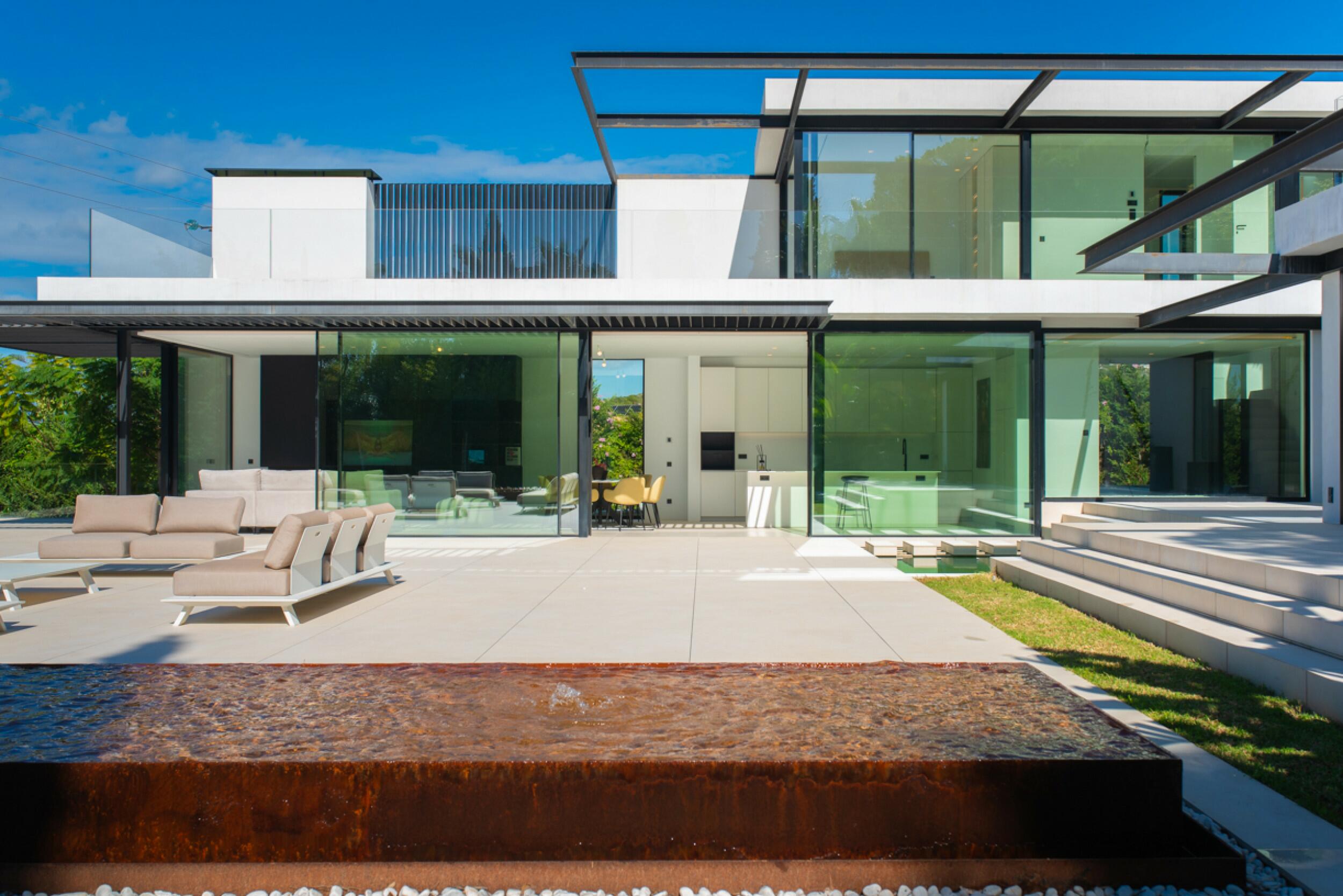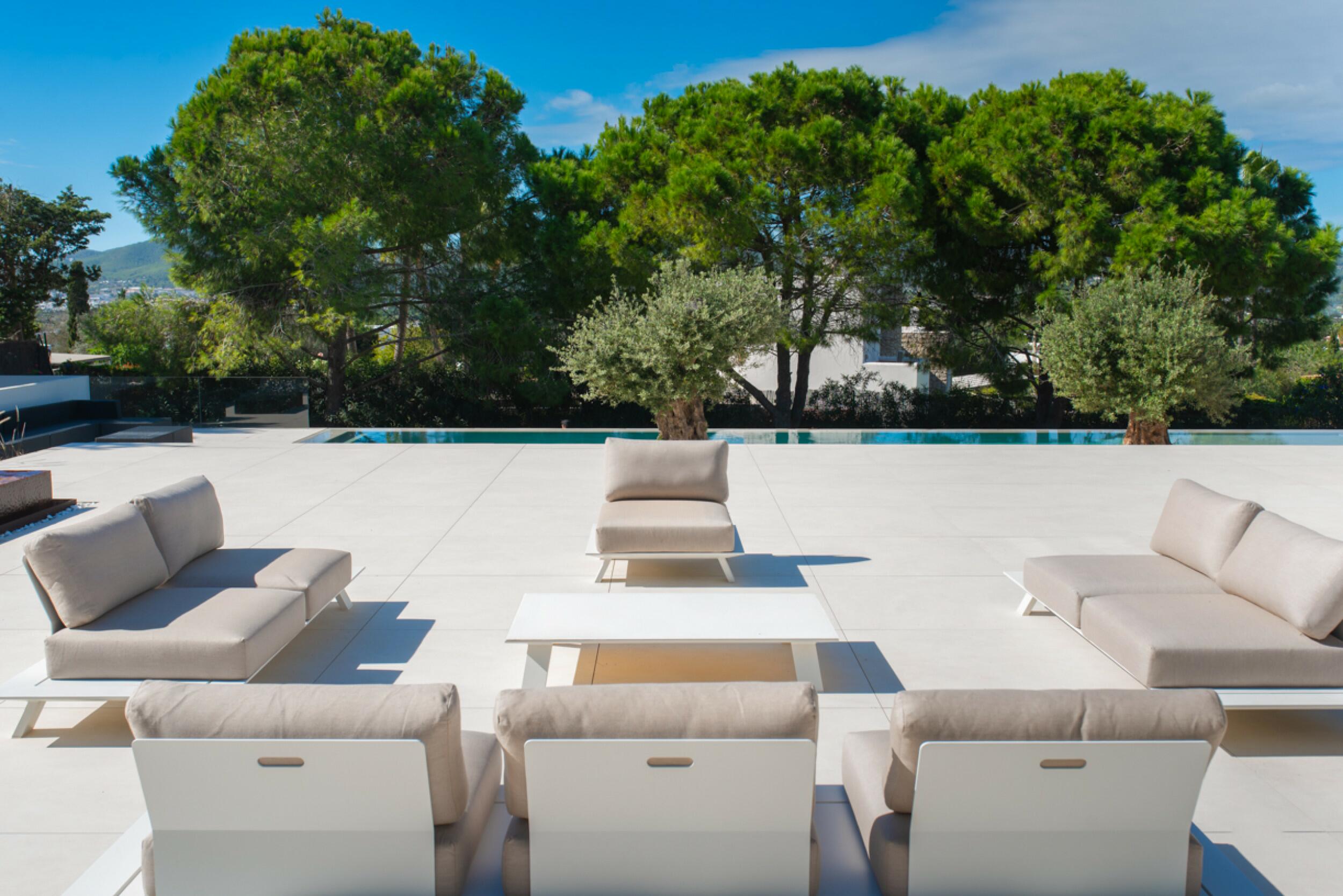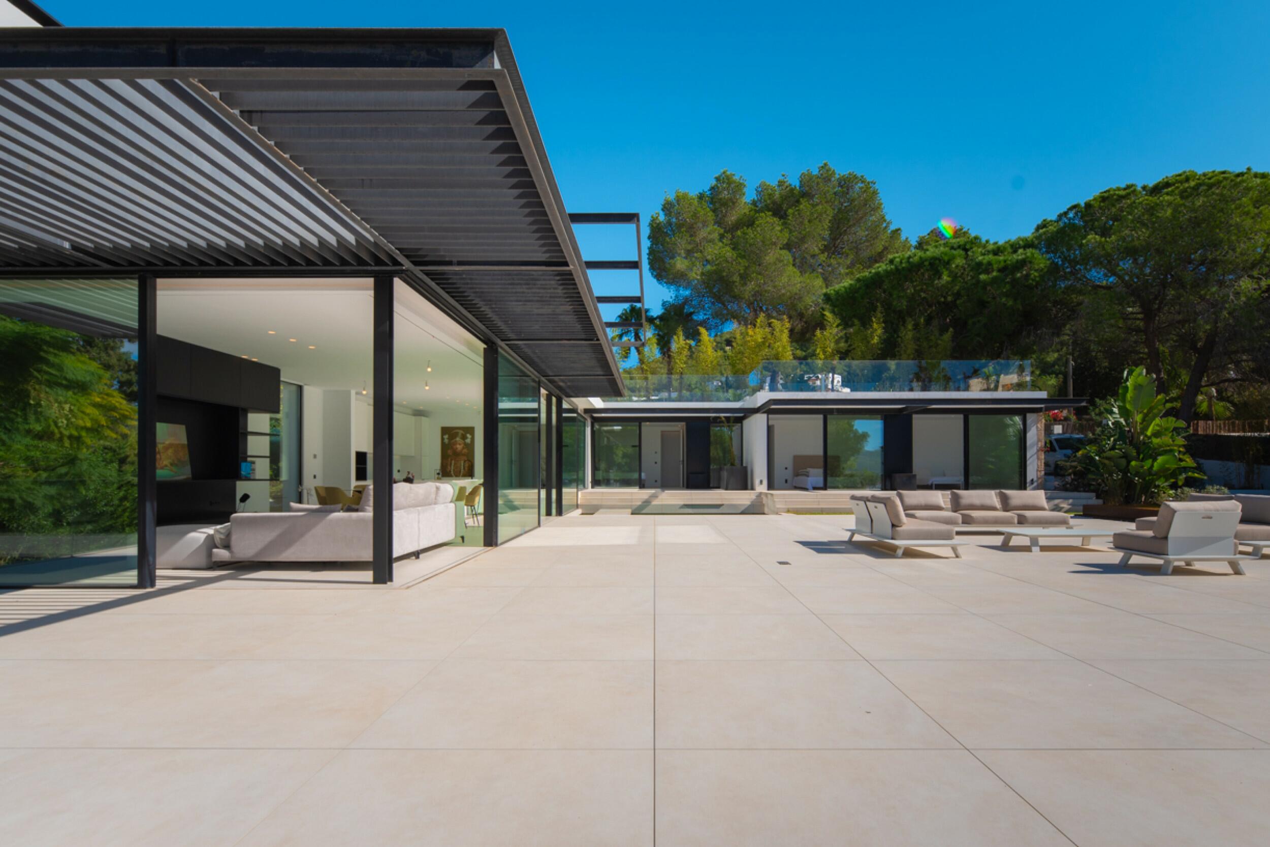 La villa incita a pasar tiempo al aire libre gracias a sus generosas terrazas, que culminan en la terraza del nivel superior, entre la cocina-salón-comedor y la piscina, que dispone de una zona bien sombreada.