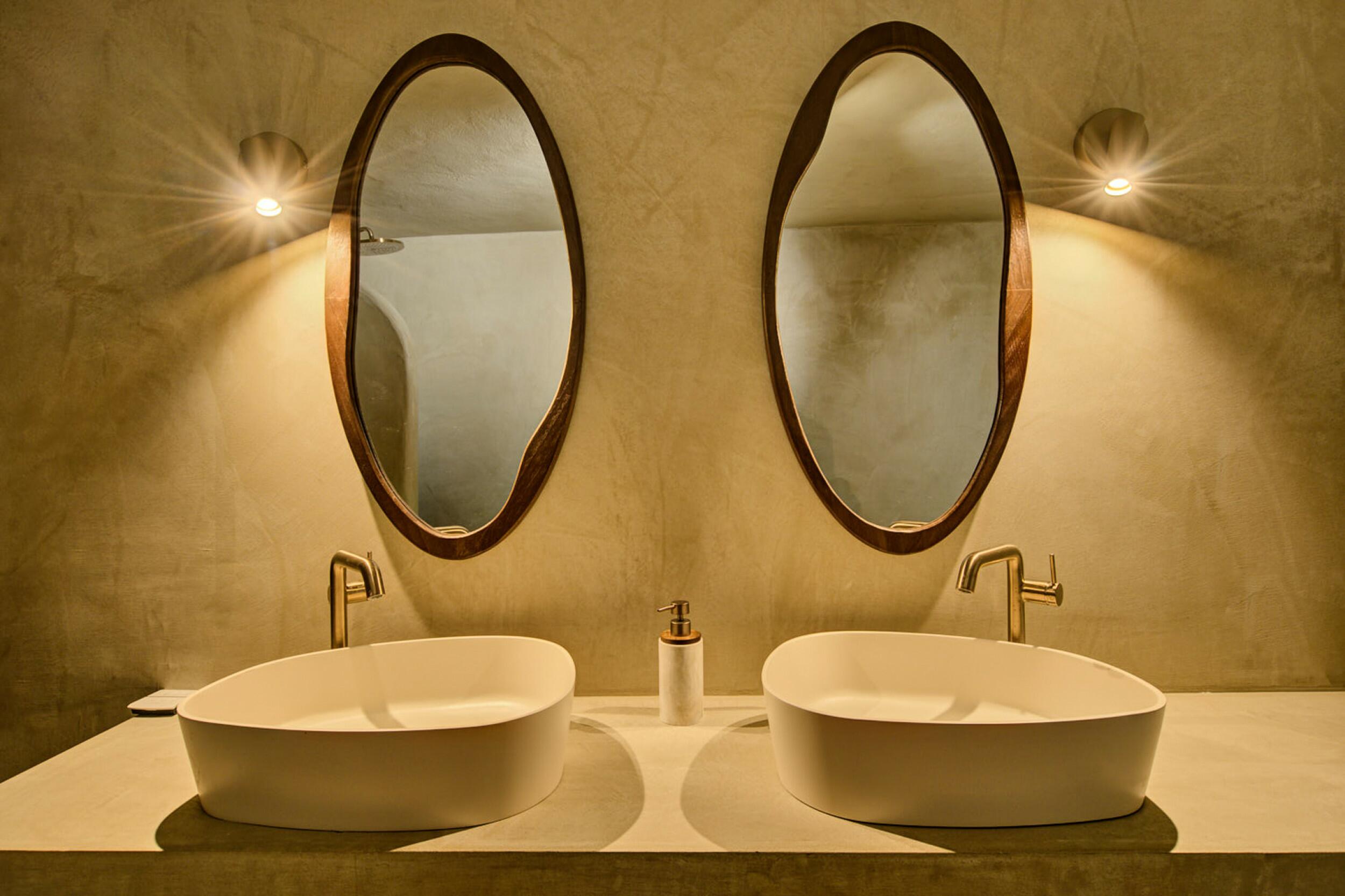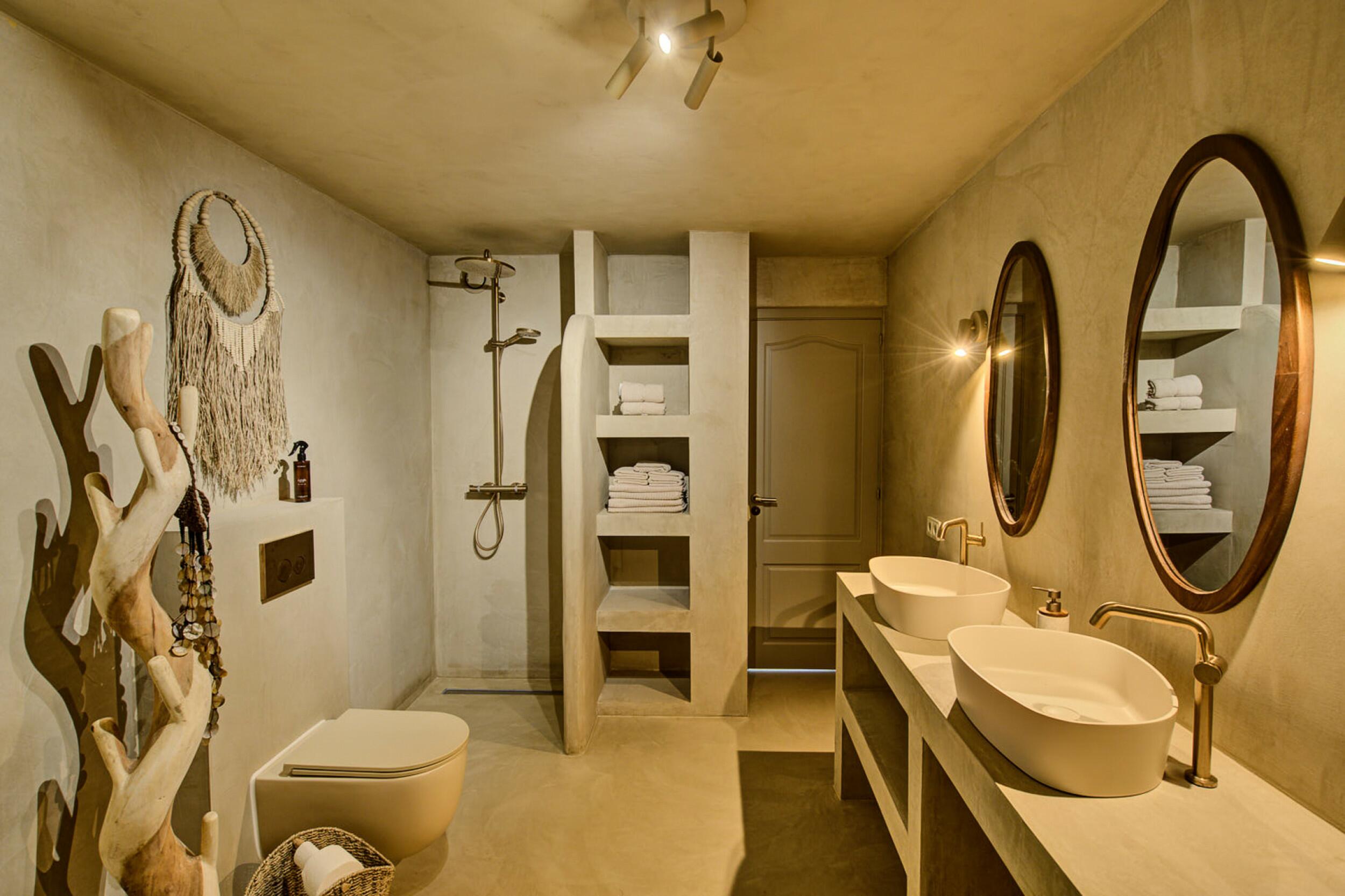 El ala de los dormitorios se encuentra en el nivel inferior, con vistas abiertas y terrazas privadas. Todas las habitaciones tienen baño propio y terraza independiente.