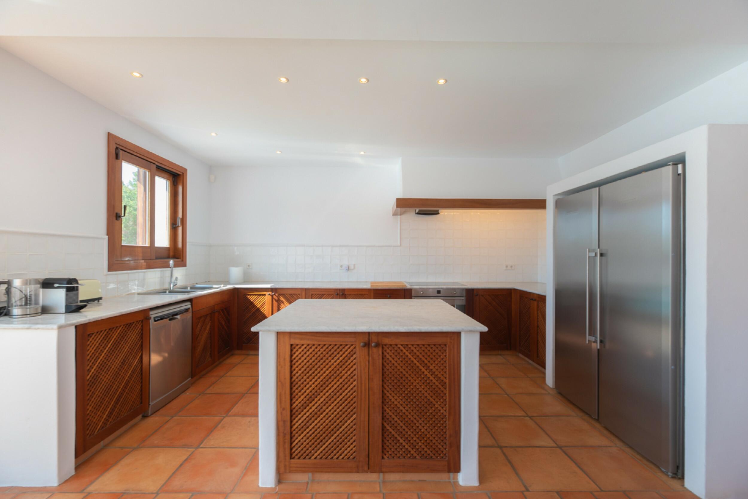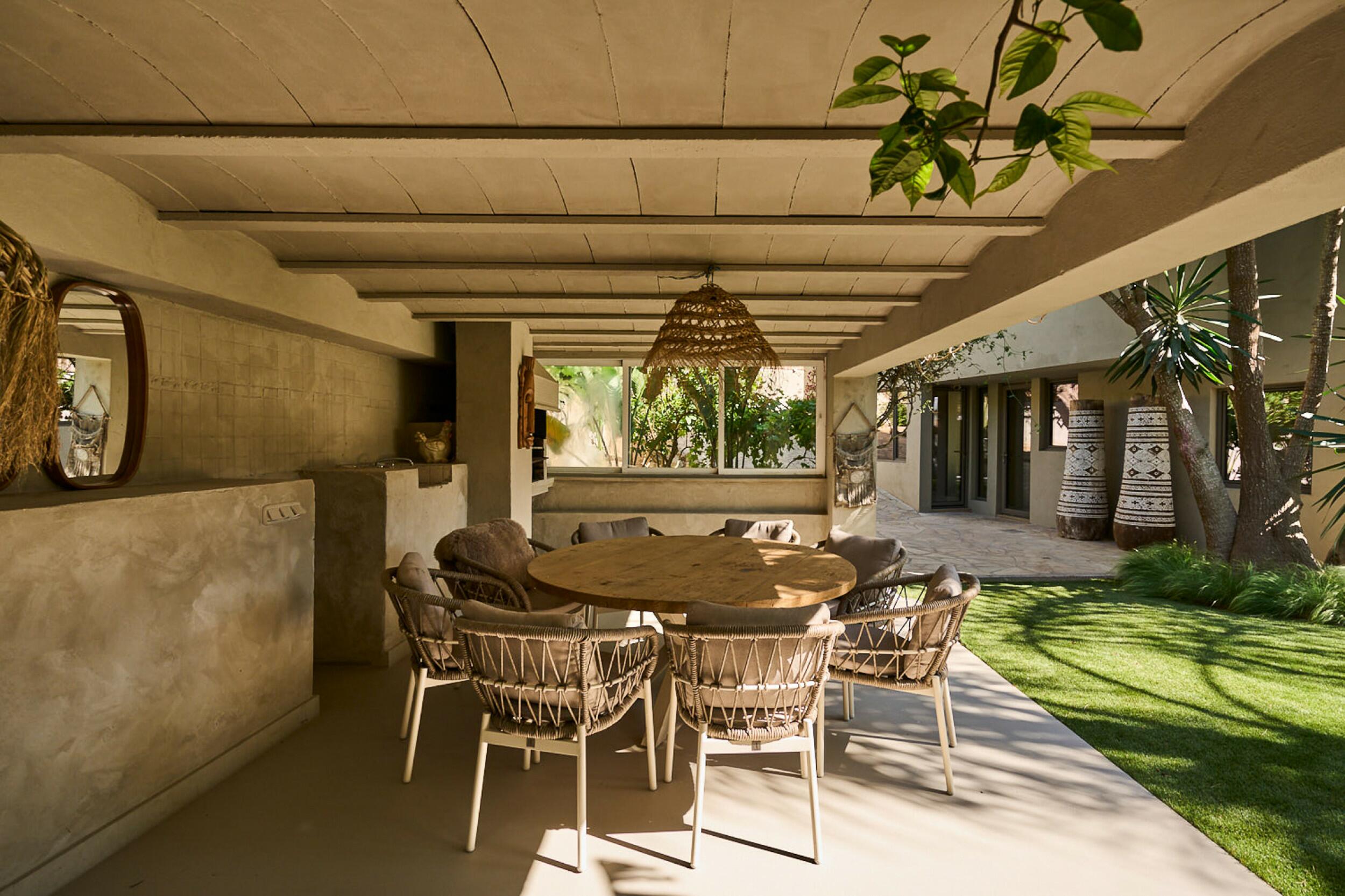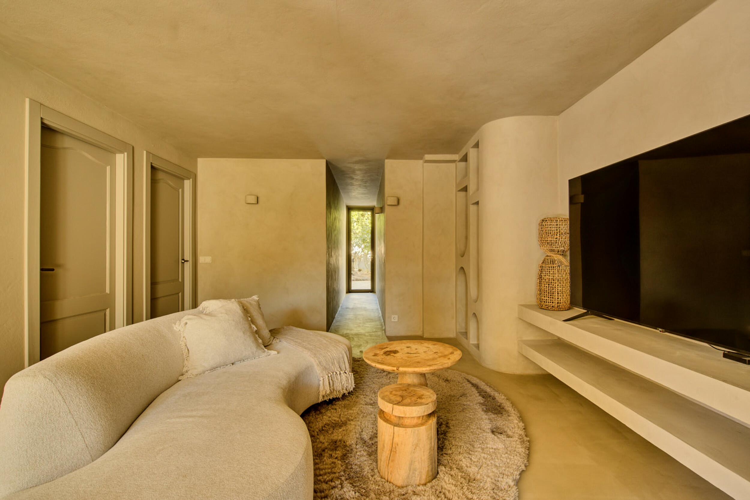 Se entra por la parte baja de la parcela, desde la calle de Cap Martinet, una calle tranquila en una de las zonas más cotizadas de Ibiza. El gran sótano alberga un garaje cubierto, un almacén y todas las instalaciones necesarias para la casa.