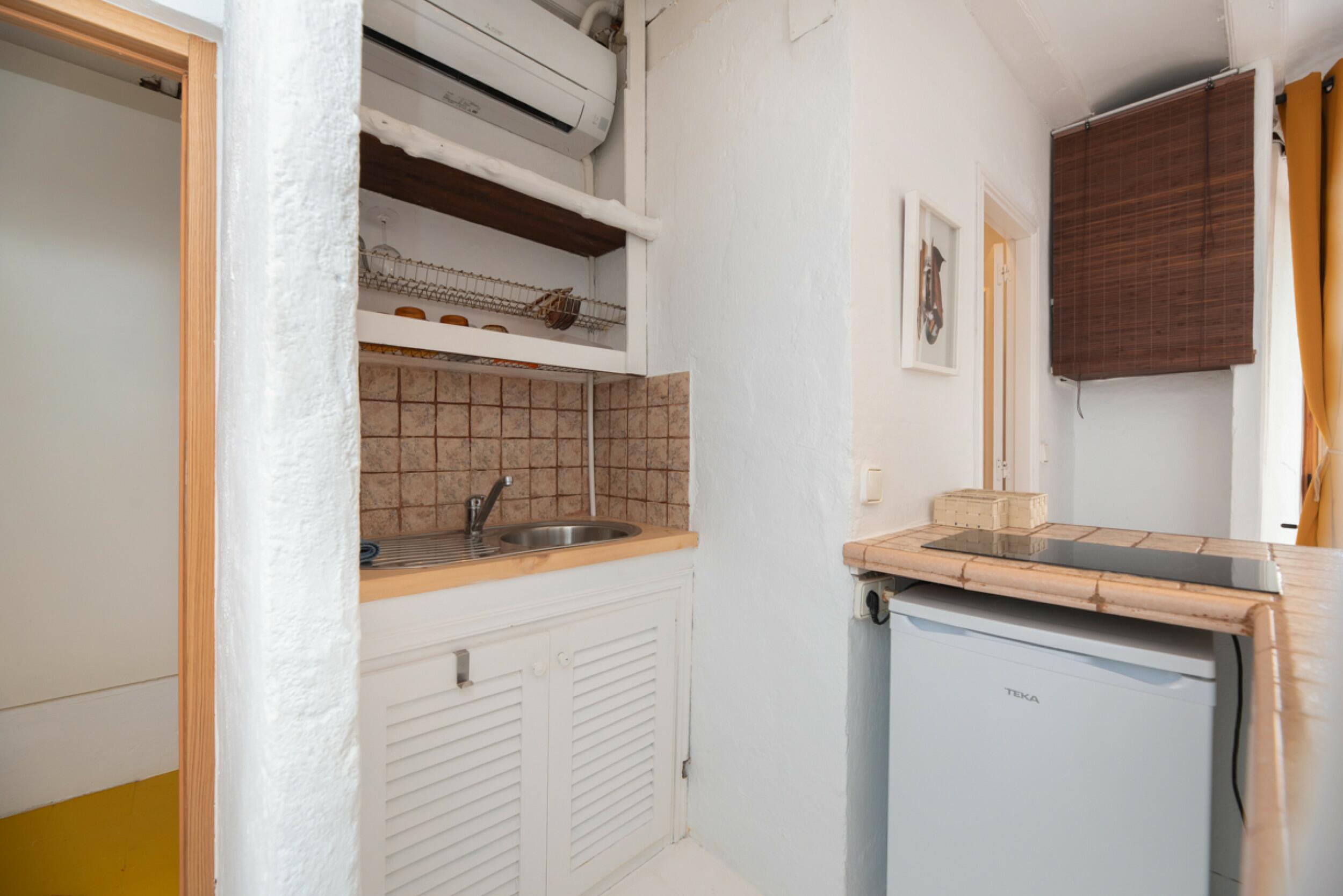 El apartamento está equipado con agua y luz de red, así como una chimenea en el salón que le da un toque acogedor y cálido. La cama doble en el altillo brinda versatilidad al espacio.