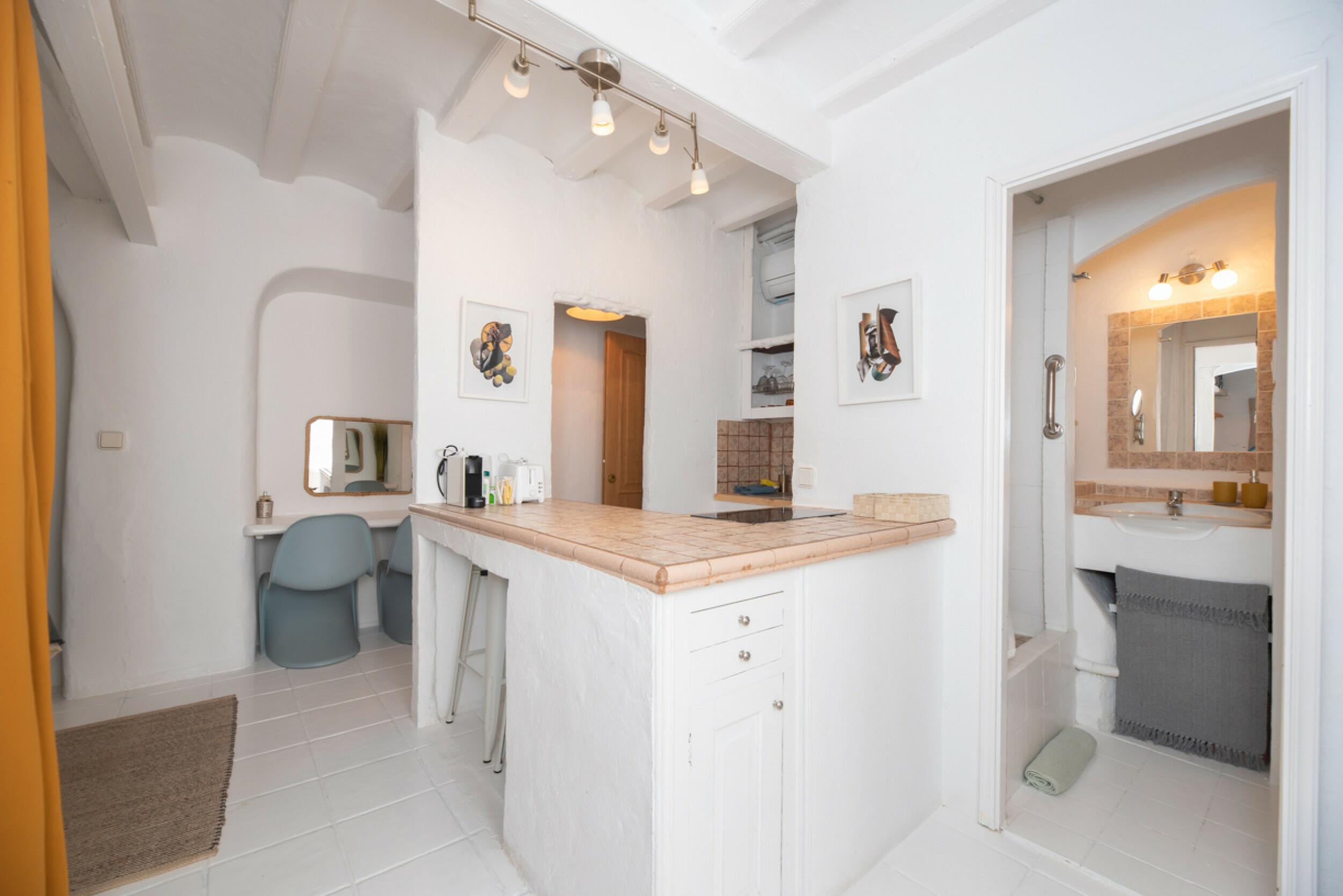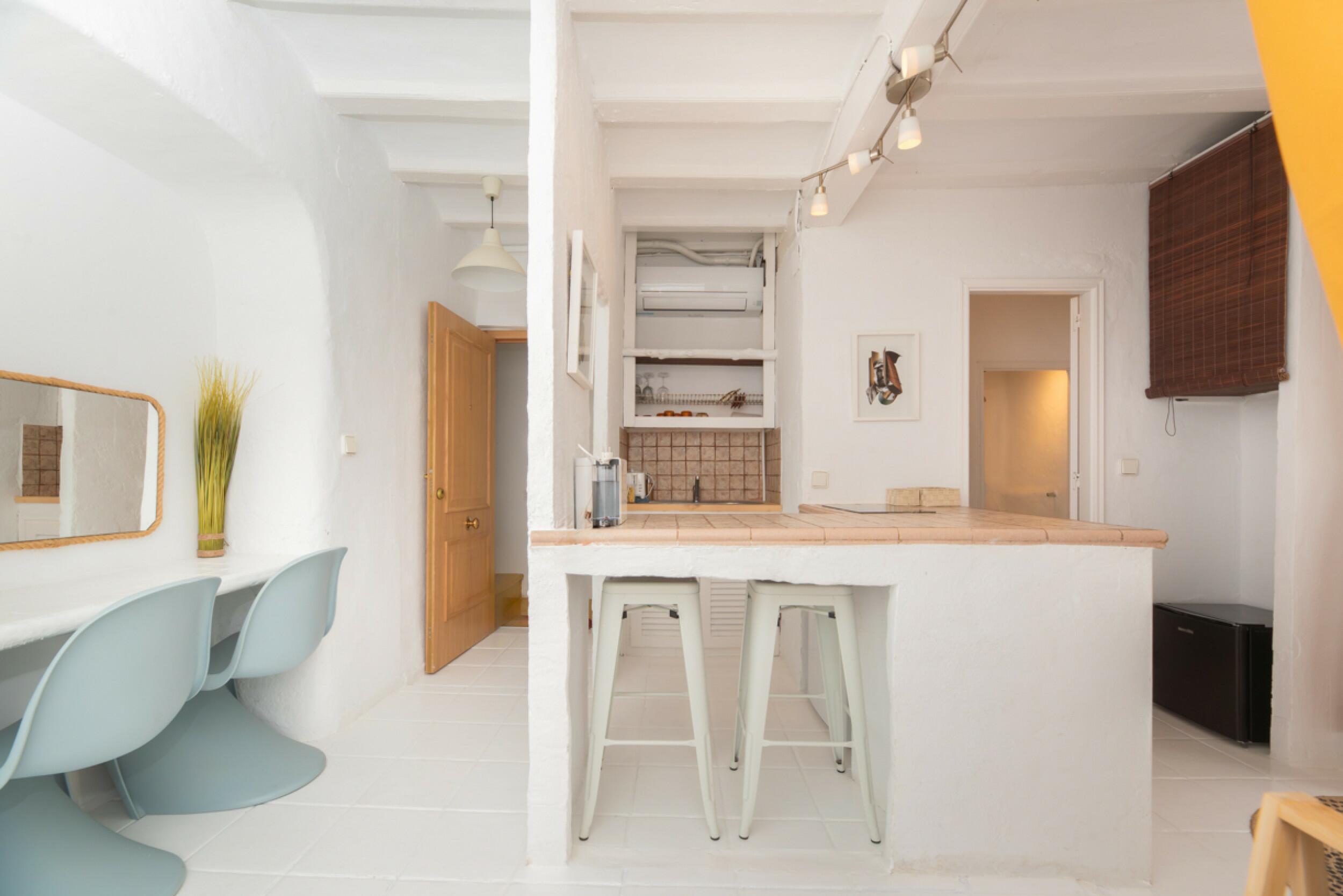 El balcón en el salón proporciona un rincón al aire libre, mientras que la amplia terraza en la planta superior ofrece un espacio con vistas panorámicas al mar, a la Marina y Dalt Vila.