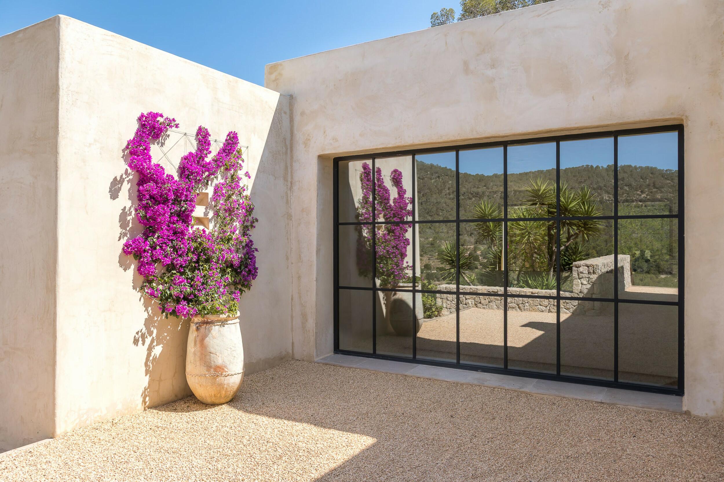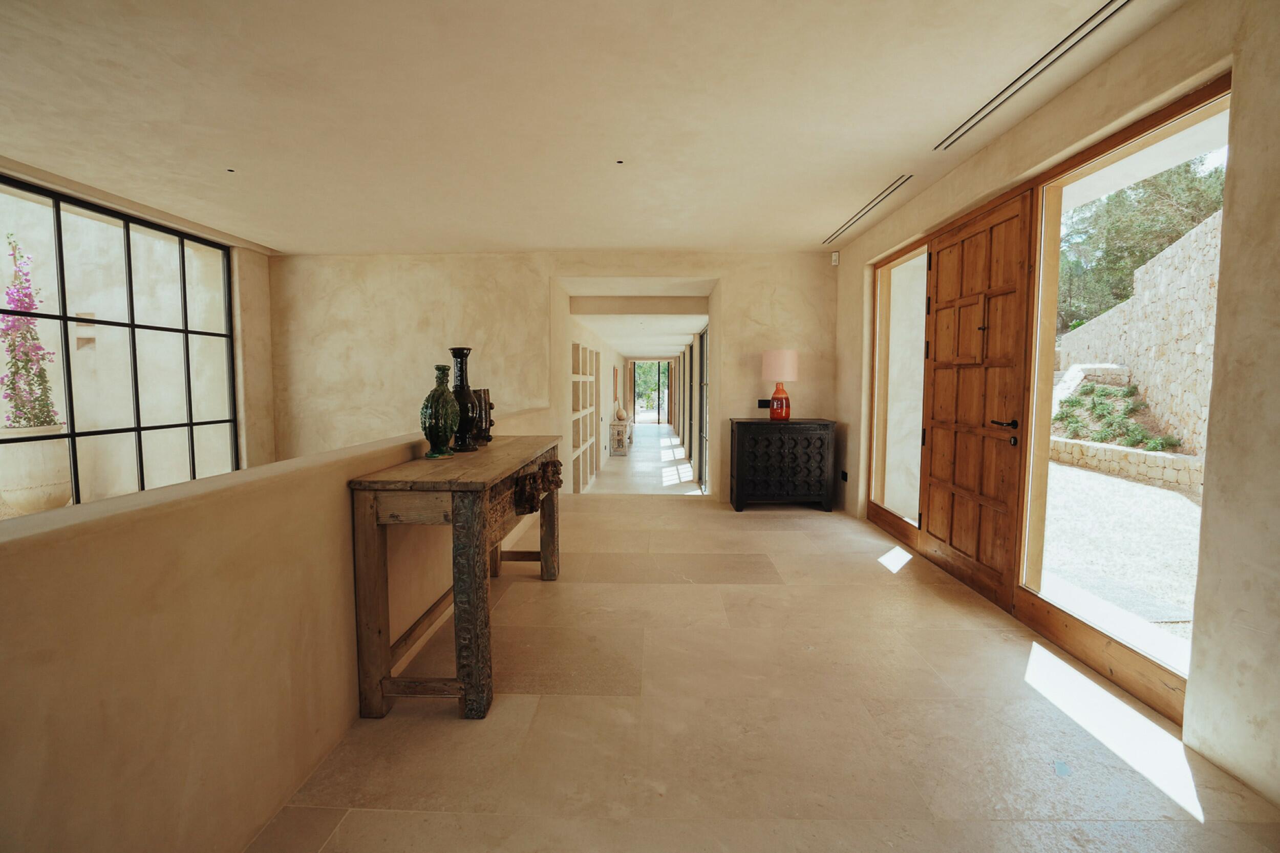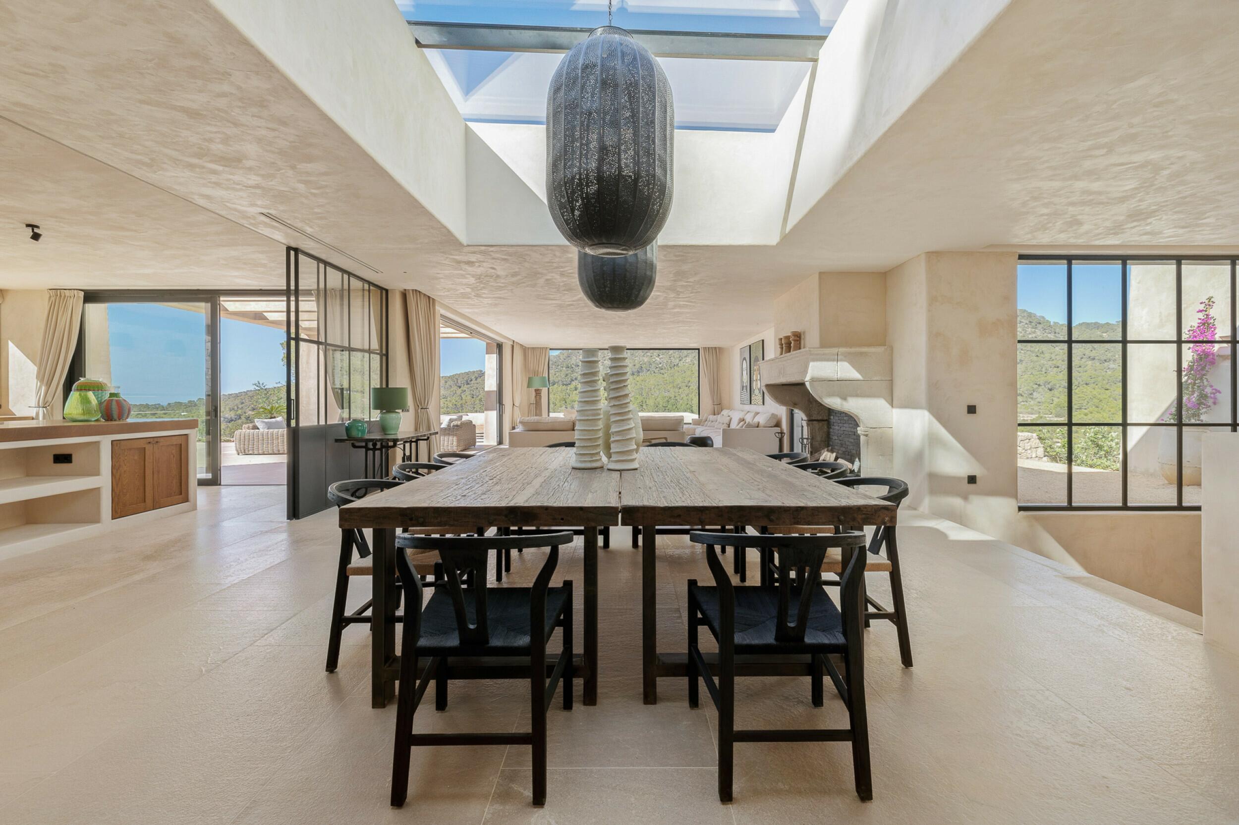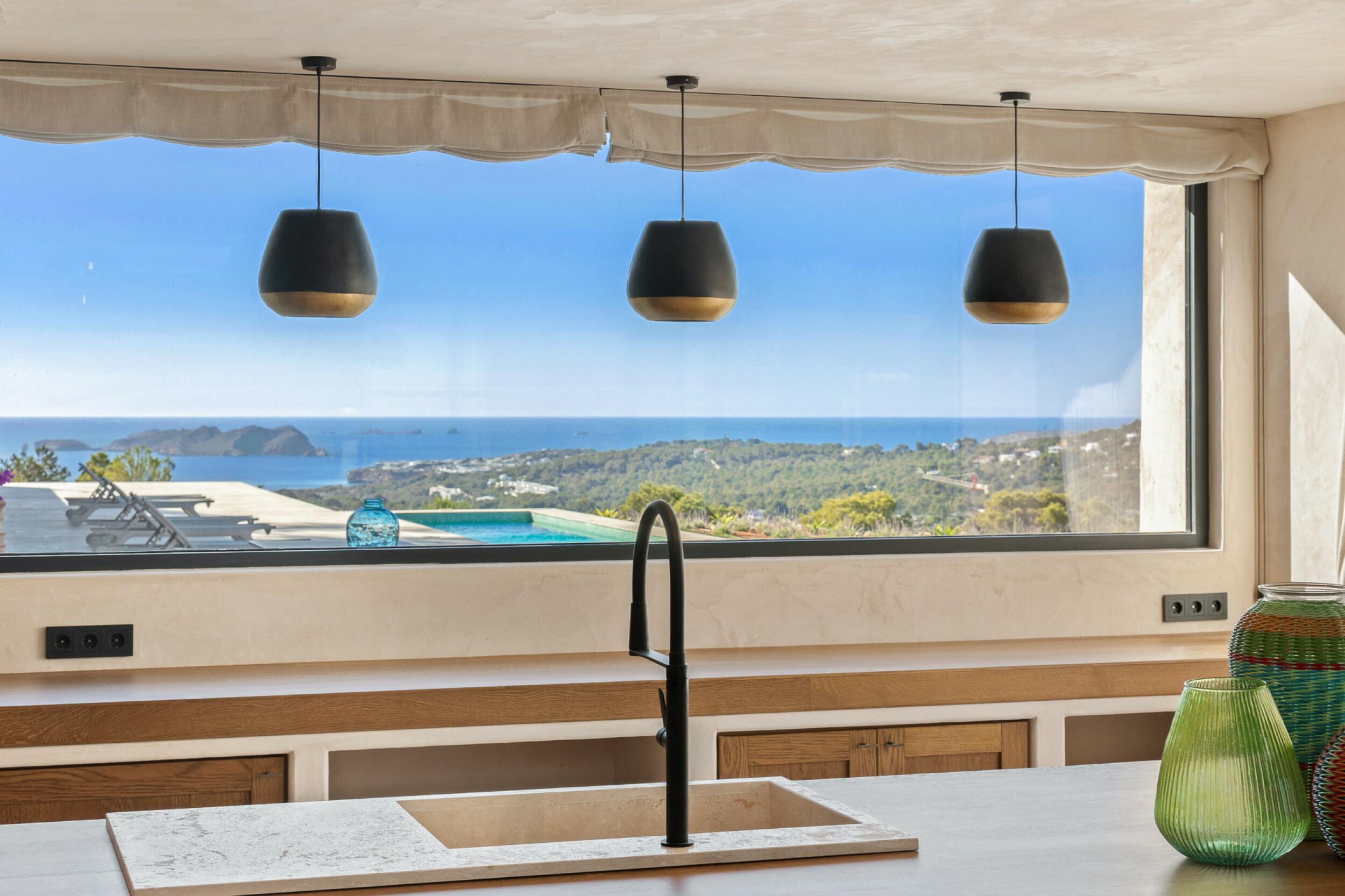 La orientación sur de la villa le garantiza sol durante todo el año, tanto en la villa como en las terrazas, donde podrá disfrutar de abundante luz natural. Contemple las fascinantes vistas al mar de Formentera, una visión que cautiva el alma y le recuerda la magia de Ibiza.