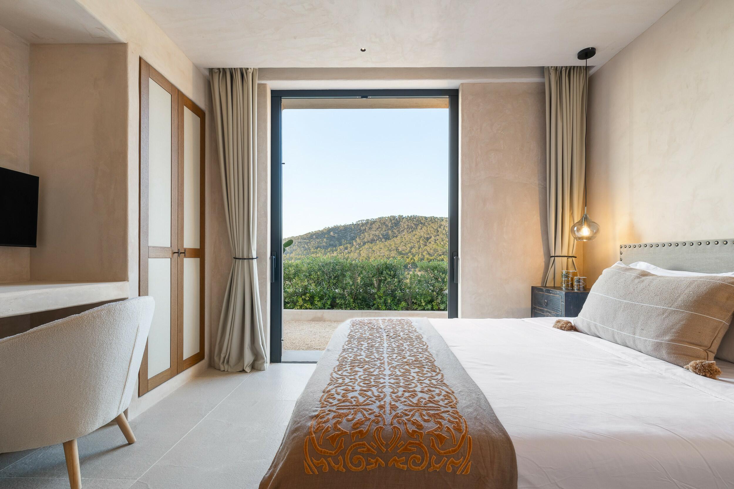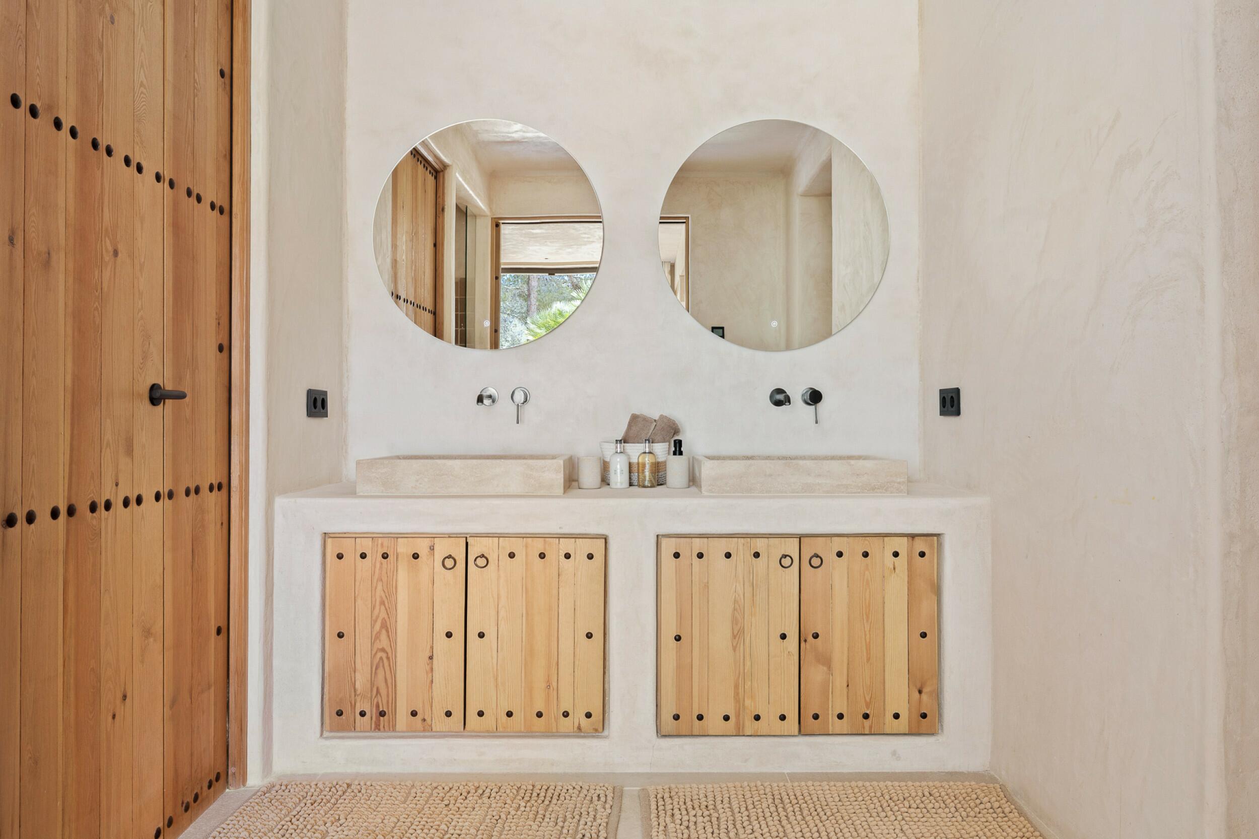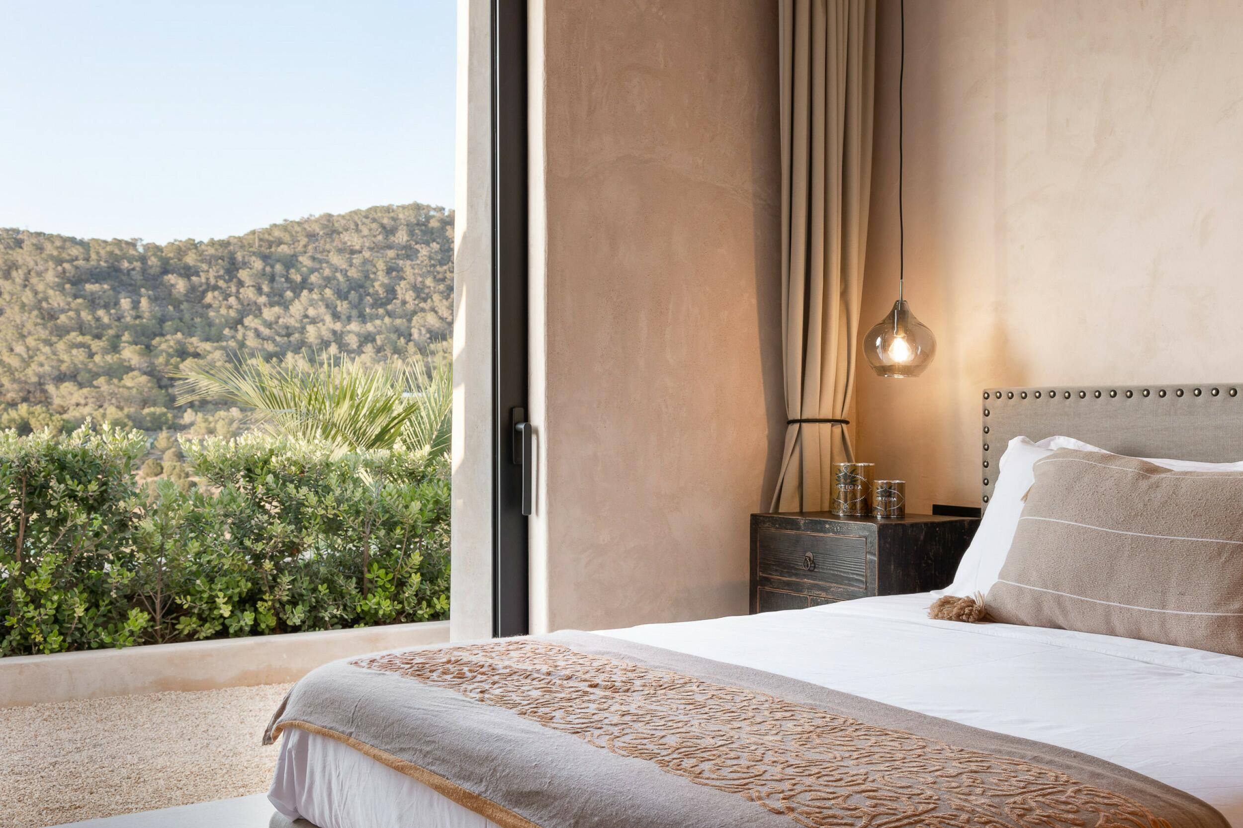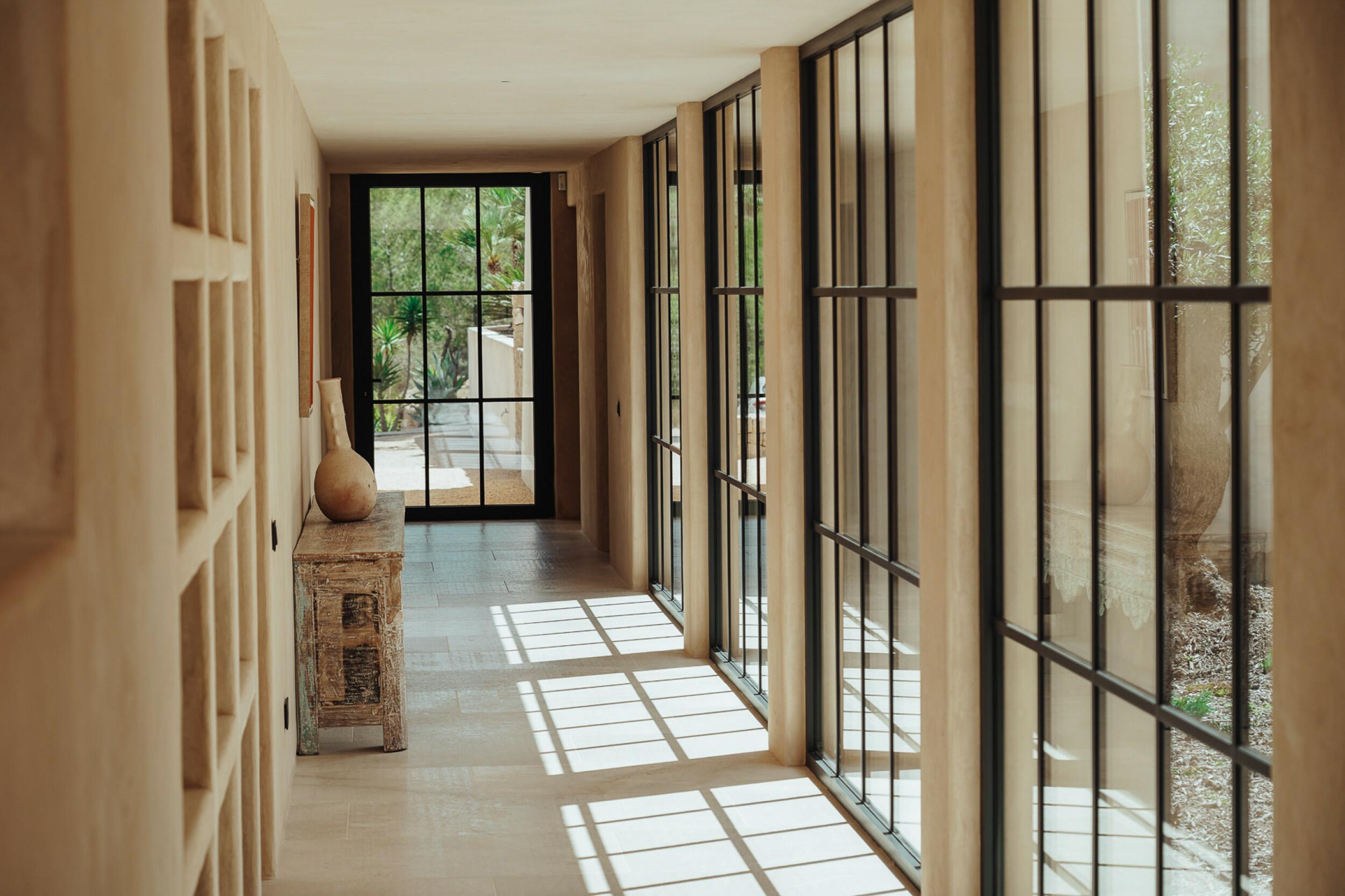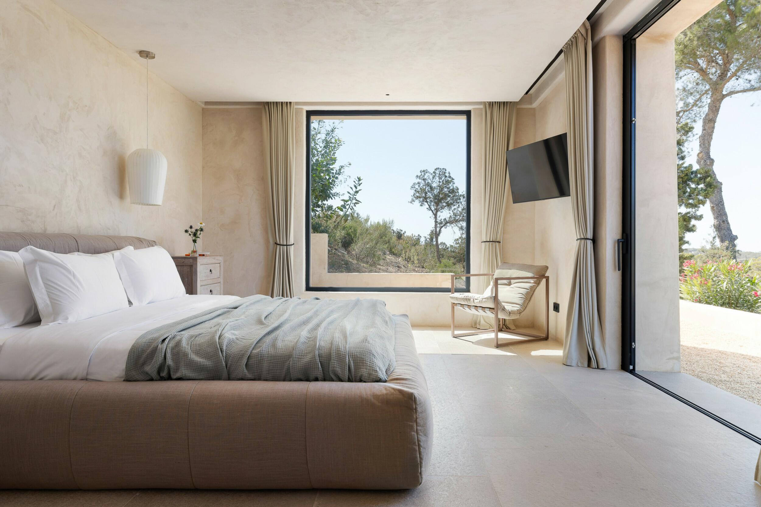 La orientación sur de la villa le garantiza sol durante todo el año, tanto en la villa como en las terrazas, donde podrá disfrutar de abundante luz natural. Contemple las fascinantes vistas al mar de Formentera, una visión que cautiva el alma y le recuerda la magia de Ibiza.