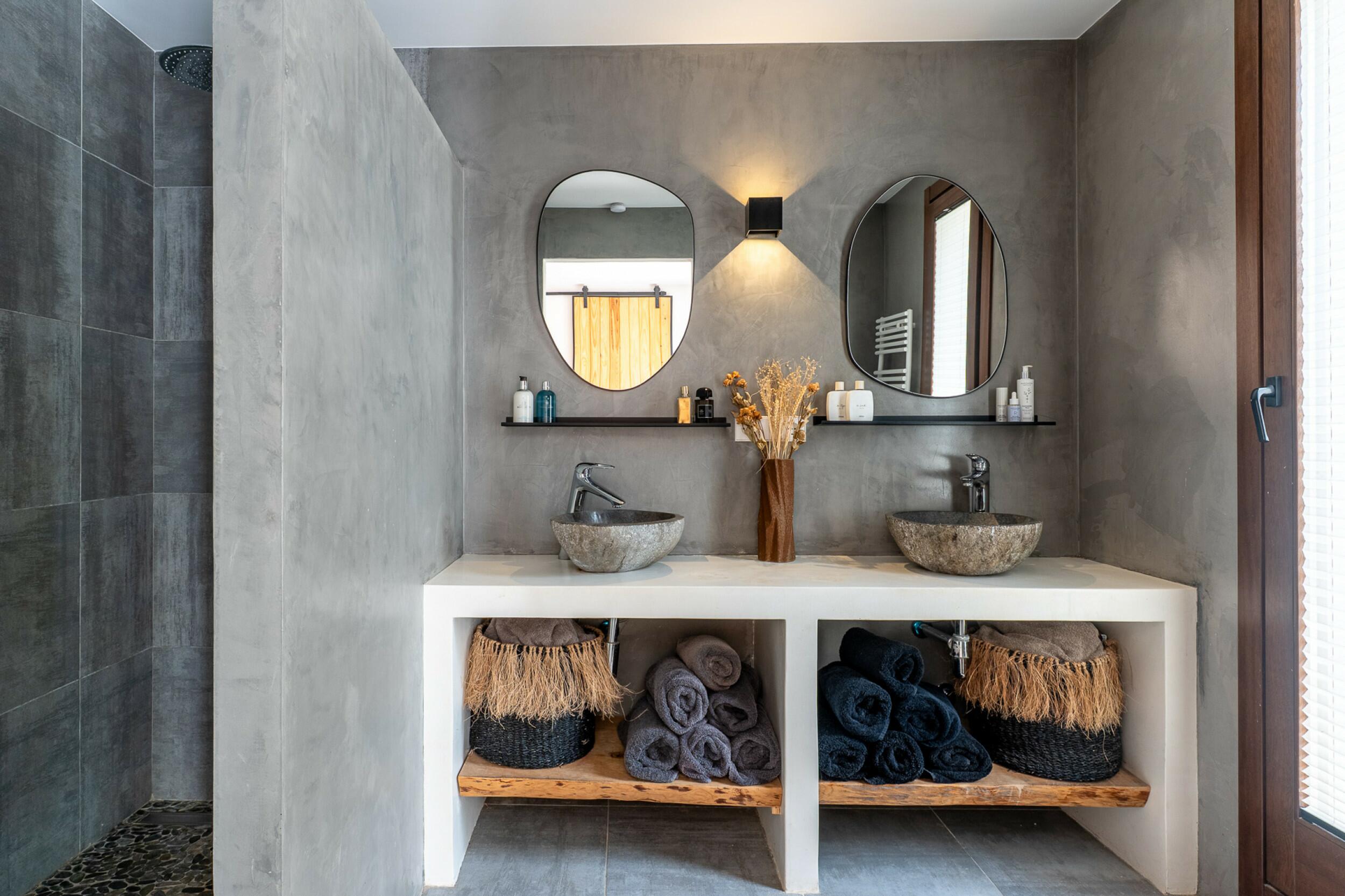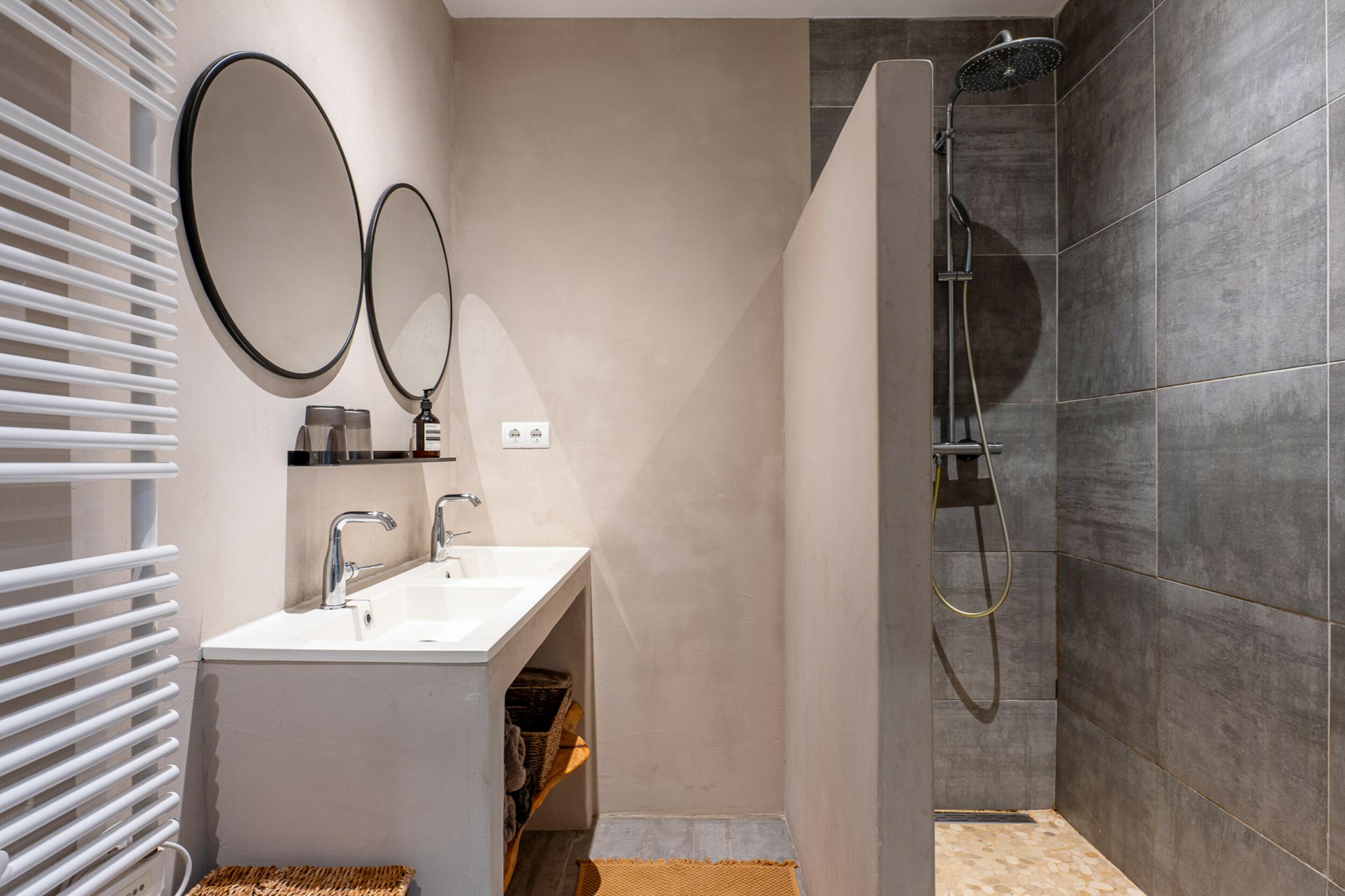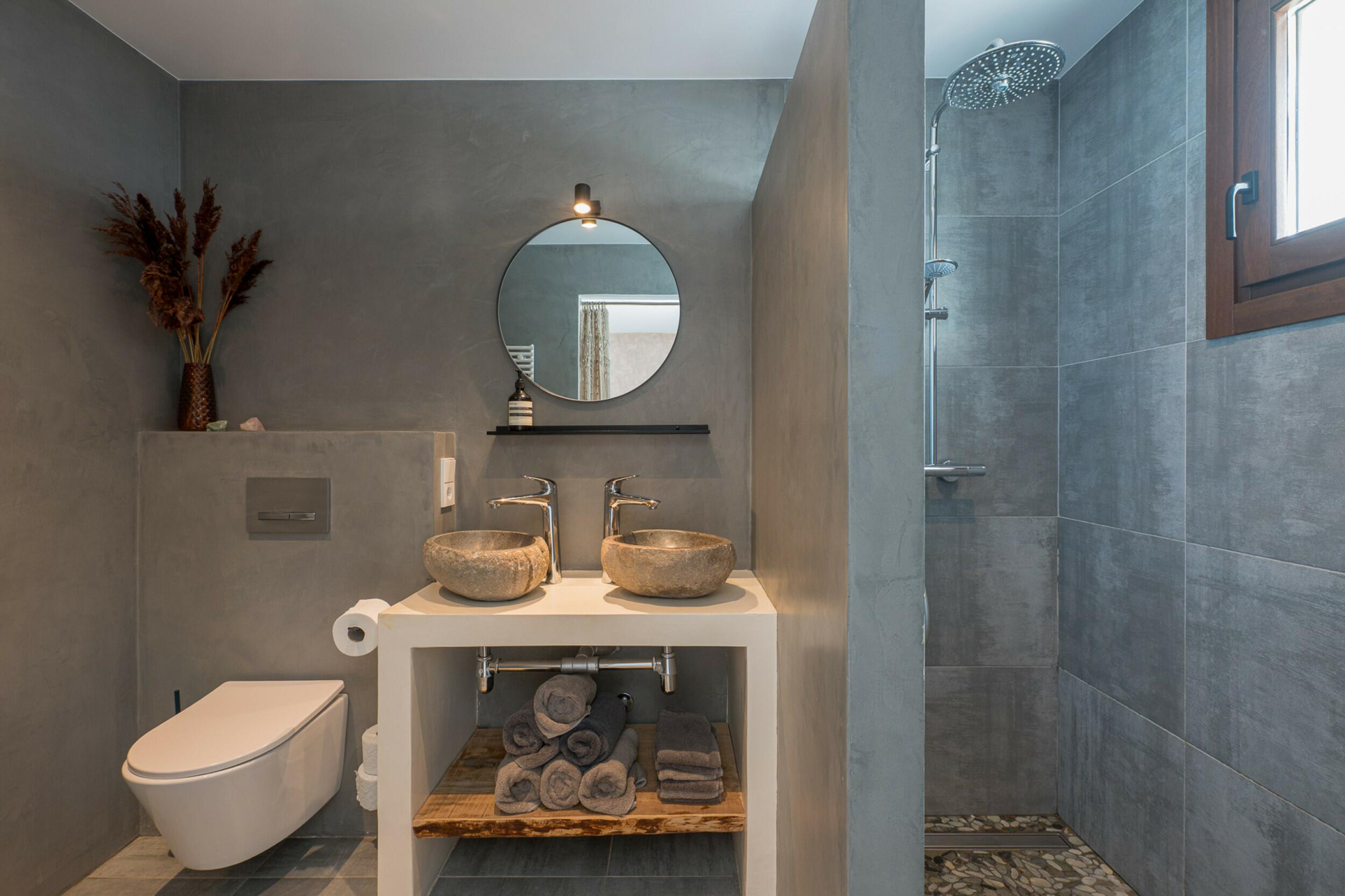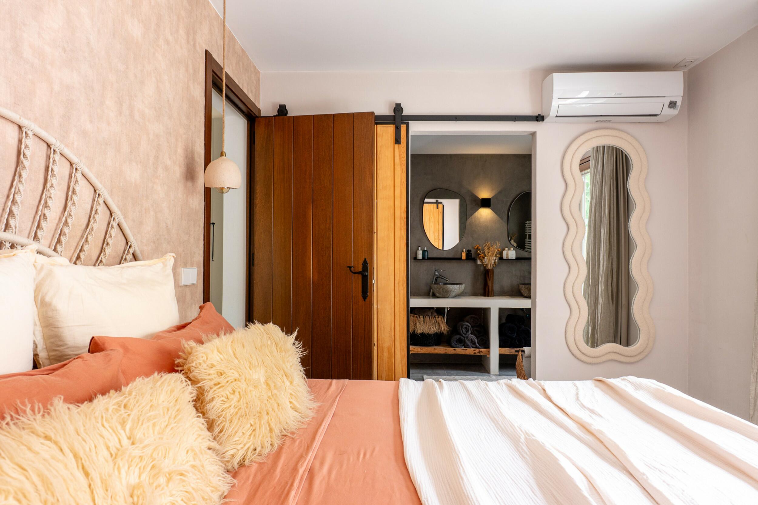 Compuesta por una casa principal y un anexo, la distribución de la propiedad está diseñada para armonizar la vida contemporánea con la funcionalidad. Entrando por la puerta principal, encontramos dos amplios dormitorios dobles a la derecha del pasillo, que comparten un baño de tamaño considerable. Más adelante en el pasillo, el dormitorio principal muy espacioso con baño ensuite. Y a la izquierda del pasillo, otro dormitorio doble con baño ensuite.