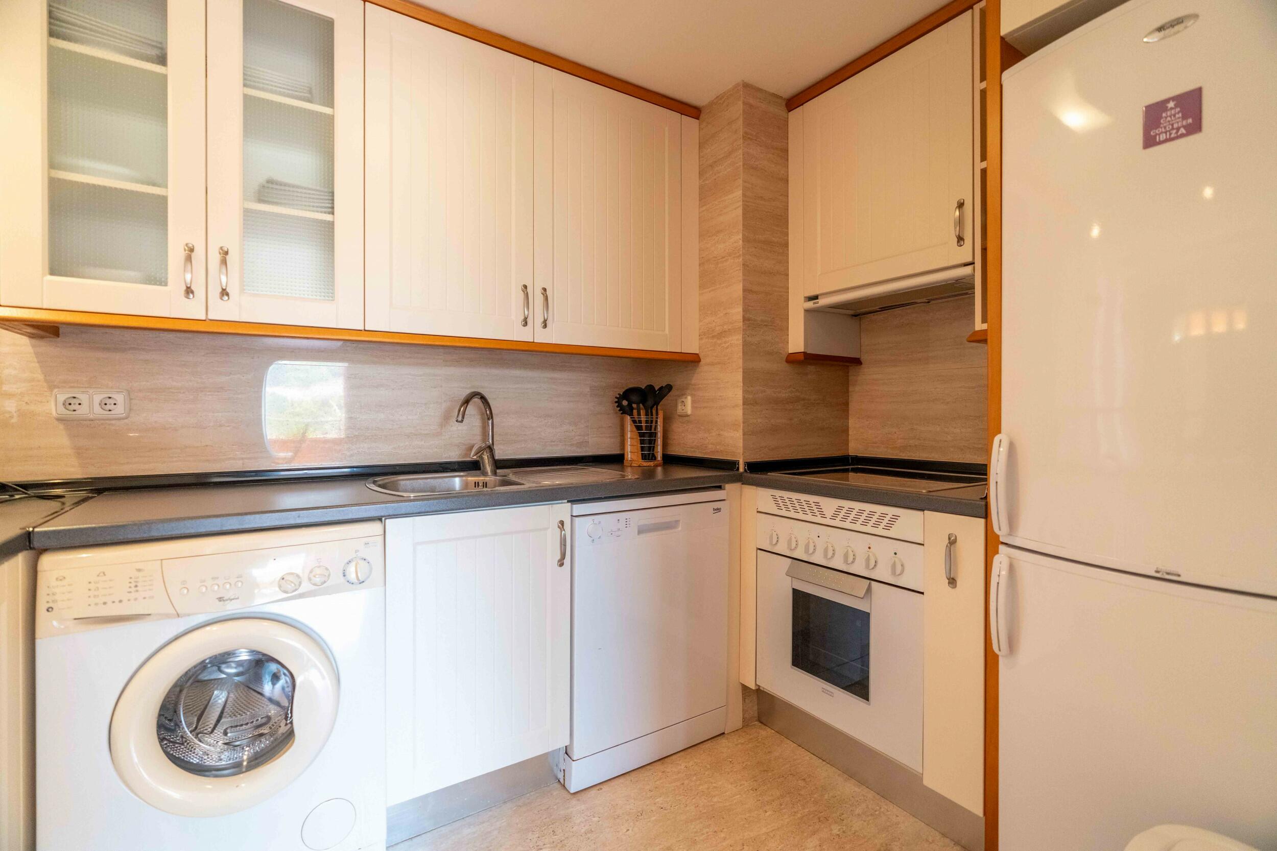 Situado en el animado centro de Jésus, con amplias vistas al campo en la parte trasera y vistas a la lujosa urbanización Can Rimbau en la parte delantera. A pocos minutos a pie se encuentran restaurantes, bares, un supermercado y un gimnasio. La bahía de Talamanca está a solo 5-10 minutos a pie, donde se puede disfrutar de restaurantes abiertos todo el año y vistas a un mar turquesa y cristalino. Este apartamento garantiza paz y privacidad en una ubicación privilegiada.