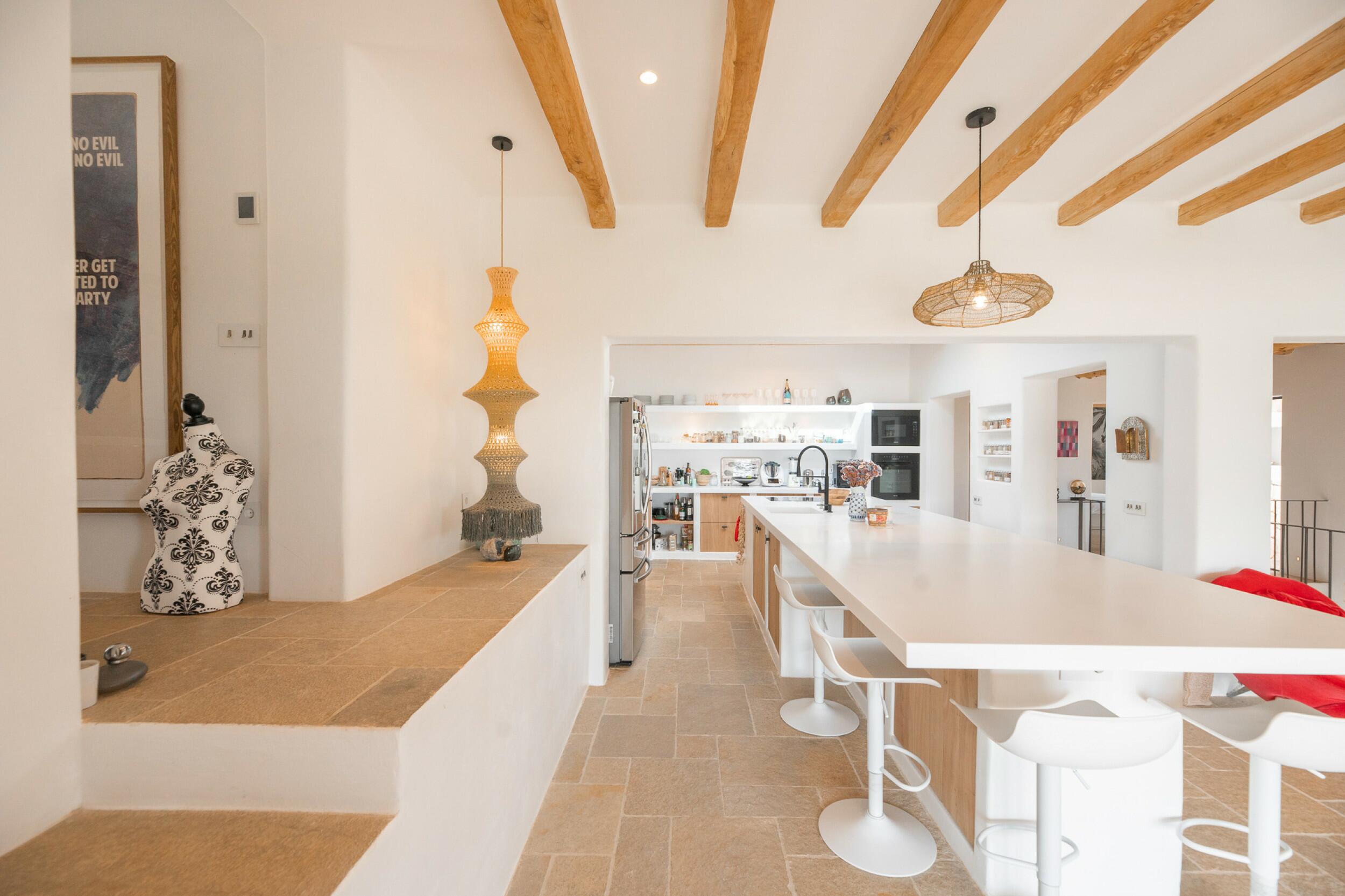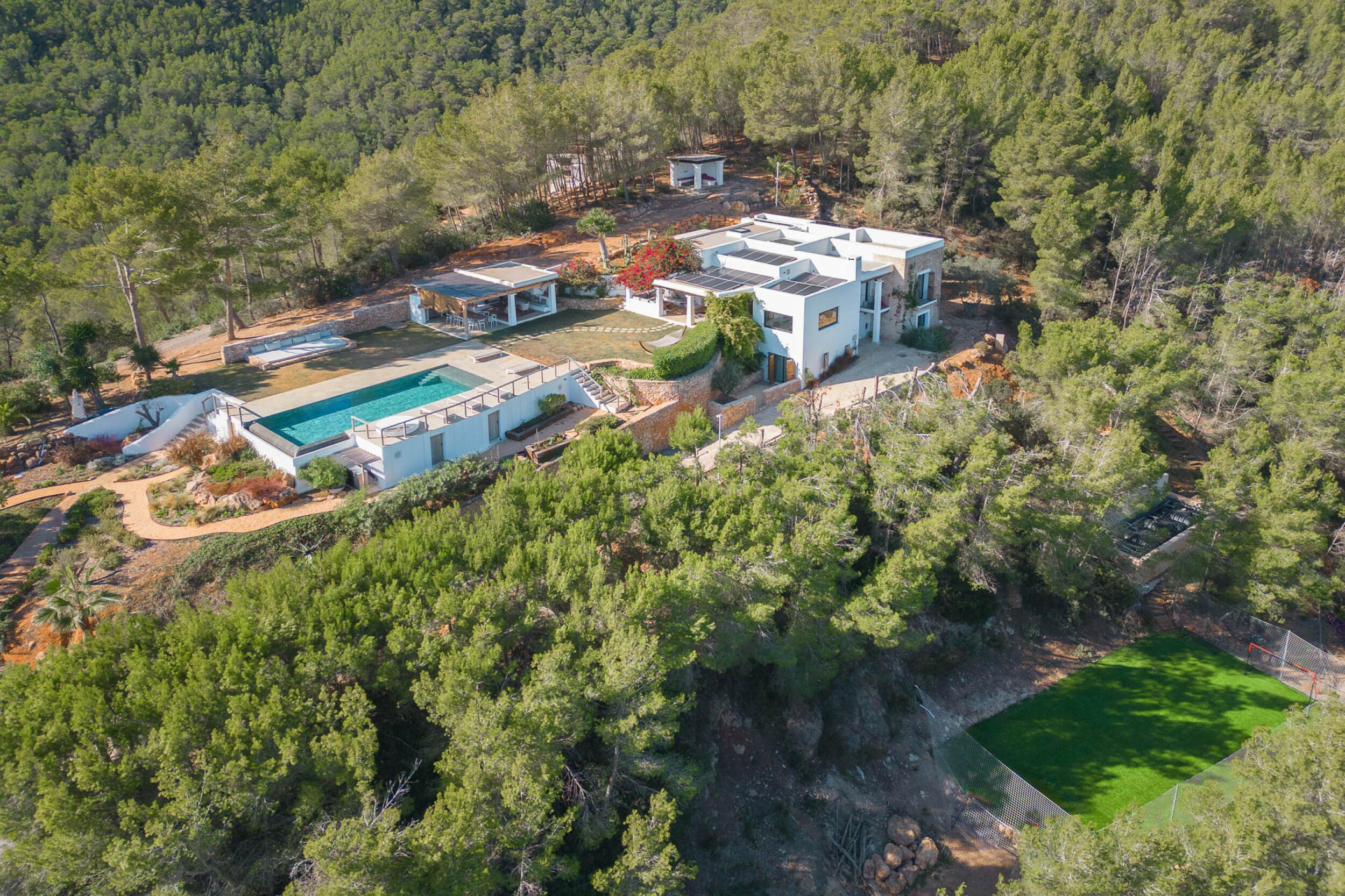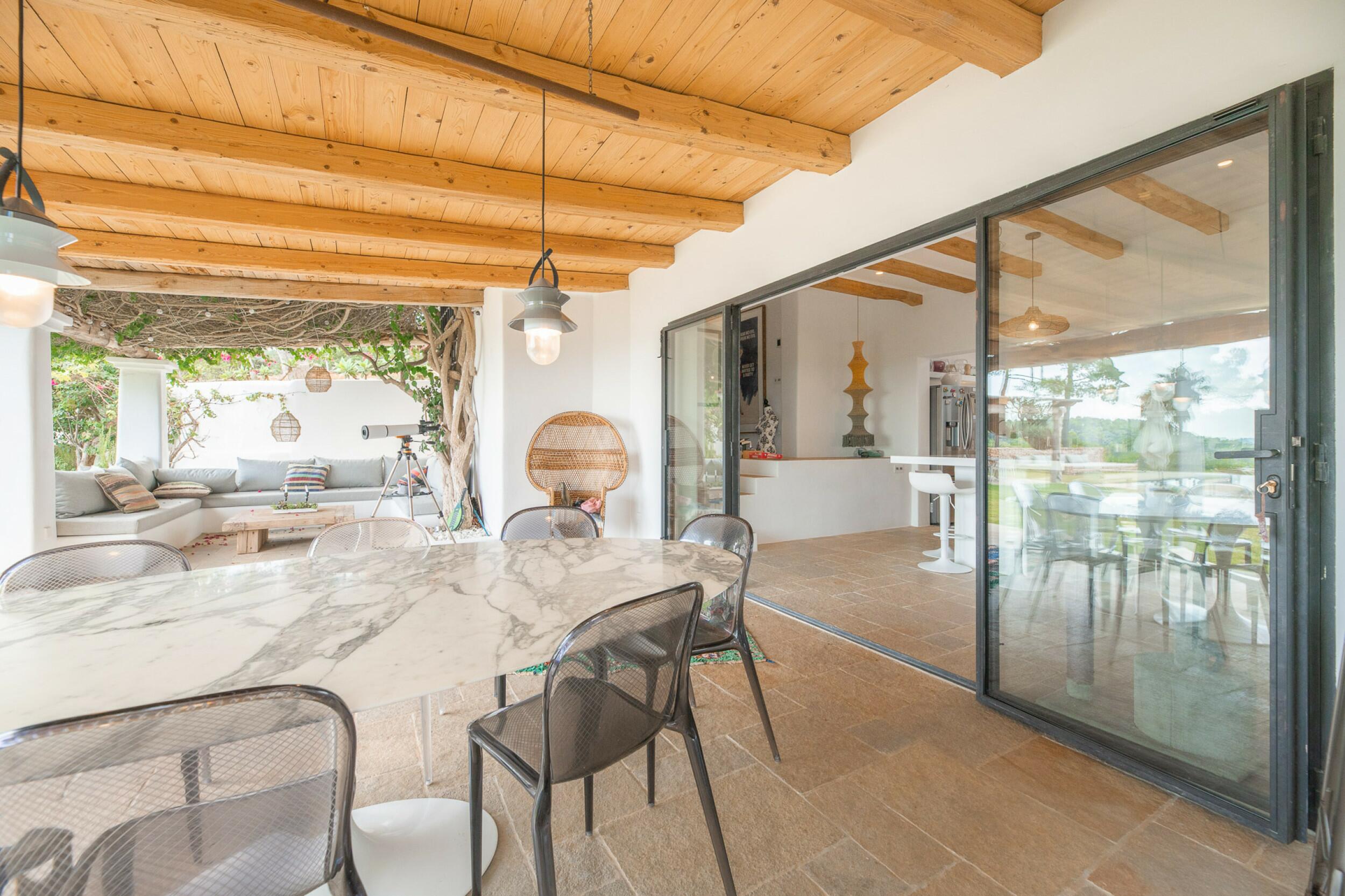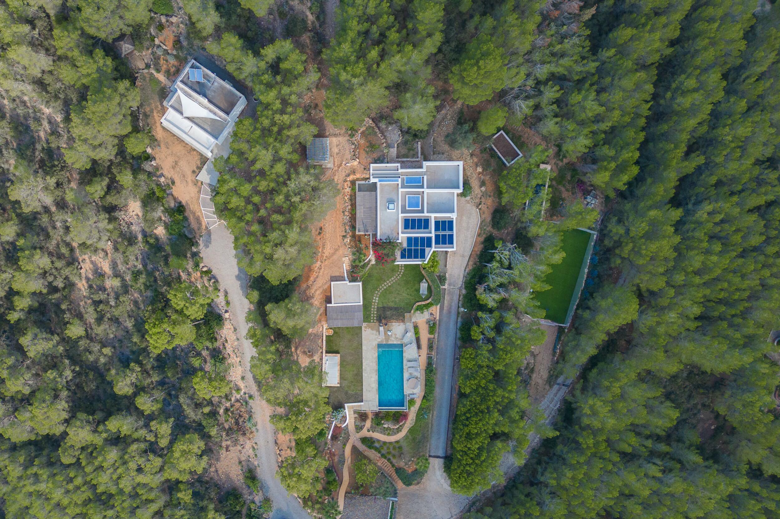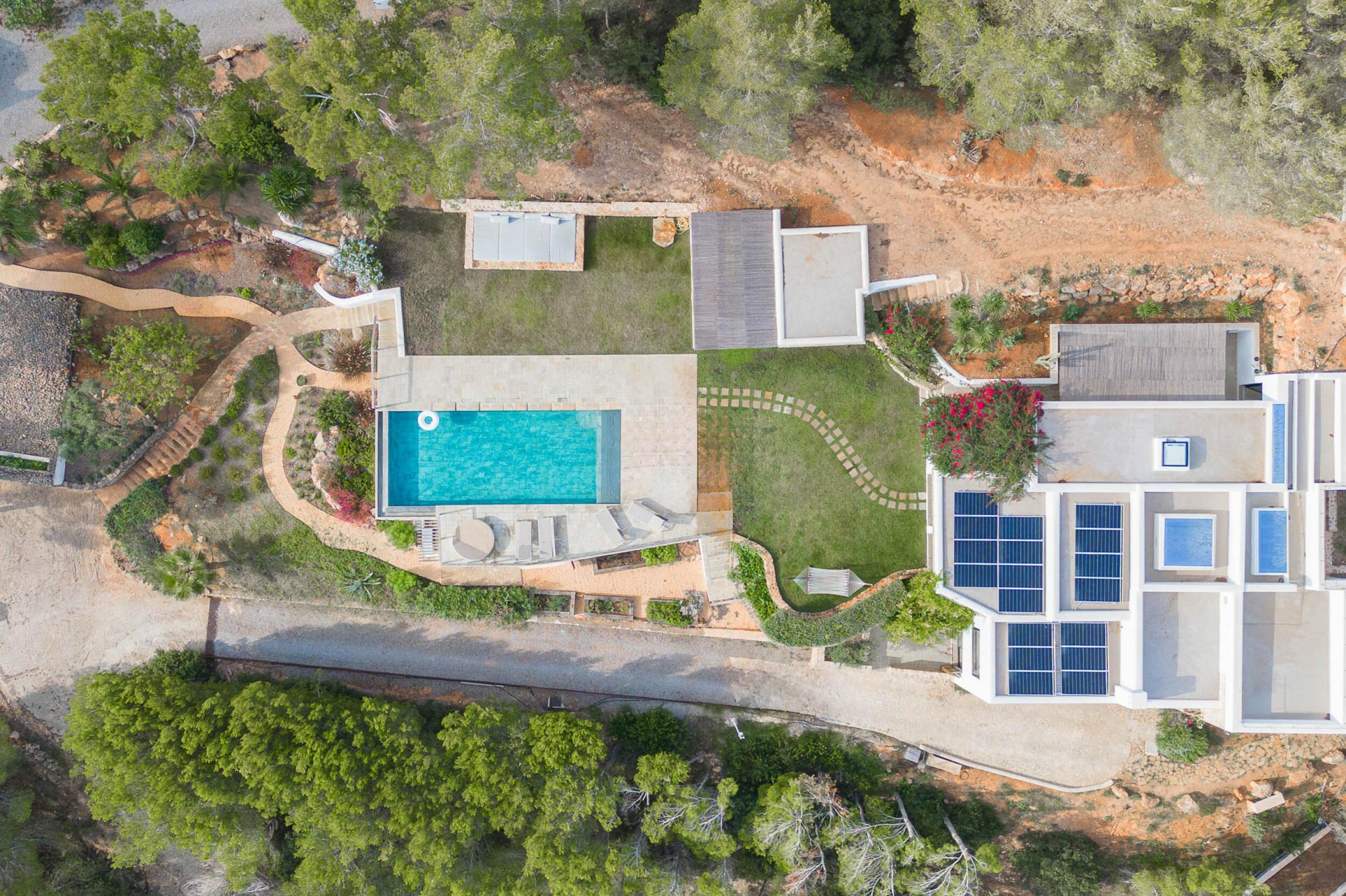 Ubicada a menos de 15 minutos de la ciudad de Ibiza y Marina Botafoch, y a unos 25 minutos del aeropuerto. Las playas más cercanas incluyen la Bahía de Talamanca, S'Estanyol y Cala Olivera. El campo de golf de Ibiza está a 20 minutos, y la escuela internacional Morna se encuentra a menos de 15 minutos. La villa está orientada al sur, con impresionantes vistas al campo y vistas al mar a lo lejos hacia Dalt Vila desde el nivel superior y de la azotea.