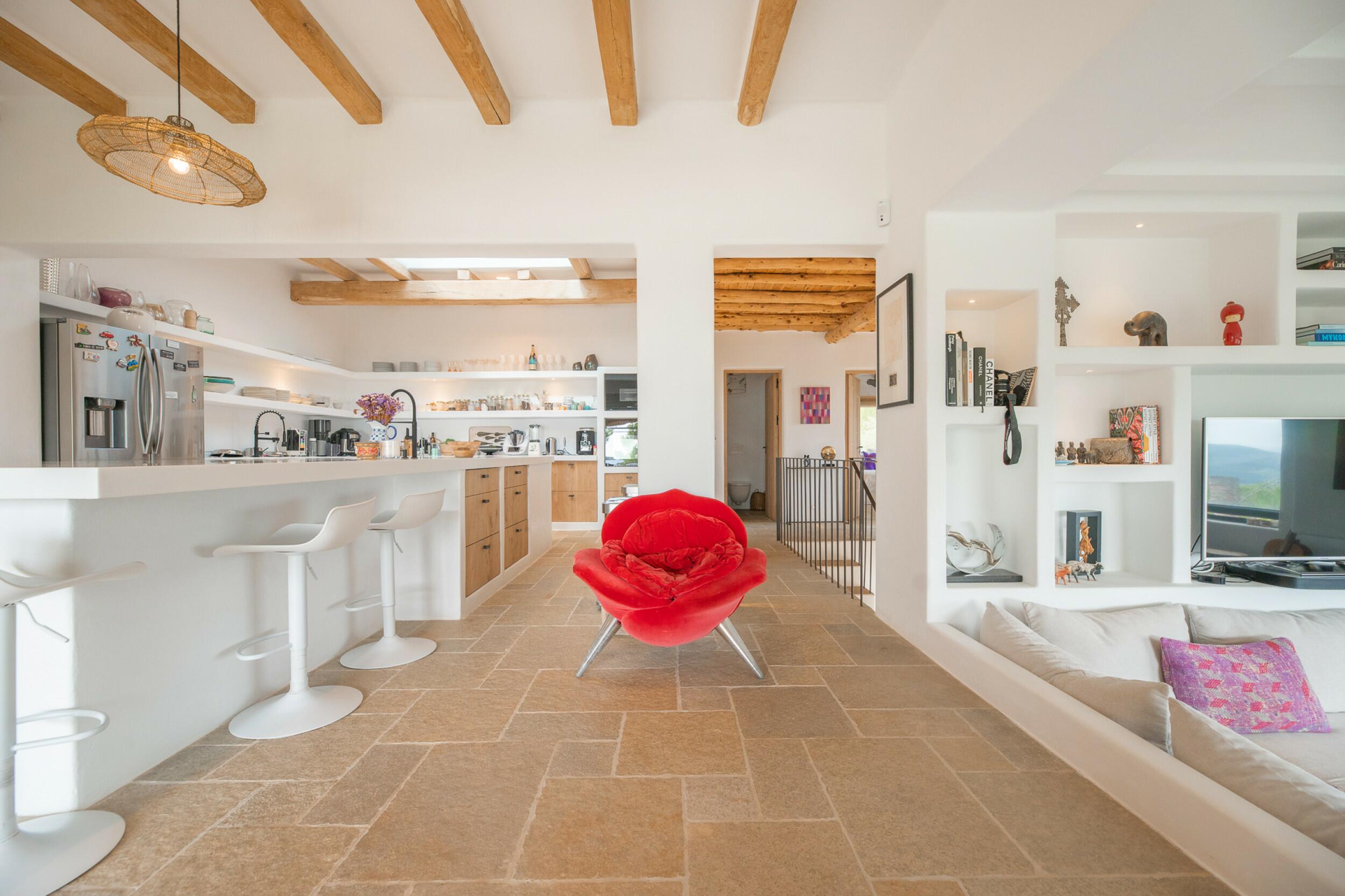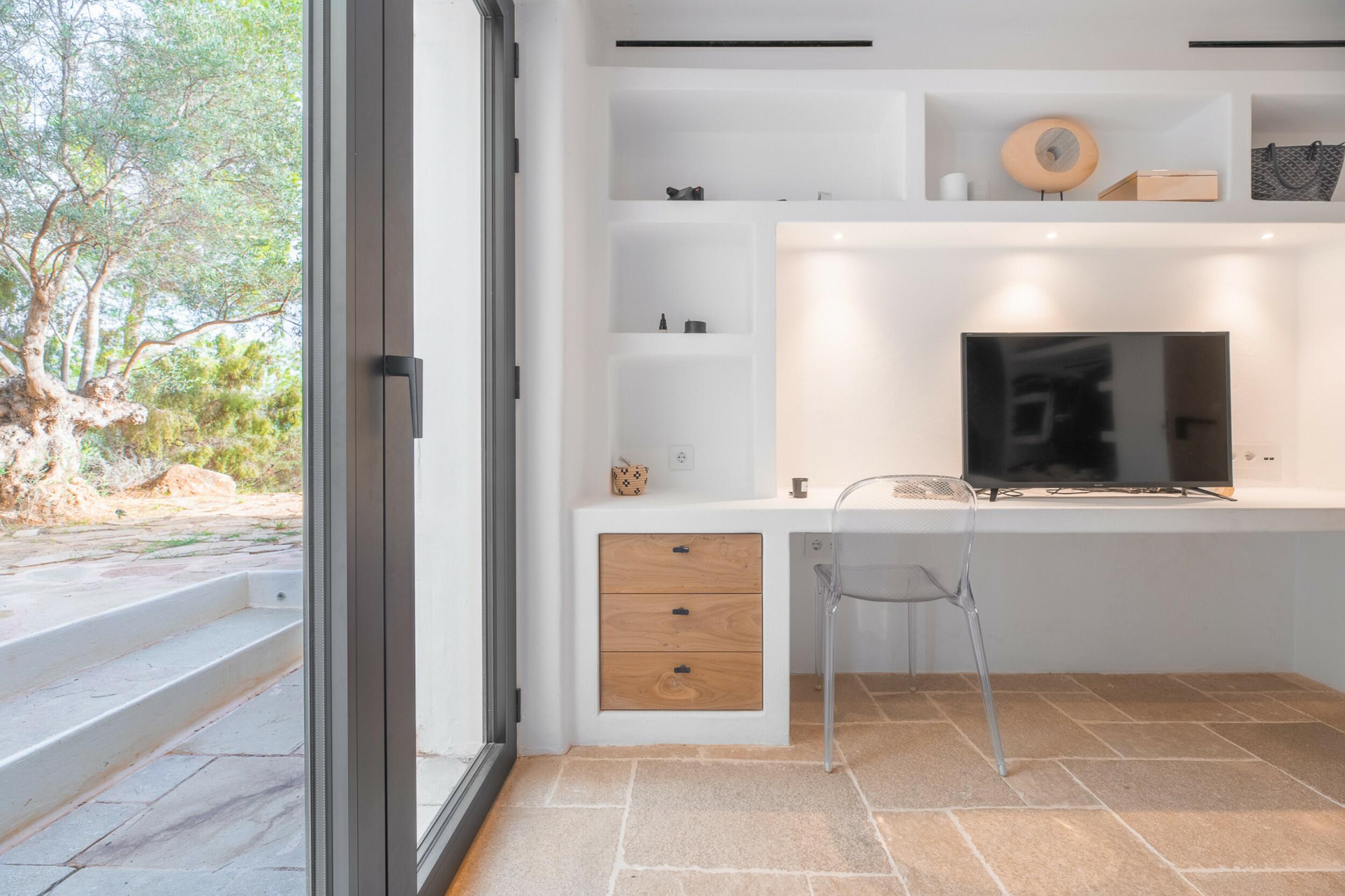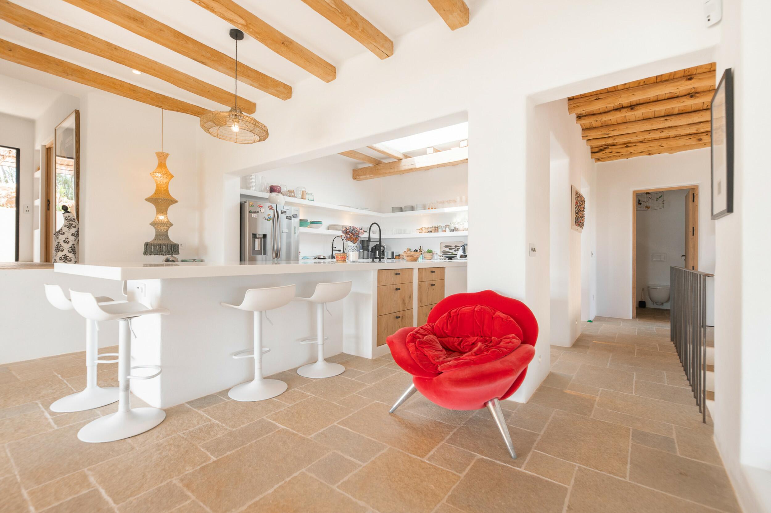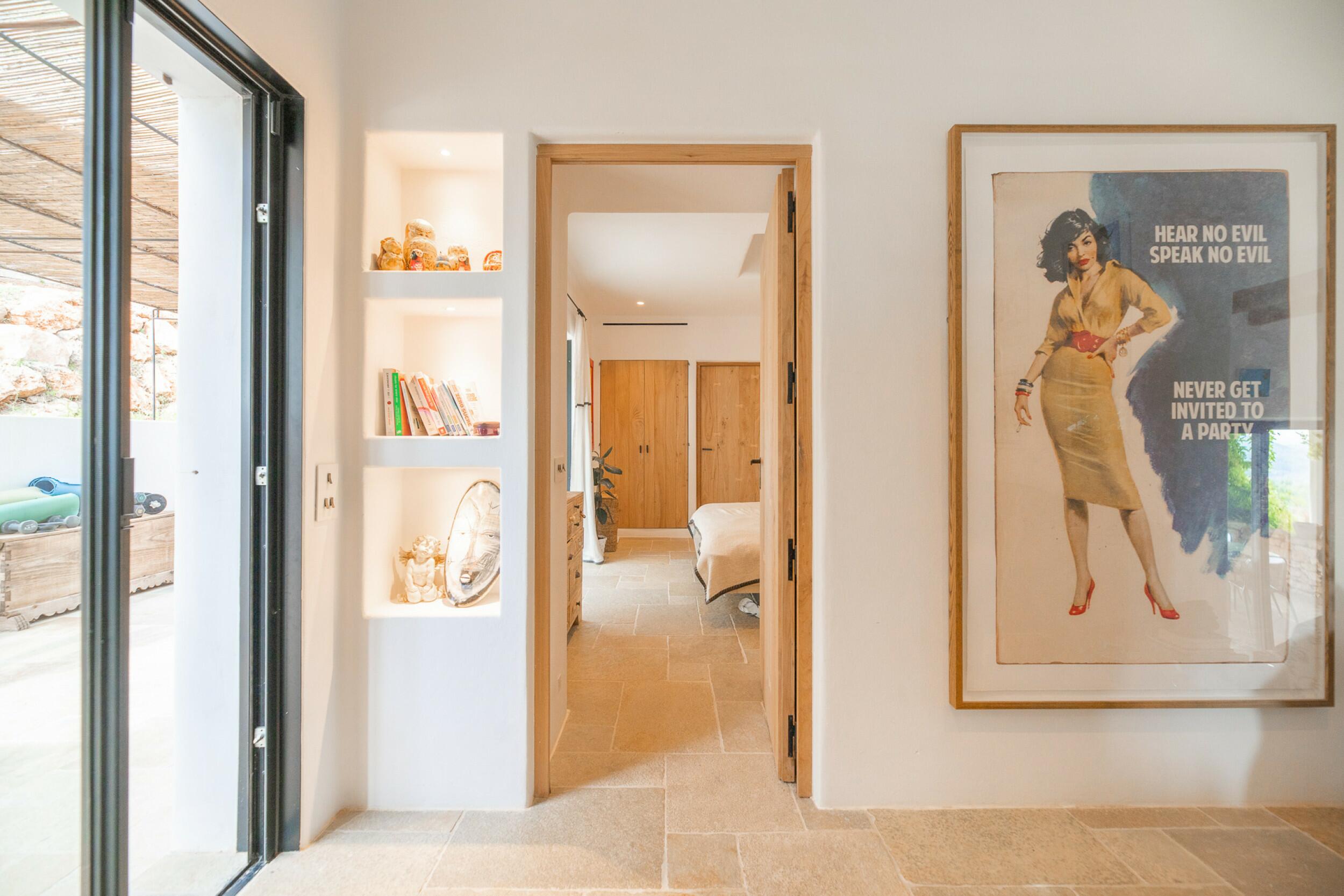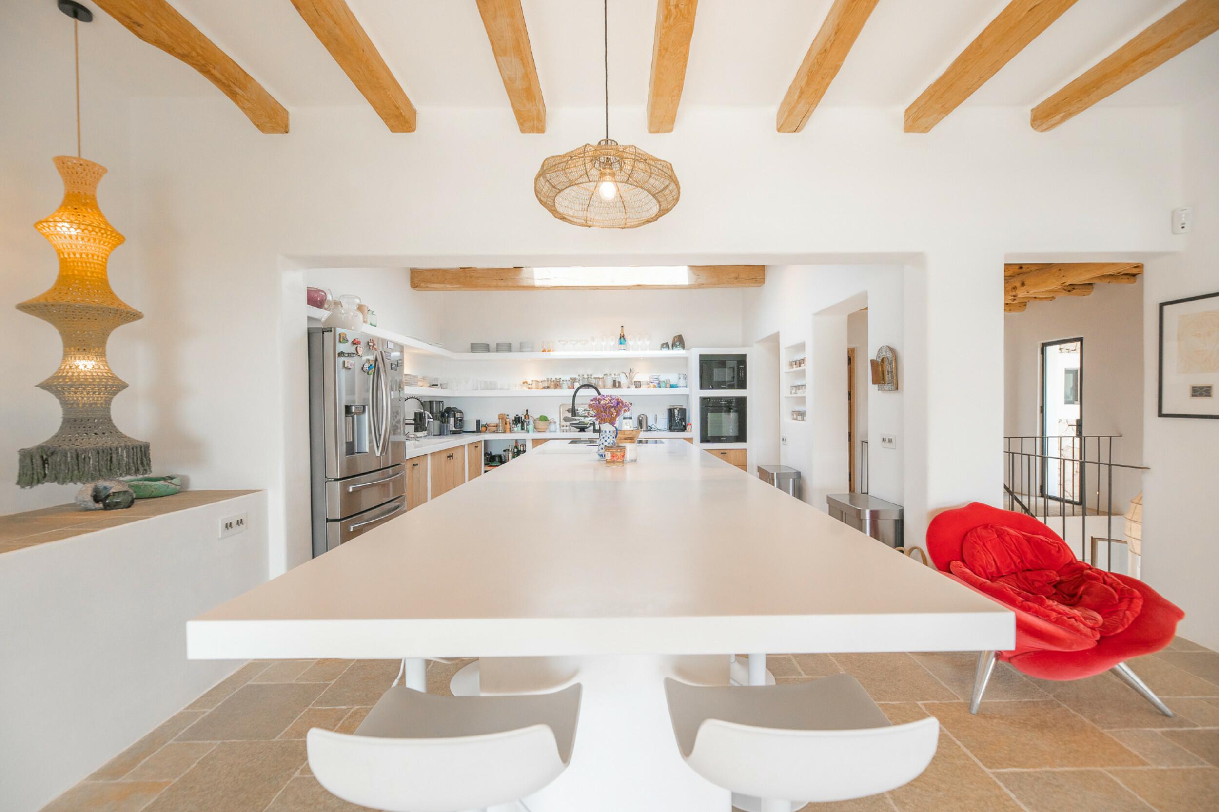 Ubicada a menos de 15 minutos de la ciudad de Ibiza y Marina Botafoch, y a unos 25 minutos del aeropuerto. Las playas más cercanas incluyen la Bahía de Talamanca, S'Estanyol y Cala Olivera. El campo de golf de Ibiza está a 20 minutos, y la escuela internacional Morna se encuentra a menos de 15 minutos. La villa está orientada al sur, con impresionantes vistas al campo y vistas al mar a lo lejos hacia Dalt Vila desde el nivel superior y de la azotea.