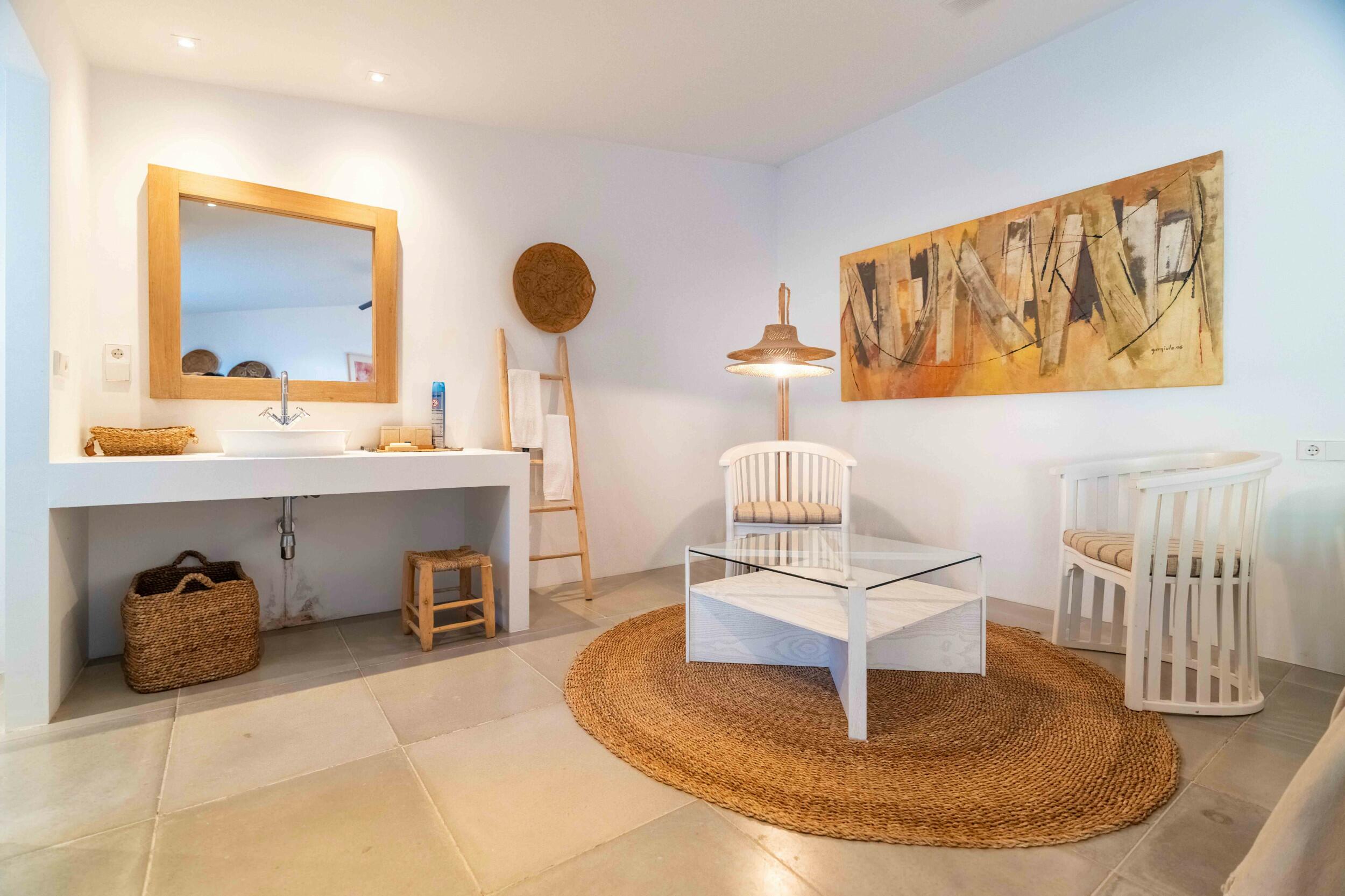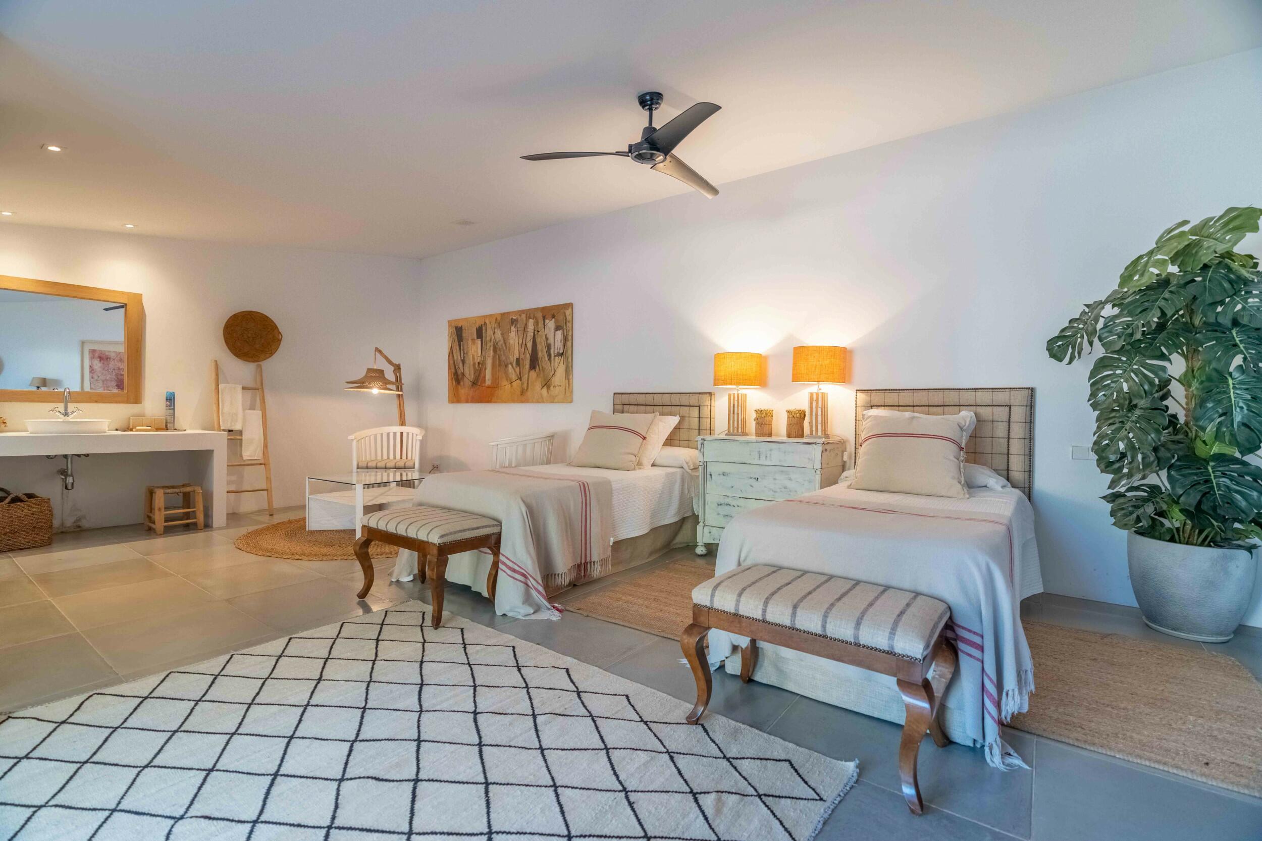 "Finca Golf" es el retiro ideal para aquellos que buscan un estilo de vida ibicenco auténtico y tranquilo, con proximidad a hermosas playas, buena gastronomía y tiendas boutique. Su ubicación inmejorable, a solo pasos de los fairways del Club de Golf de Ibiza, la convierte en una verdadera joya para los amantes del golf. Ya sea que seas un jugador ávido o recibas invitados, el entorno es perfectamente adecuado para entusiastas internacionales del golf. Gracias a su licencia de alquiler válida, la propiedad también es una excelente opción para organizar retiros de golf, talleres de negocios o eventos de creación de equipos que combinan trabajo y ocio con lecciones de golf. La finca está meticulosamente mantenida y lista para mudarse, preservando su encanto rústico tradicional mientras ofrece todas las comodidades de la vida moderna. Ubicada en una de las ubicaciones más prestigiosas y privadas de la isla, esta finca promete un atractivo atemporal y versatilidad de estilo de vida.