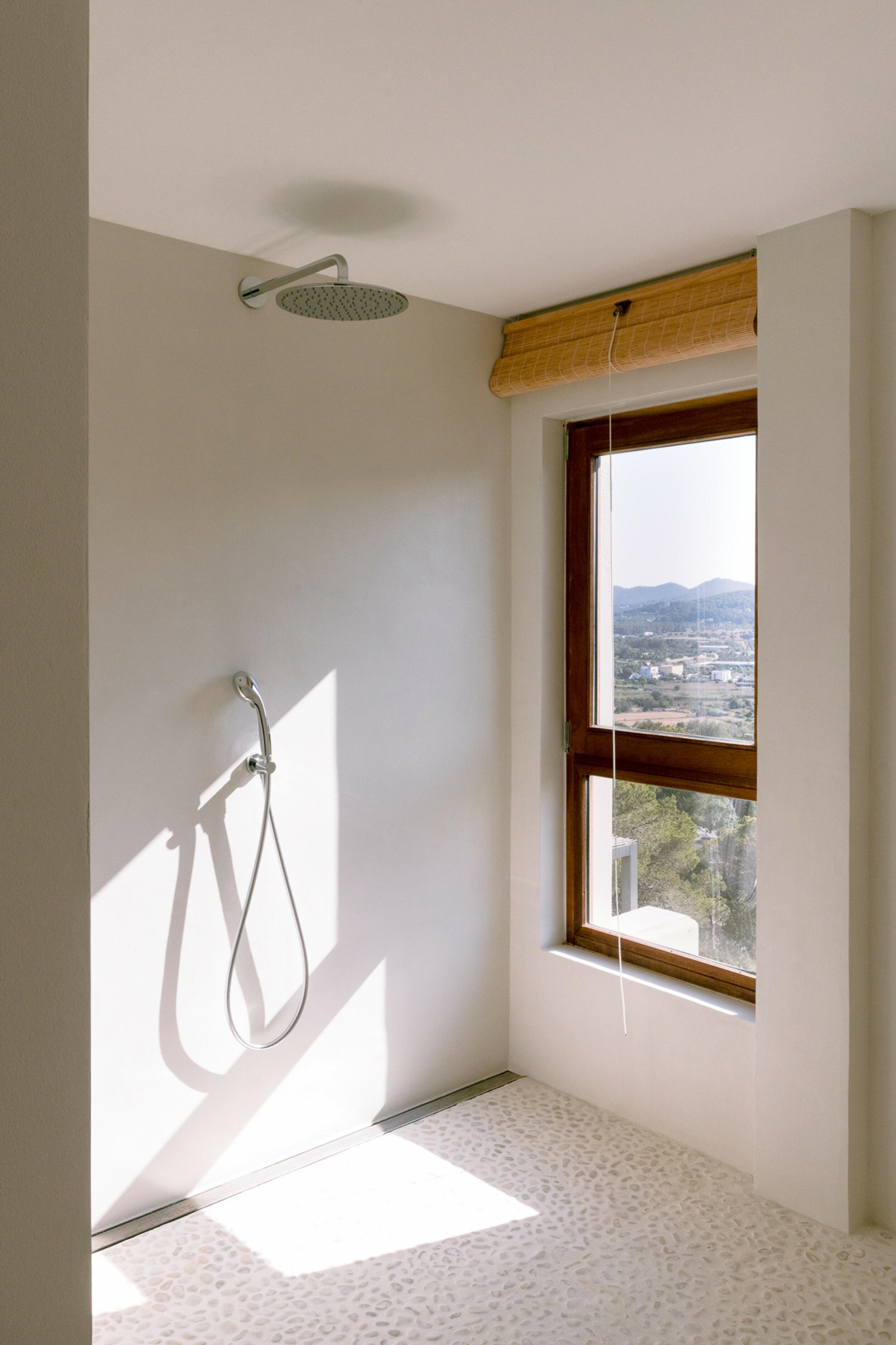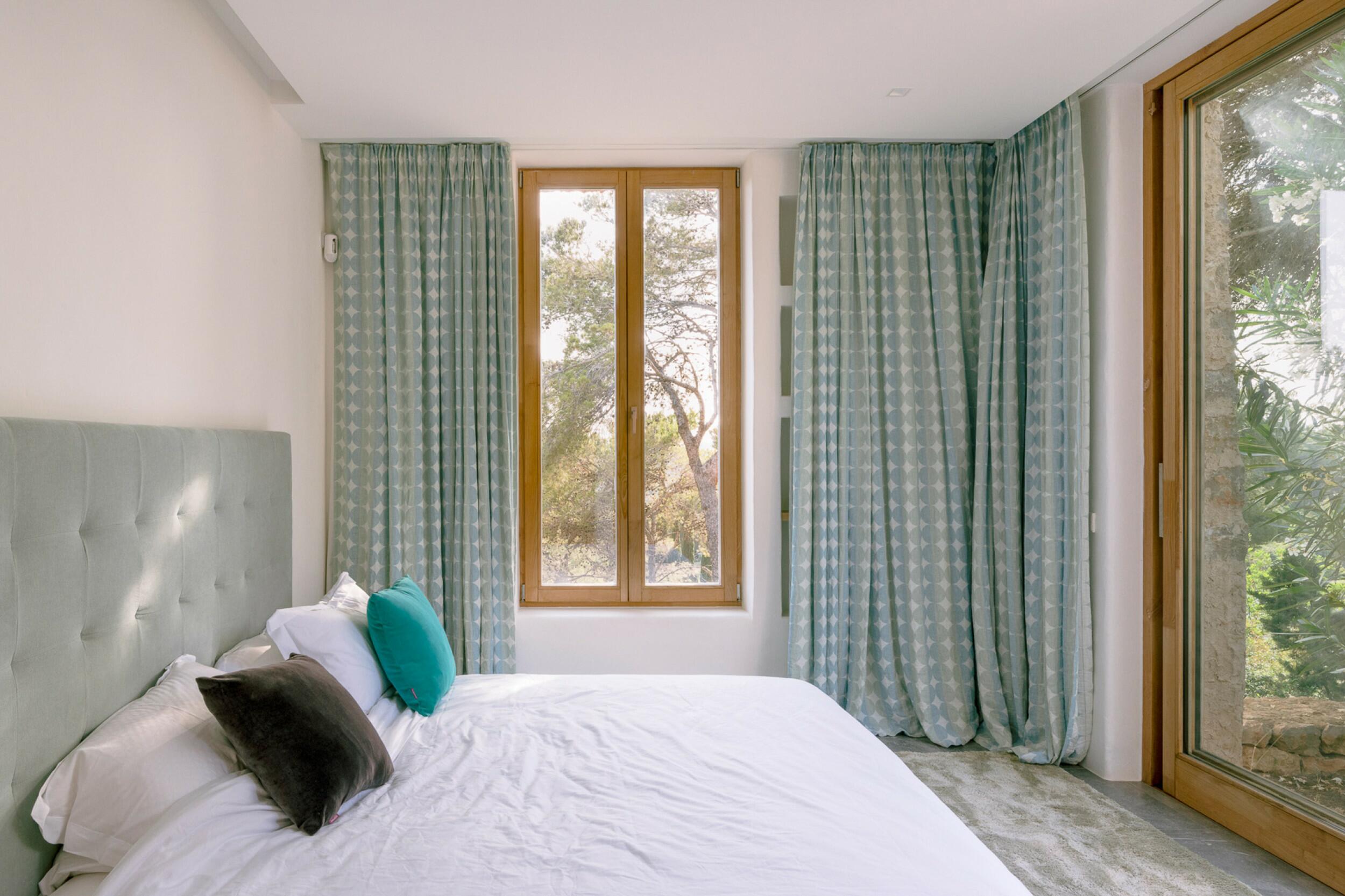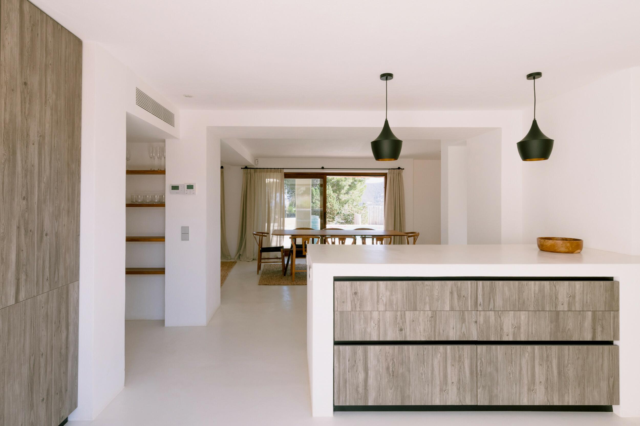 La residencia principal está diseñada cuidadosamente para crear un ambiente luminoso y ventilado en todas partes. Los techos altos y las paredes gruesas contribuyen a un interior naturalmente fresco y cómodo. La casa cuenta con cuatro amplios dormitorios en suite, cada uno con vestidores y almacenamiento integrado. El corazón del hogar es la sala de estar y comedor de doble altura, ideal para entretenerse o disfrutar de momentos familiares relajados. Una cocina principal completamente equipada está respaldada por una cocina exterior separada, perfecta para organizar reuniones bajo el cielo ibicenco. La finca también incluye una casa de huéspedes separada con tres dormitorios adicionales en suite, asegurando privacidad para los visitantes. Un discreto anexo para el personal proporciona alojamiento para apoyar eficientemente las operaciones de la finca.