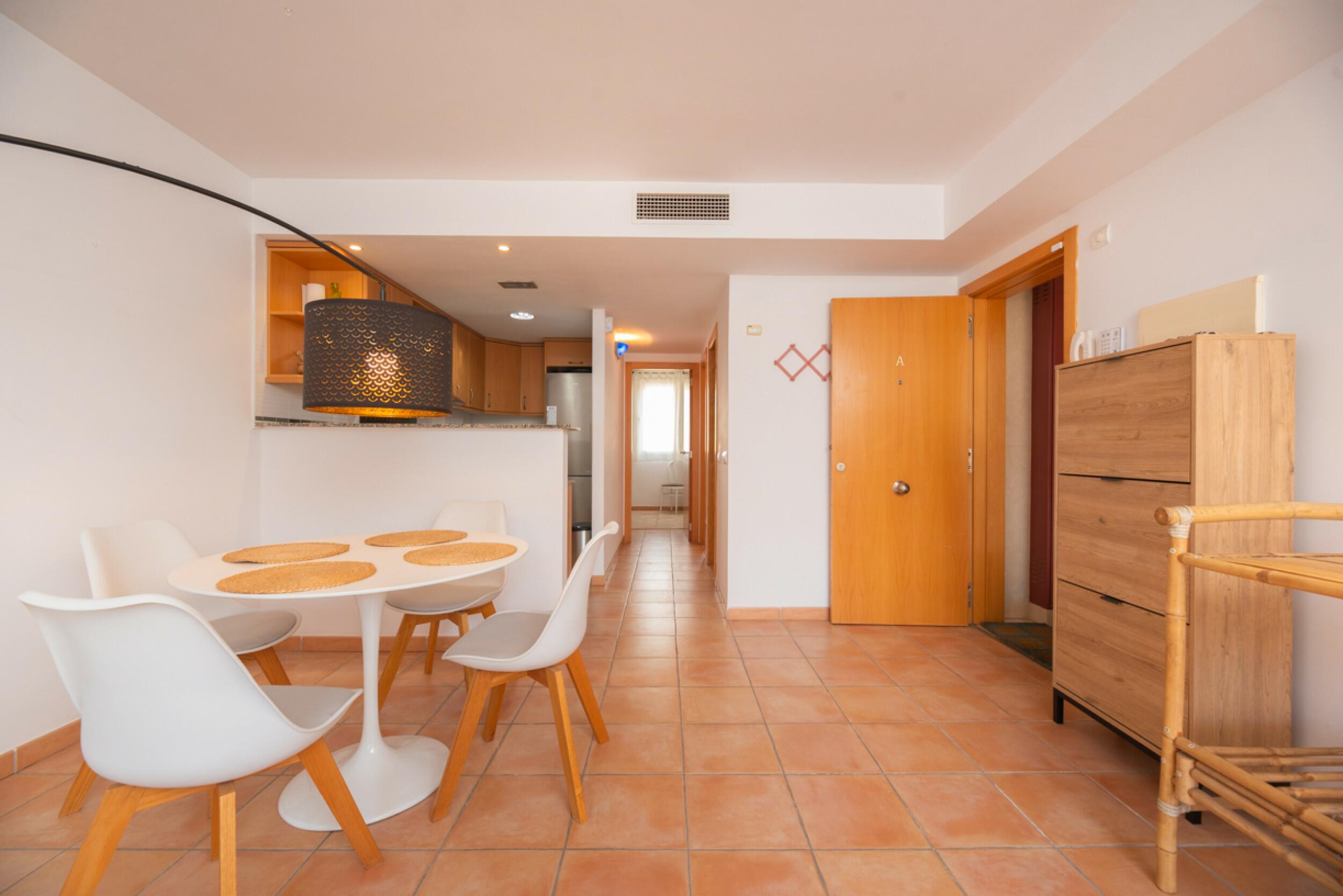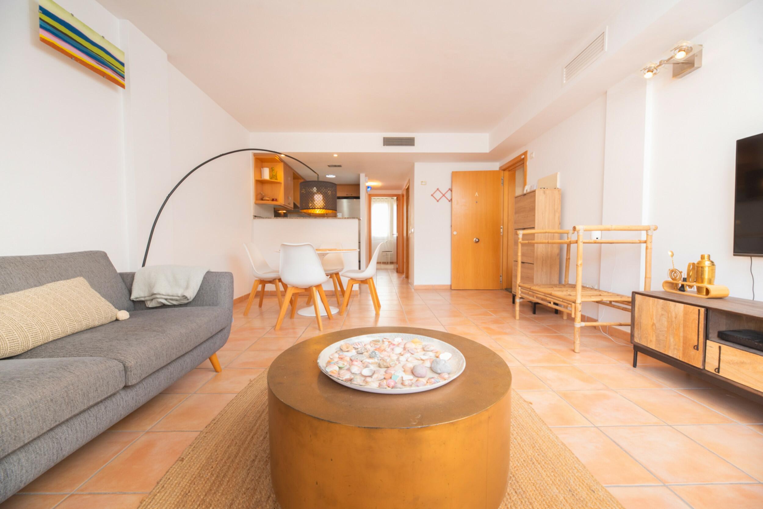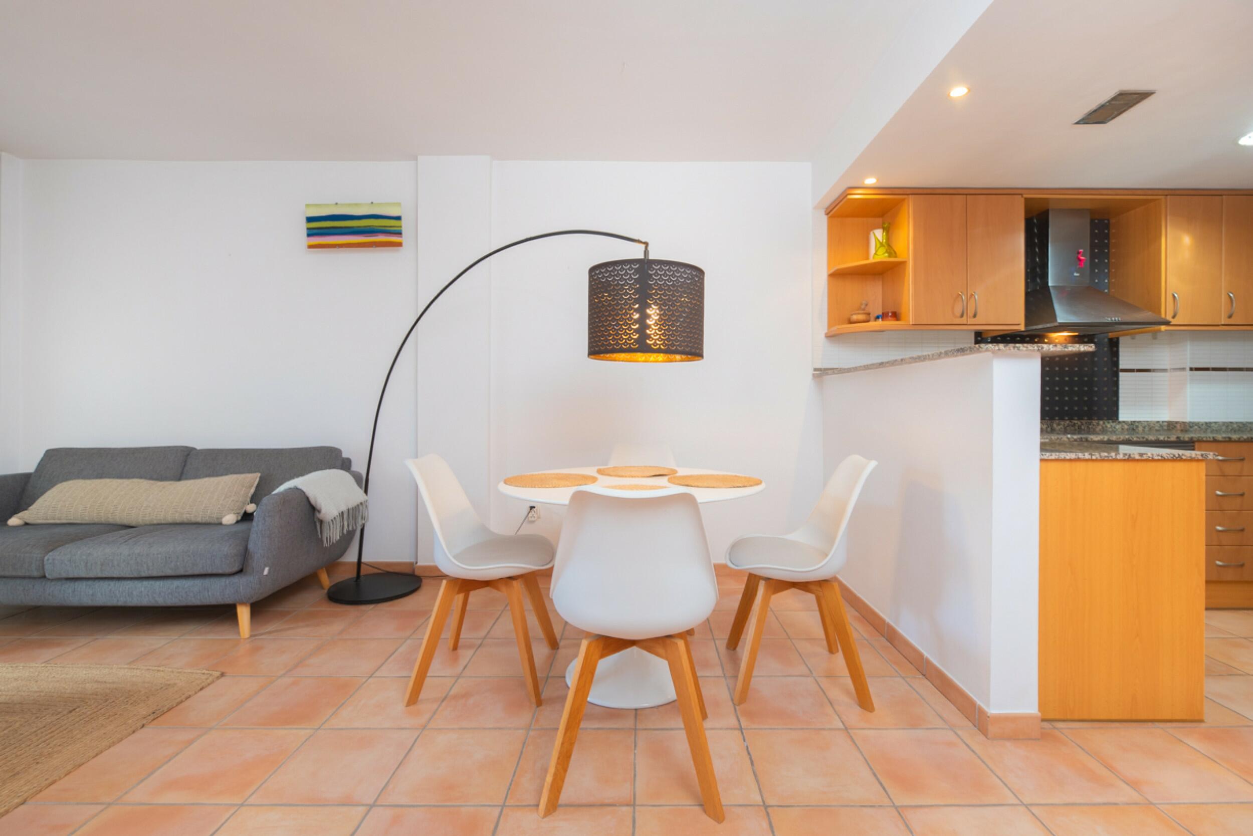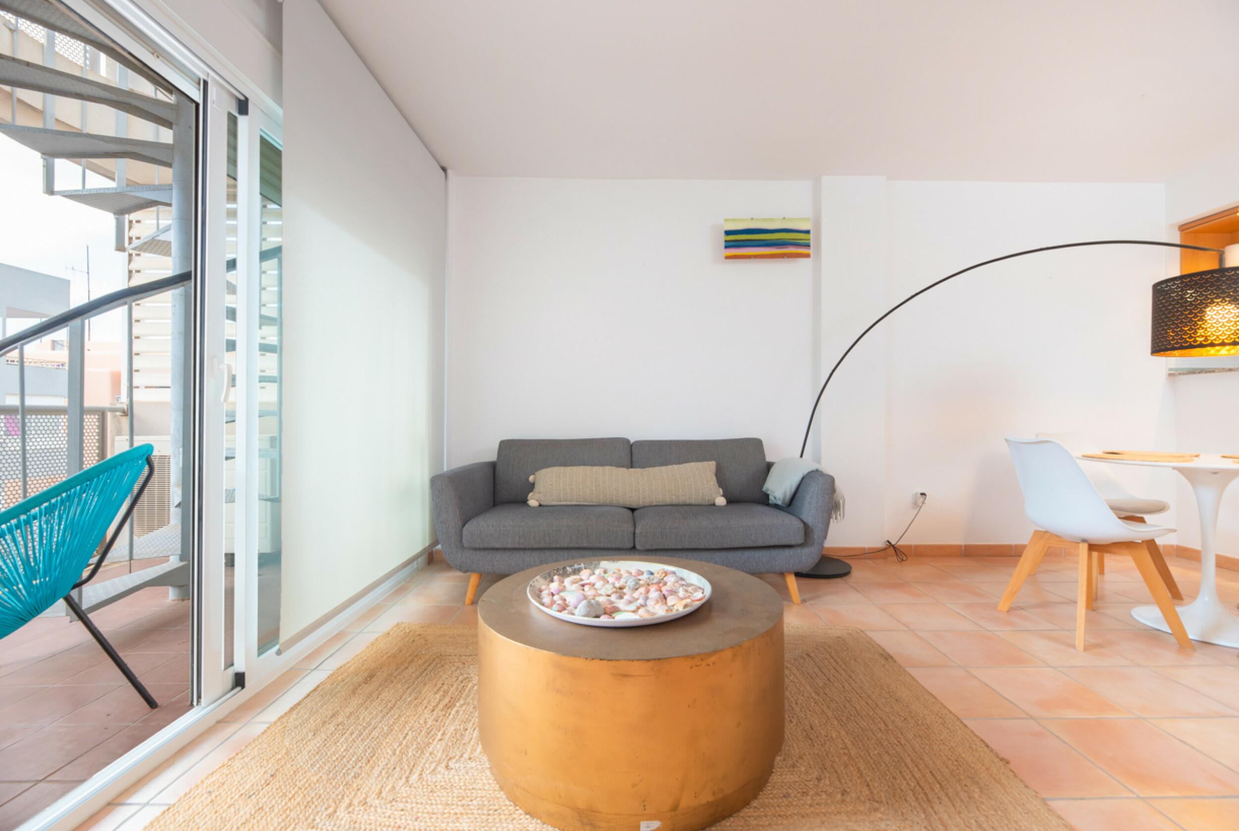 Expuesto al sur, el apartamento goza de una insolación constante, y su ubicación ideal permite acceder fácilmente a las playas como Talamanca, al aeropuerto o a las tiendas, restaurantes y servicios del centro histórico.