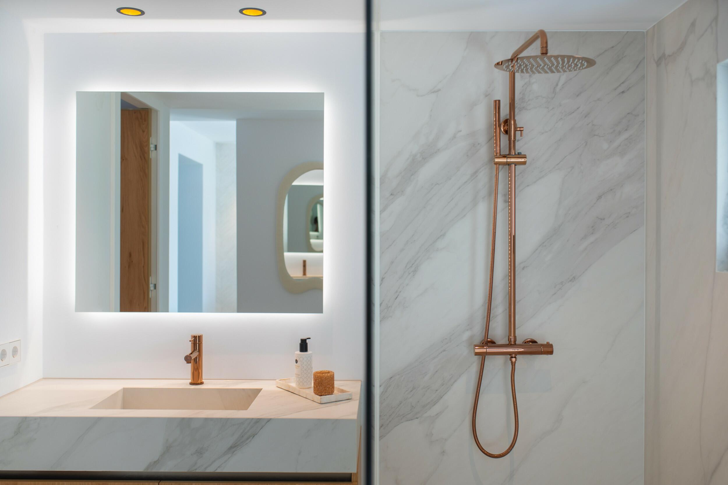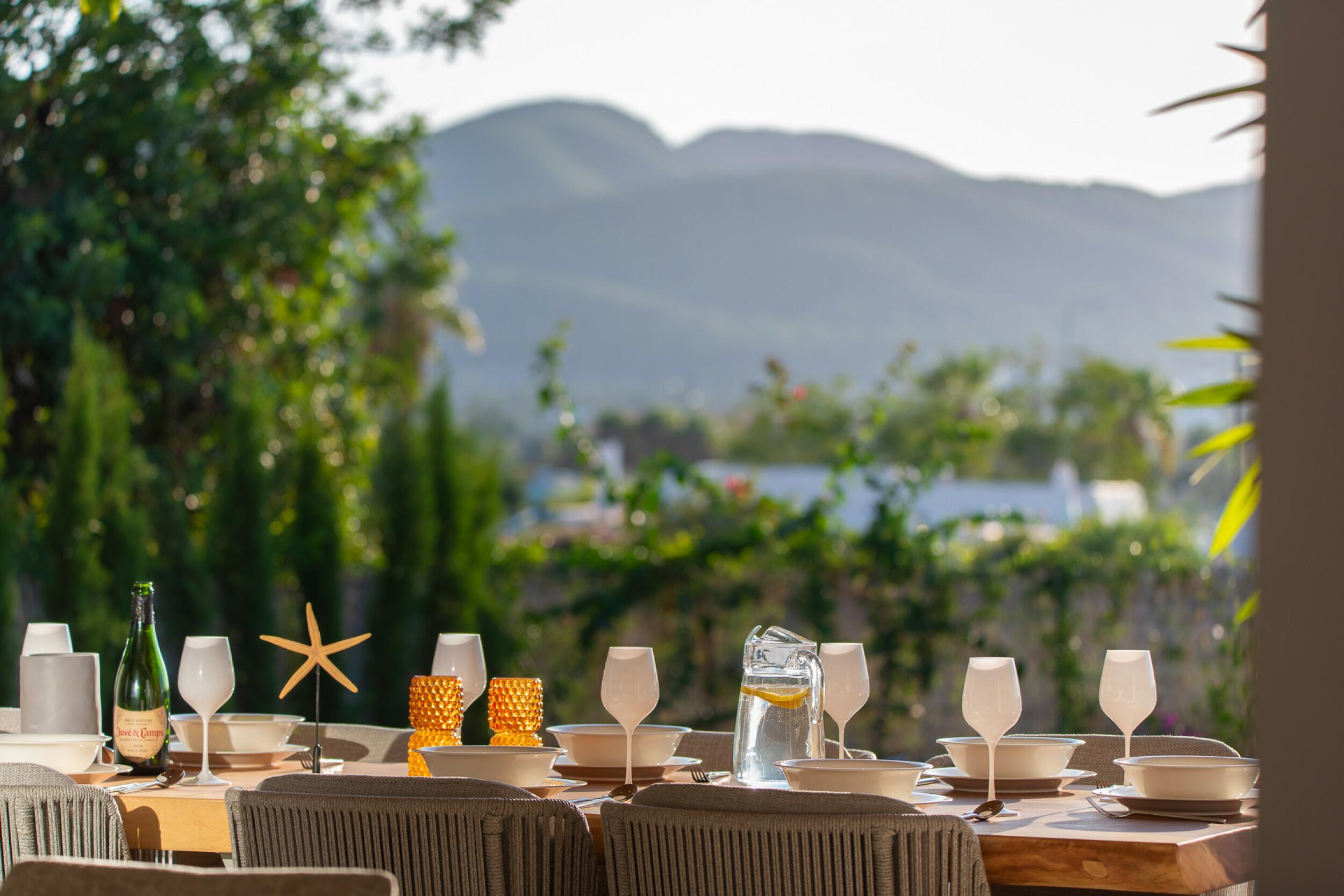 Rodeados de un vibrante paisaje mediterráneo, los espacios exteriores están diseñados para el ocio y la vida al aire libre. Los jardines están adornados con vegetación madura, una fuente de Buda y rincones tranquilos para relajarse. Una piscina con luces que cambian de color crea un ambiente mágico por la noche, complementado por un área chill-out de estilo balinés, una cocina al aire libre y un espacio de comedor sombreado bajo el porche. También existe la posibilidad de crear una terraza en la azotea, y la propiedad incluye un huerto privado.