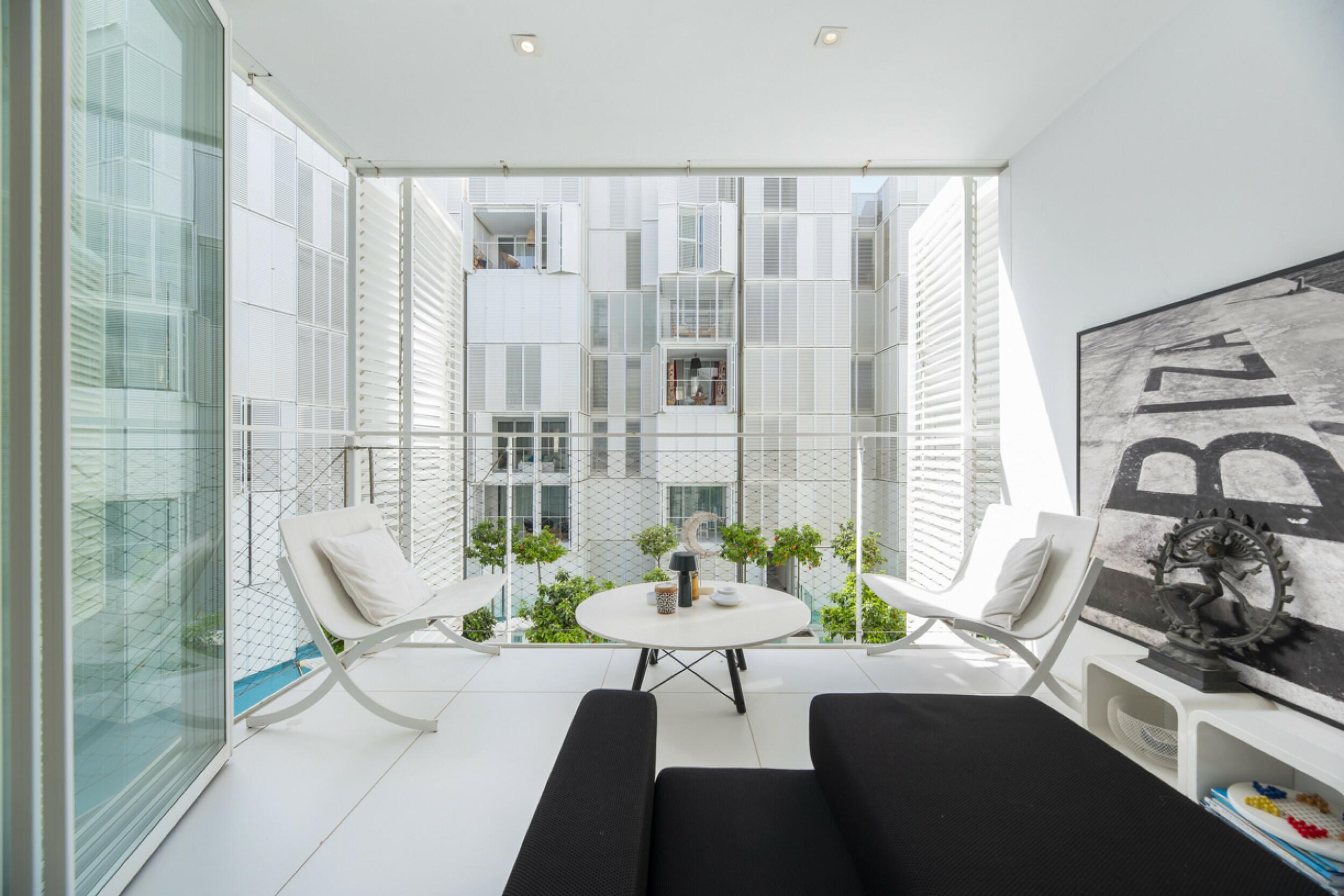 La orientación y diseño de los apartamentos maximizan las espectaculares vistas de la icónica Dalt Vila de Ibiza, el mar azul y las pintorescas montañas. Cada residencia está cuidadosamente posicionada para capturar abundante luz solar y brisas isleñas, asegurando confort y tranquilidad durante todo el día.