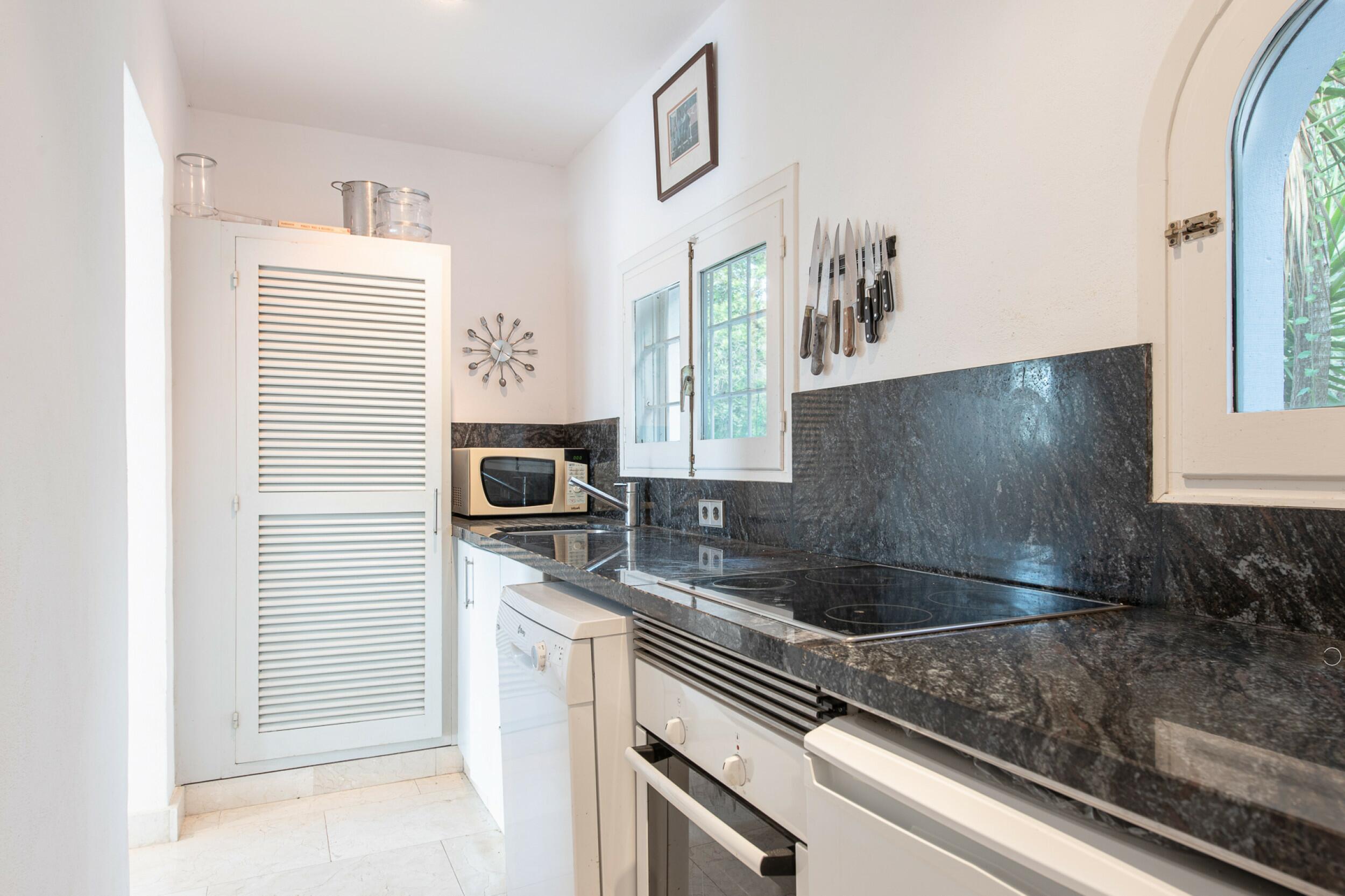La casa principal consta de dos generosos dormitorios, ambos con baños en suite. La suite principal incluye un baño al aire libre aislado con una bañera independiente y ducha exterior, un escape idílico en la isla. El interior ofrece un cálido y luminoso salón con chimenea, un sistema de calefacción central y una cocina impecablemente diseñada equipada con una placa de inducción, dos hornos (uno de los cuales es de vapor), nevera, congelador, amplios armarios y un Quooker para agua filtrada natural y con gas. Además, hay una habitación de invitados independiente con baño privado y un apartamento separado con dos dormitorios, un baño y su propia cocina, ideal para acoger o para una vida multigeneracional. Todas las áreas están climatizadas con aire acondicionado con función de calefacción, y las claraboyas aportan calidez y luz extra durante los meses más fríos.