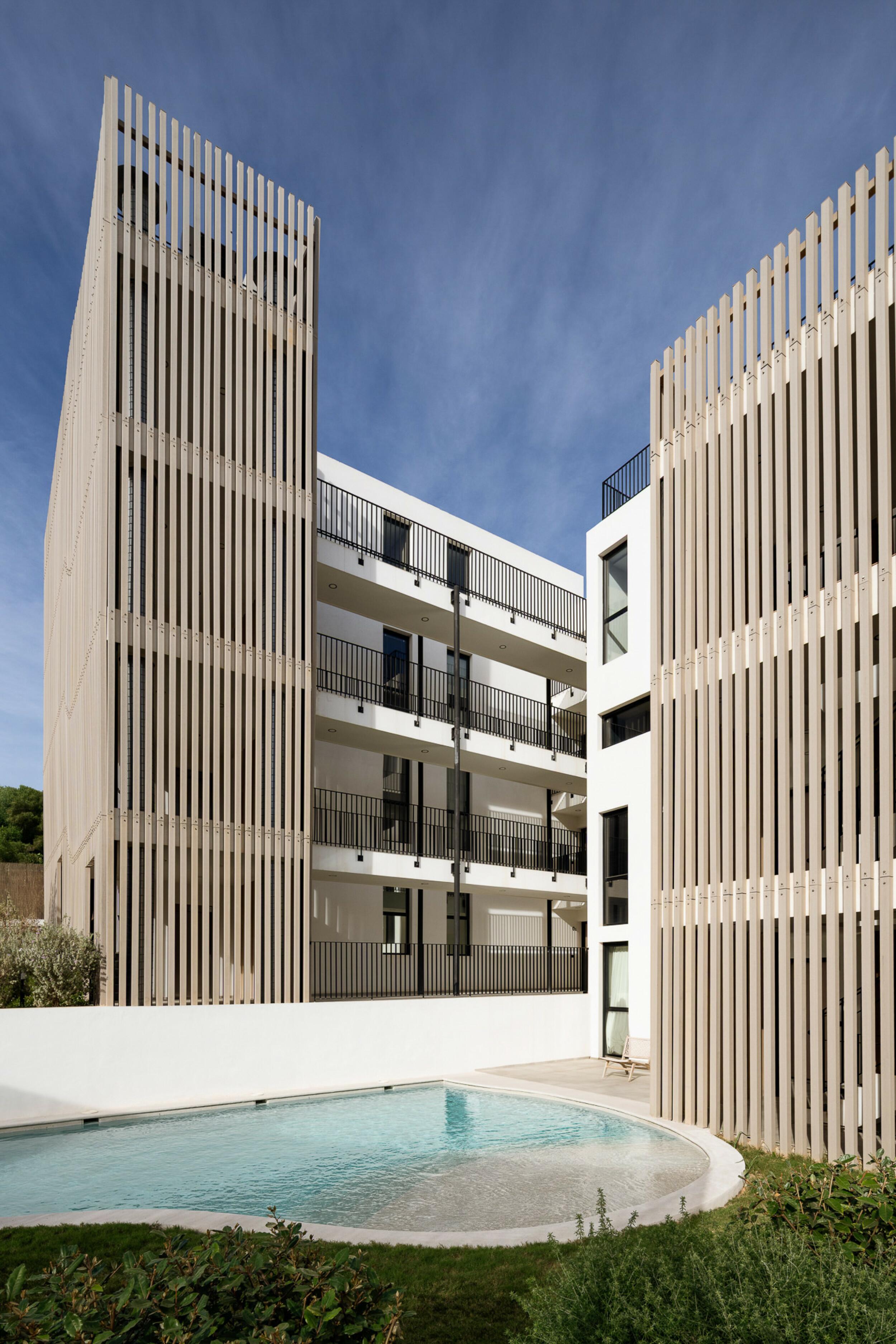 Distribuidos en dos elegantes edificios en forma de "L" elevados sobre una plataforma, los apartamentos han sido cuidadosamente diseñados para ofrecer privacidad y una circulación fluida. Existen diferentes distribuciones con dos o tres dormitorios y uno o dos baños, adaptadas tanto a parejas como a familias. Los áticos destacan especialmente por sus amplias terrazas en la azotea, ideales para disfrutar de la vida al aire libre.