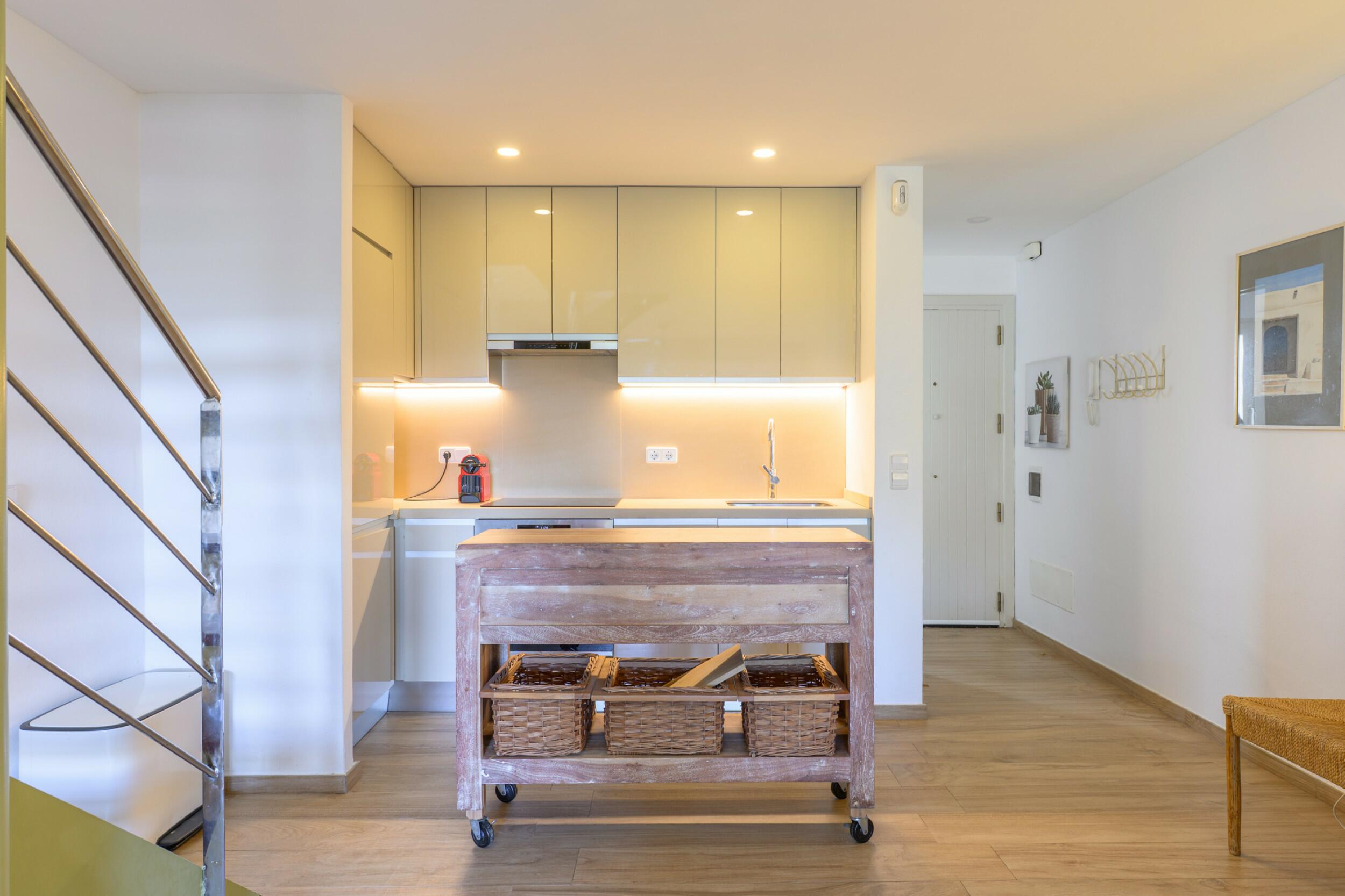 Situado en la codiciada zona de Playa d’en Bossa, el apartamento disfruta de una proximidad inmediata a la costa, la vida nocturna y servicios de estilo de vida, permaneciendo a tan solo diez minutos en coche tanto del aeropuerto como de la ciudad de Ibiza. El espacio interior y la terraza disfrutan de vistas parciales al mar, realzando la perspectiva costera de la propiedad.