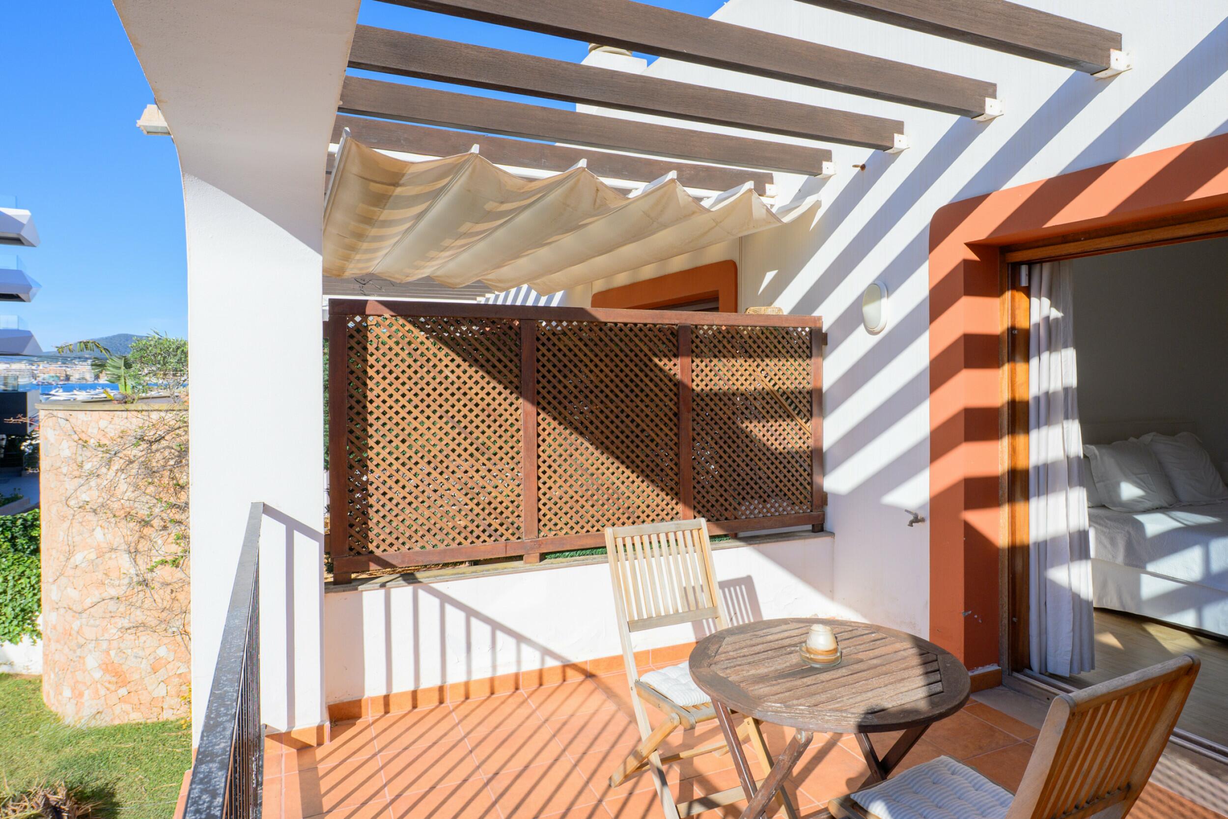 Una terraza privada de 13 m² se abre desde la zona de estar, ofreciendo vistas despejadas al mar y a la animada franja costera de Playa d’en Bossa. Las zonas comunes del edificio incluyen una amplia piscina y acceso directo a la playa, generando una atmósfera tipo resort dentro de un entorno residencial. Justo frente a la urbanización, un gimnasio de calistenia al aire libre añade un valor adicional para quienes aprecian el bienestar y el deporte al aire libre.