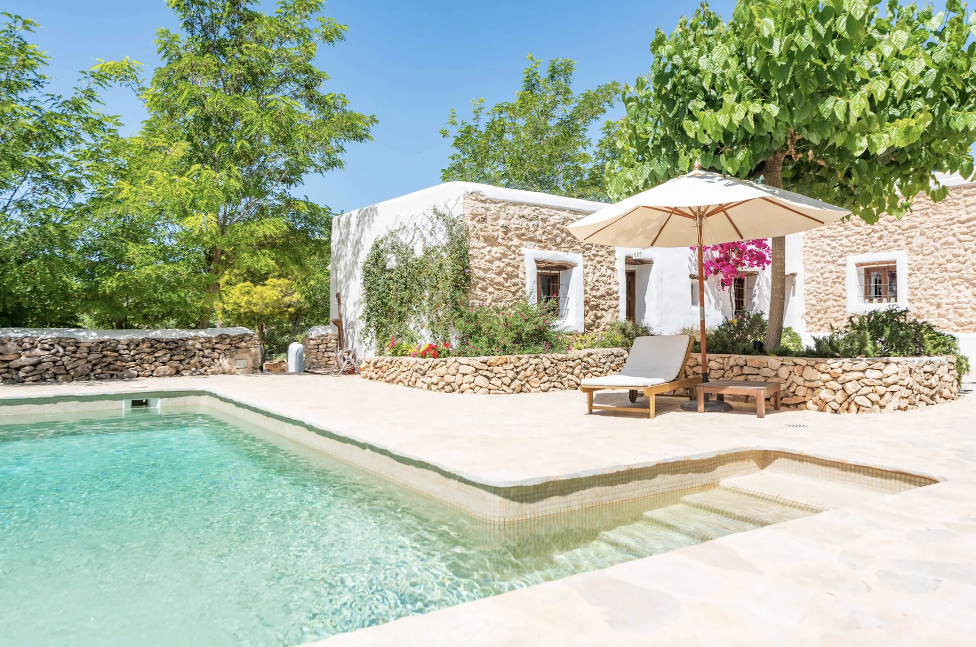 Can March, una auténtica finca recién reformada cerca de San Rafael, está rodeada de exuberantes jardines mediterráneos y ofrece una escapada serena. Esta villa de 5 dormitorios combina el encanto tradicional con las comodidades modernas, ya que todas las habitaciones tienen baño privado, aire acondicionado y una decoración de buen gusto. Con múltiples espacios al aire libre, una piscina resplandeciente y una zona de comedor a la sombra, Can March es el refugio perfecto para los ejecutivos que buscan equilibrar trabajo y relax.