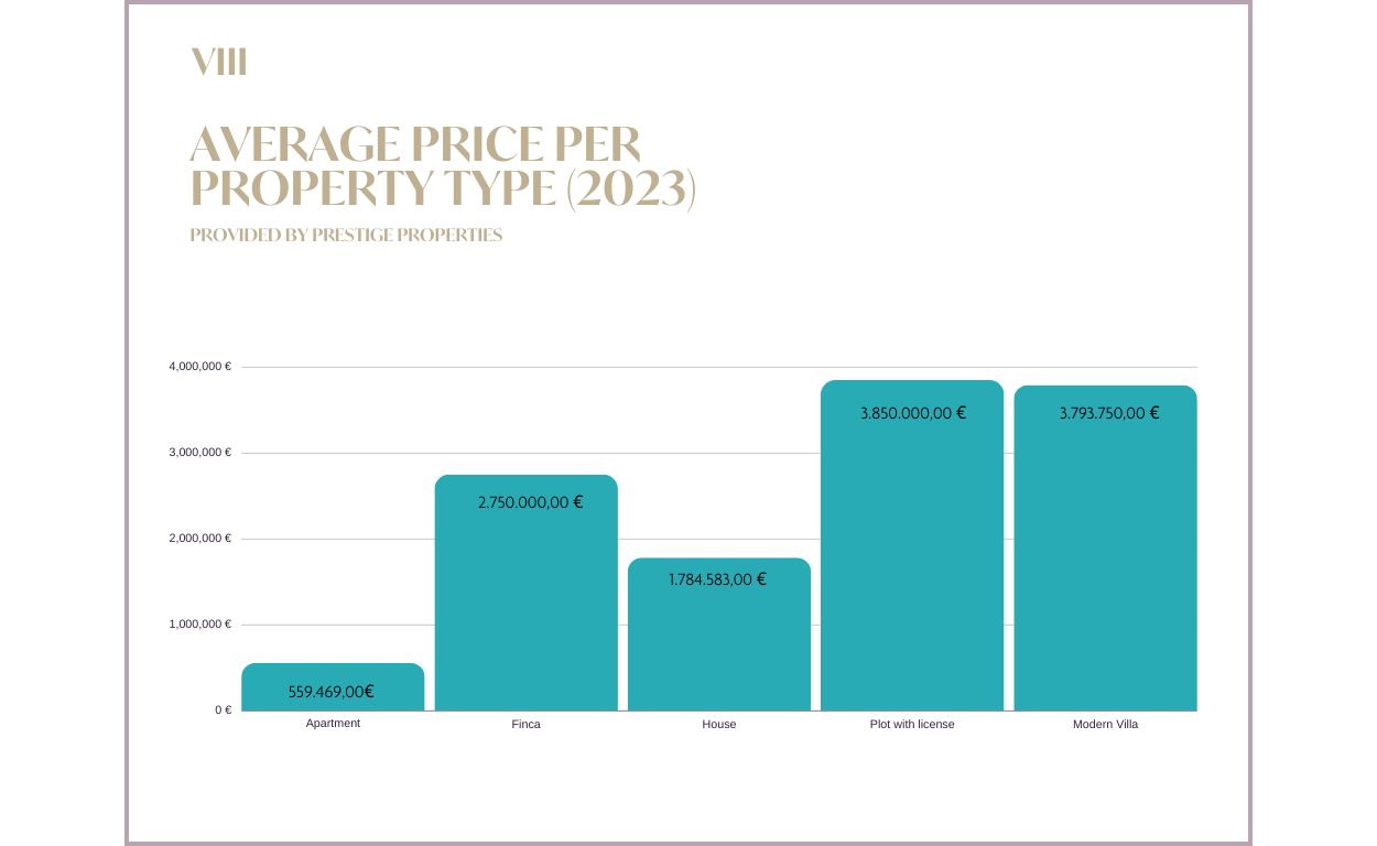 Precio medio de venta de cada tipo de inmueble en Ibiza