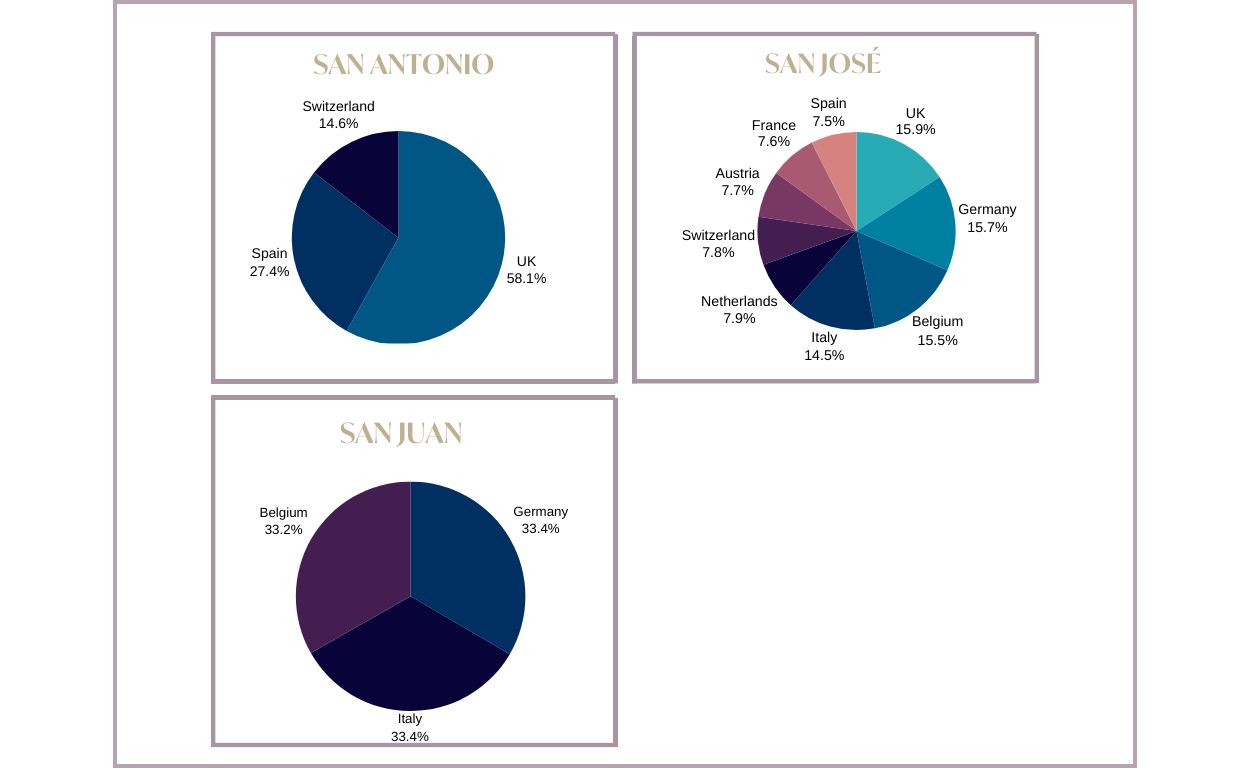 Los compradores belgas, que constituyen el 9,8% de nuestra clientela, demostraron el gasto medio más elevado en 2023. Este exigente grupo aportó el 18,65% del volumen total de ventas, mostrando una preferencia por propiedades más grandes destinadas a segunda residencia. La evolución demográfica de nuestros compradores subraya el amplio atractivo de Ibiza y las diversas preferencias que determinan sus decisiones de inversión.