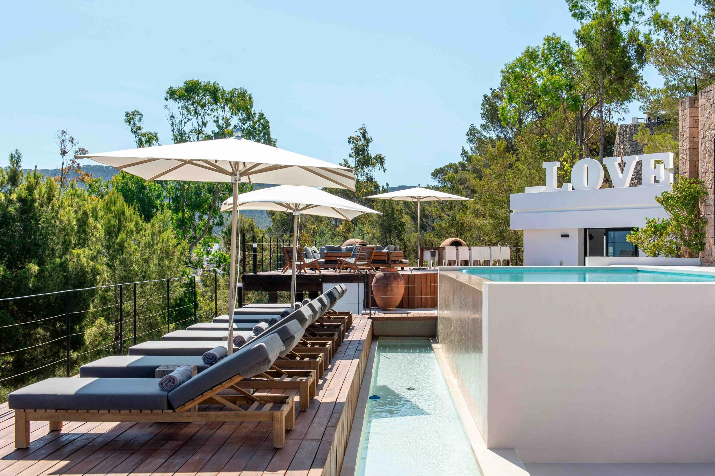 Elegante finca en Ibiza con piscina climatizada de agua salada y vistas al valle