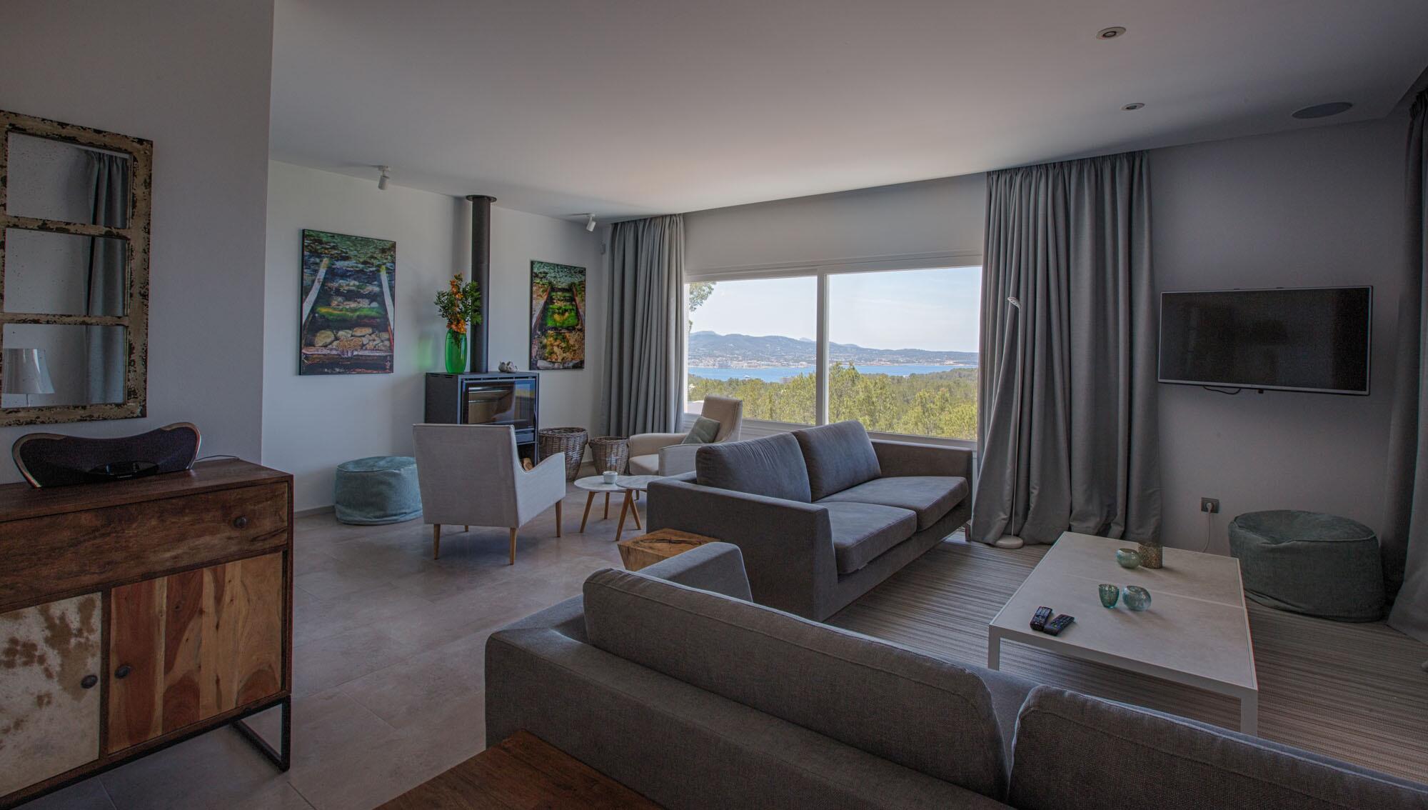 Villa moderna con licencia de alquiler y vista al atardecer en Cala Salada