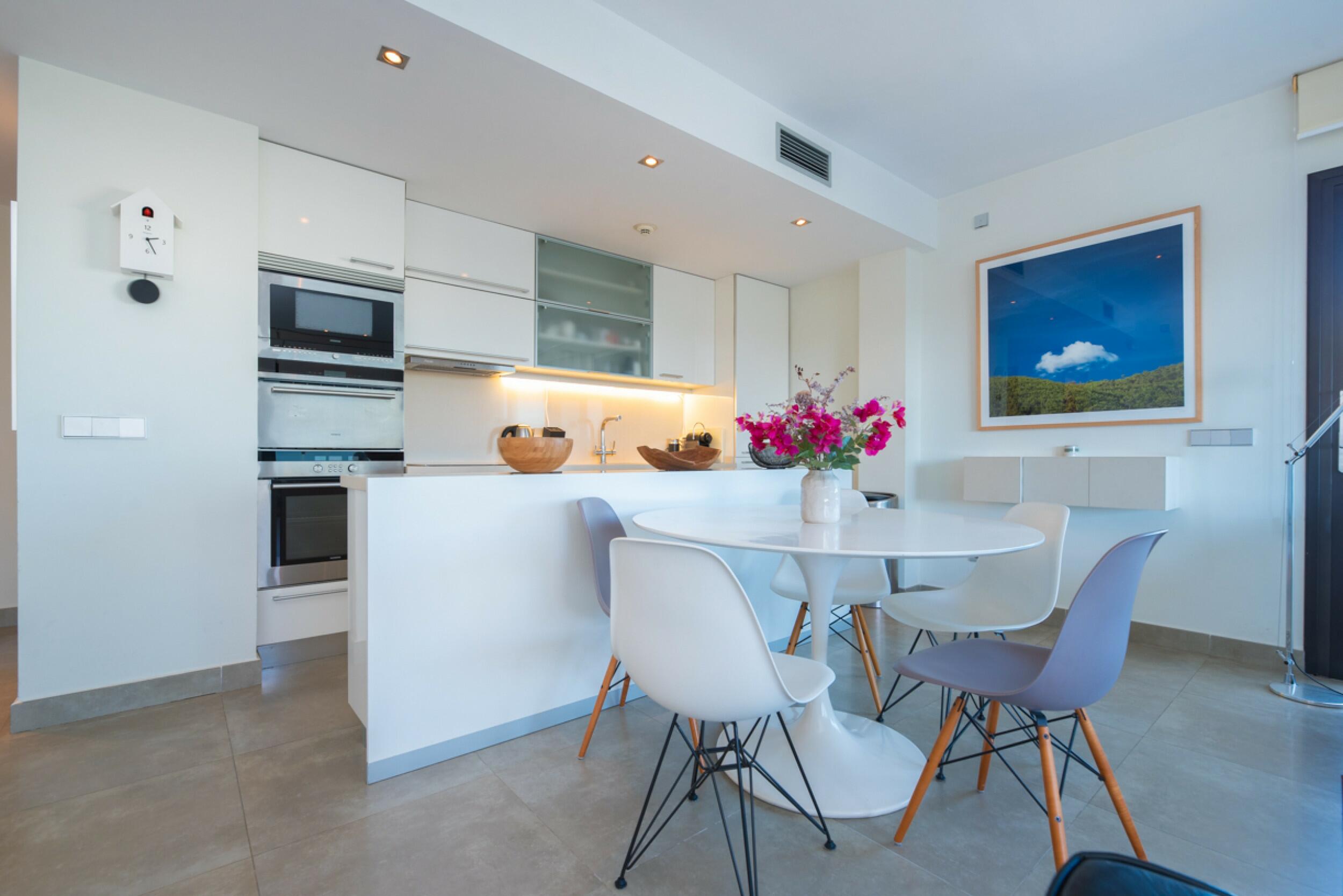 Ubicado a solo diez minutos a pie del centro de Ibiza, a veinte minutos de Dalt Vila y a diez minutos en coche del aeropuerto y de las populares playas de Platja d’en Bossa y Talamanca, este apartamento goza de una ubicación ideal para descubrir todas las riquezas de Ibiza. El barrio también ofrece numerosos centros deportivos y un fácil acceso a diversas comodidades, optimizando así el confort y la calidad de vida.