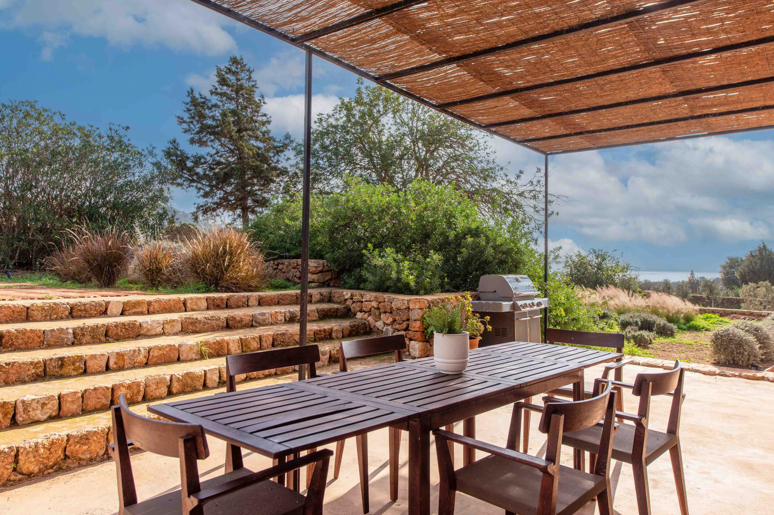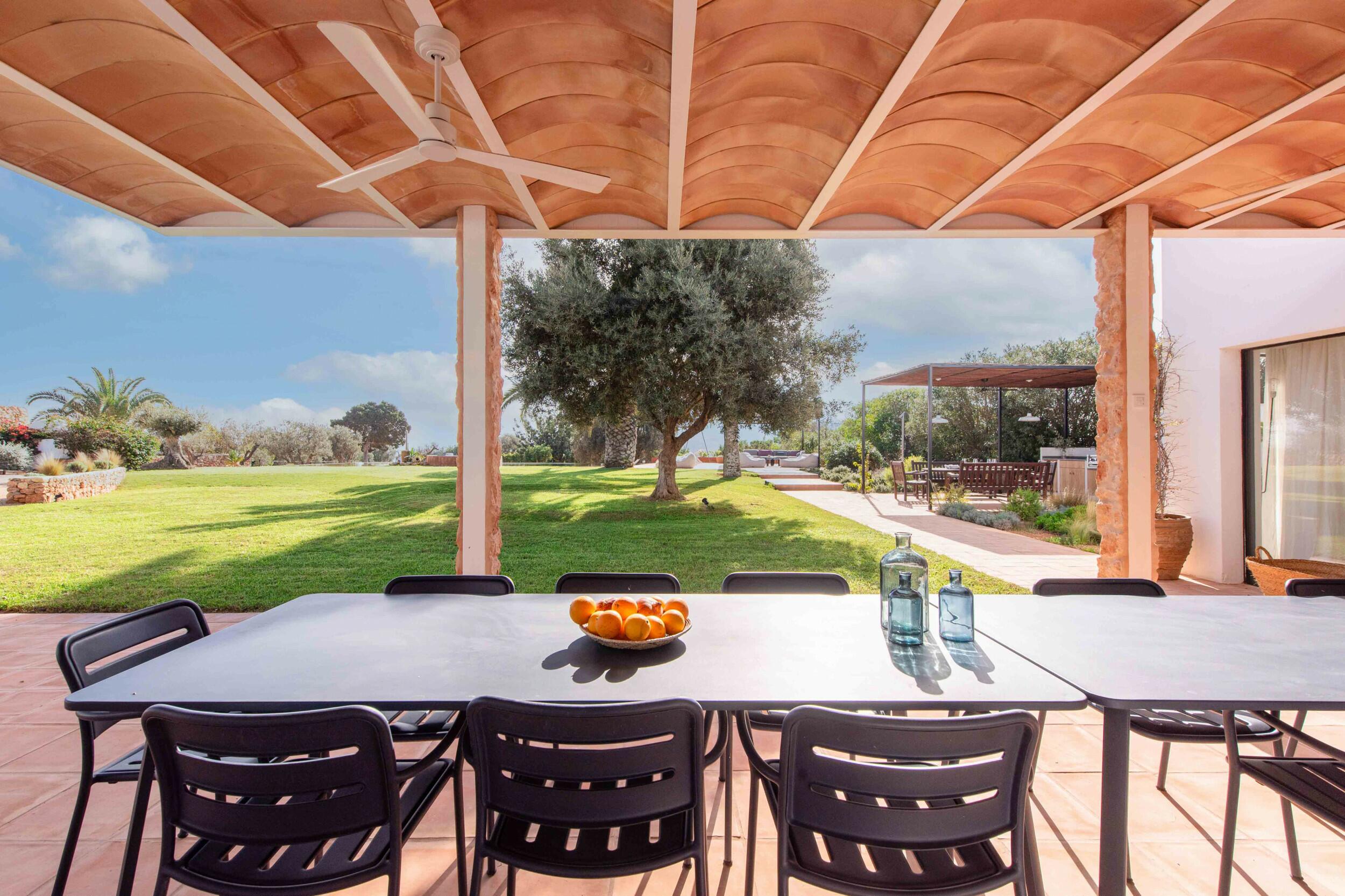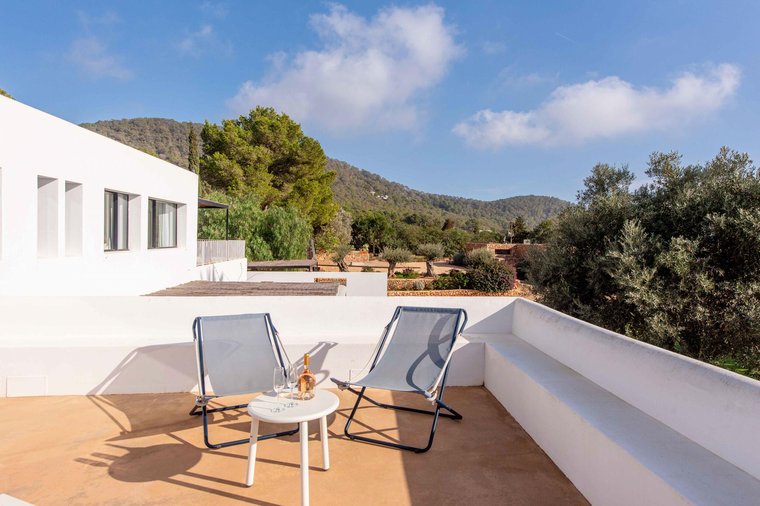 Múltiples terrazas ofrecen áreas de descanso sombreadas y un espacio para cenar al aire libre ideal para desayunos tranquilos, almuerzos relajados o cenas a la luz de las velas bajo el cielo ibicenco.