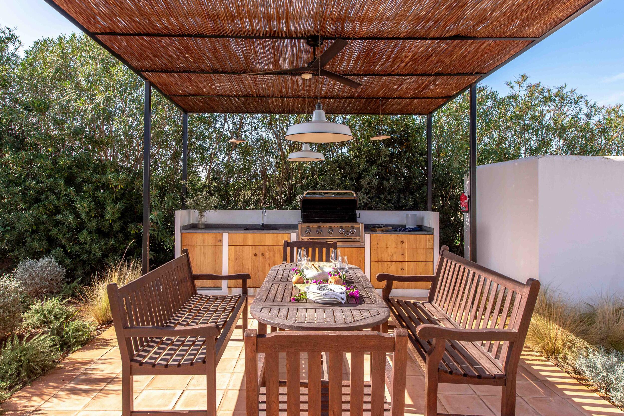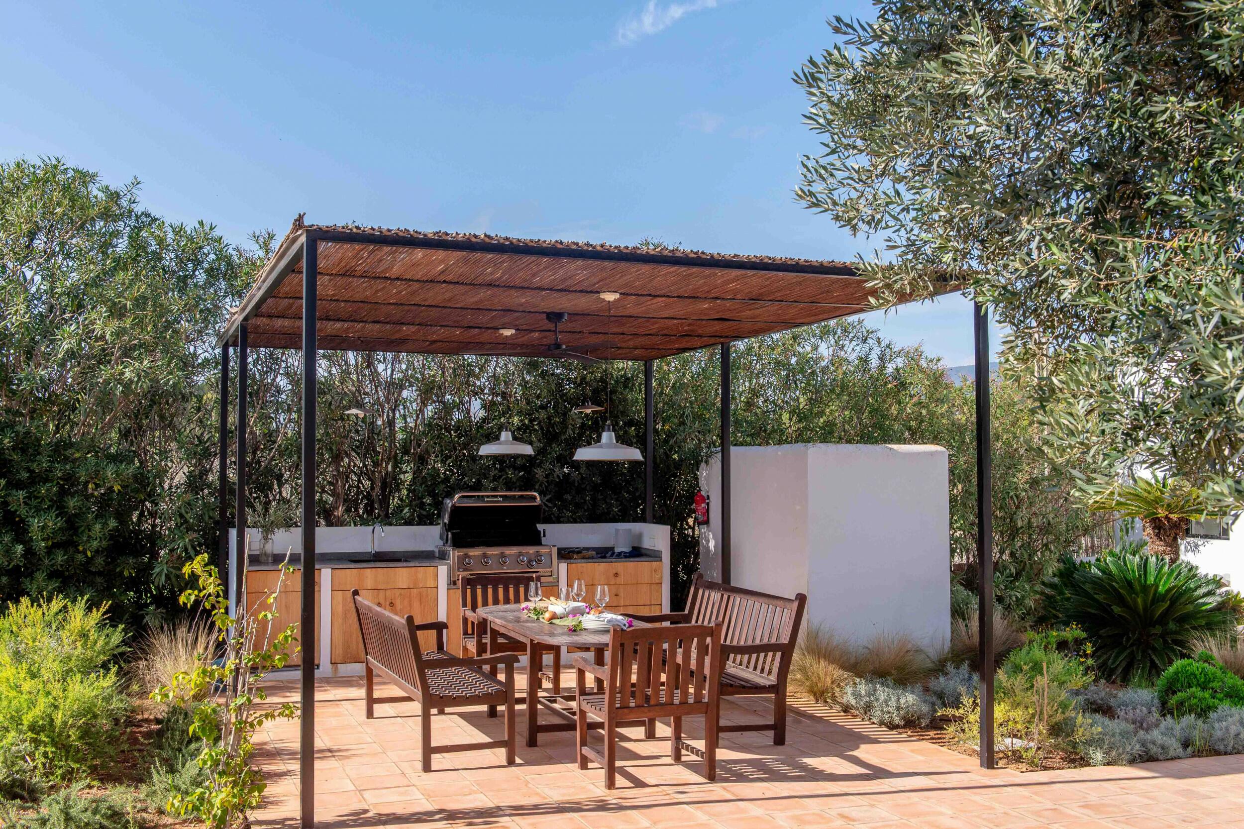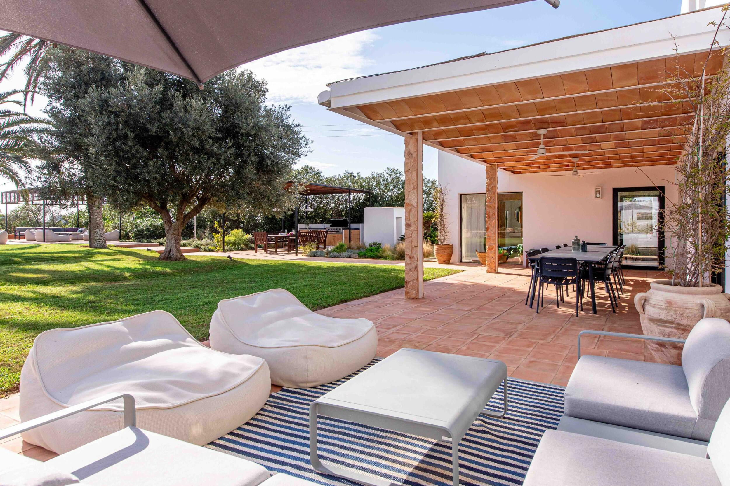 Múltiples terrazas ofrecen áreas de descanso sombreadas y un espacio para cenar al aire libre ideal para desayunos tranquilos, almuerzos relajados o cenas a la luz de las velas bajo el cielo ibicenco.