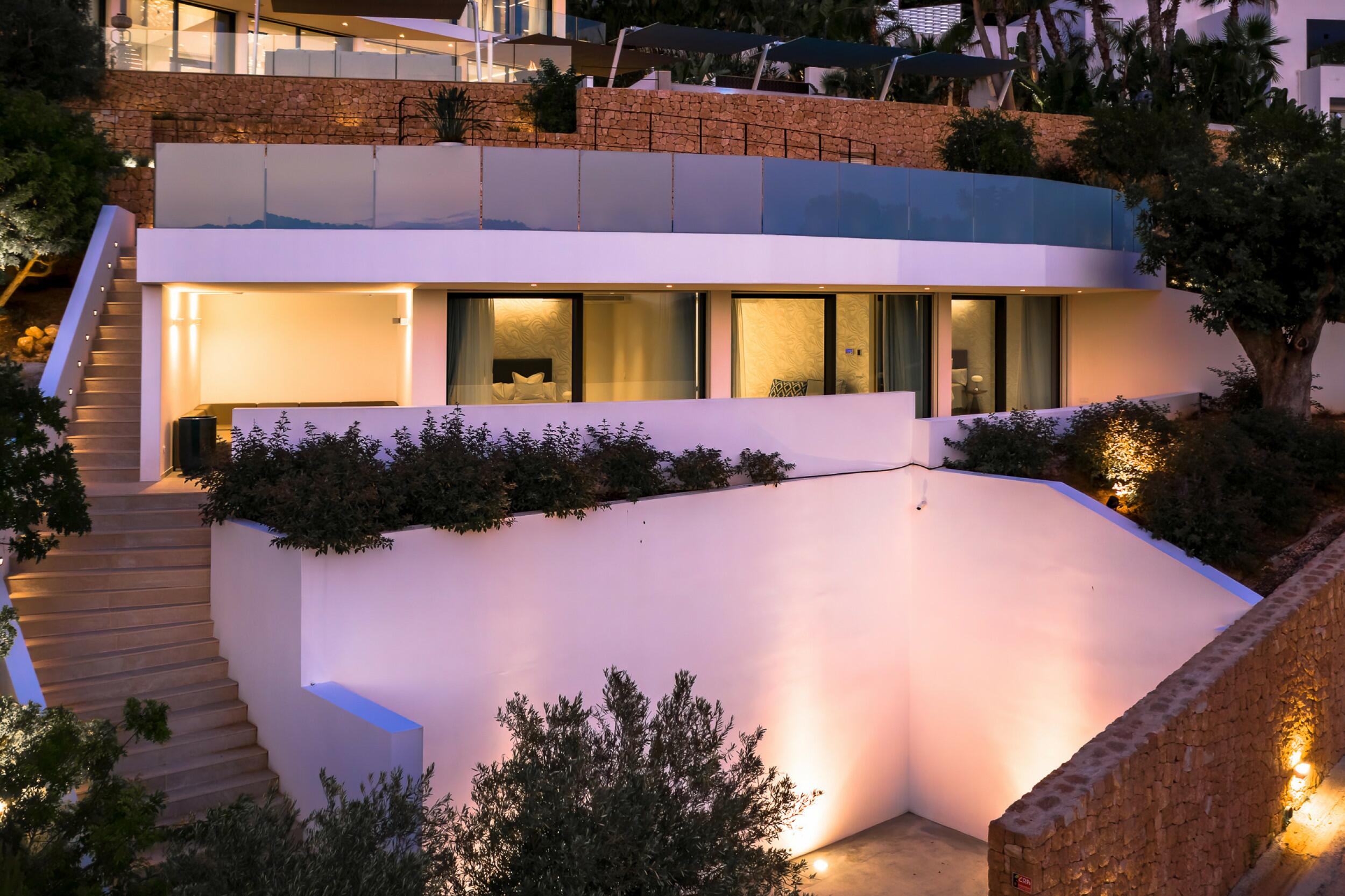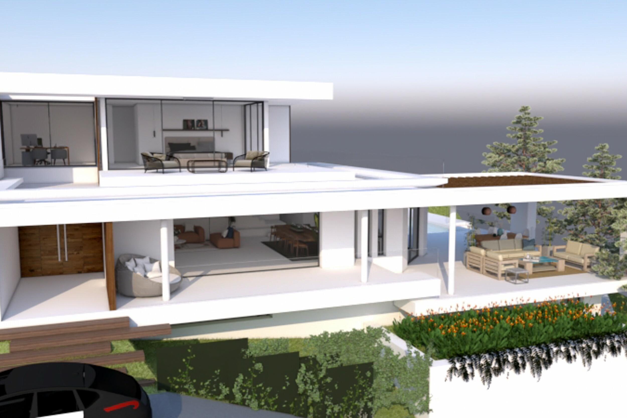 Moderna villa de diseño de nueva construcción con vistas al mar en una urbanización cerrada