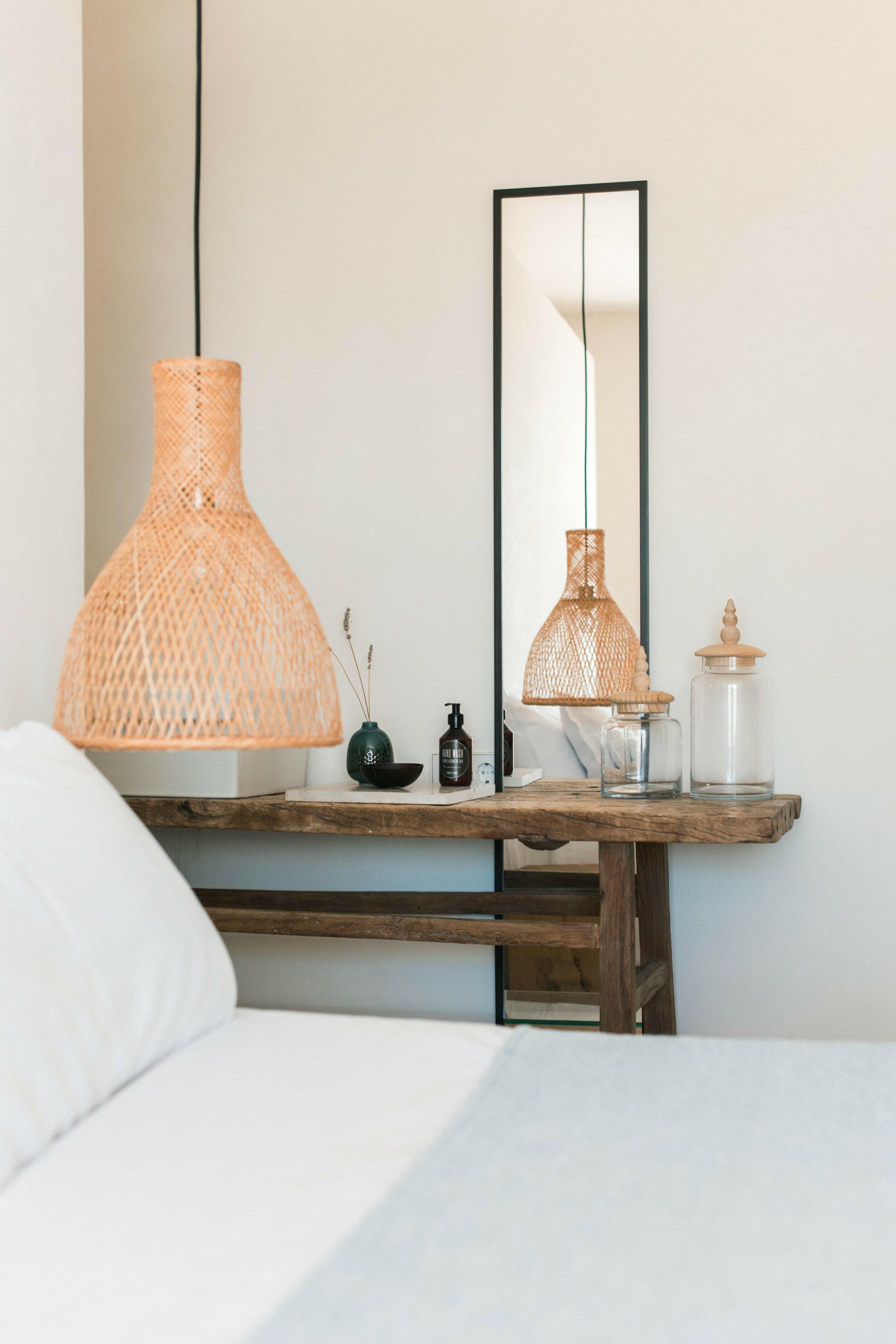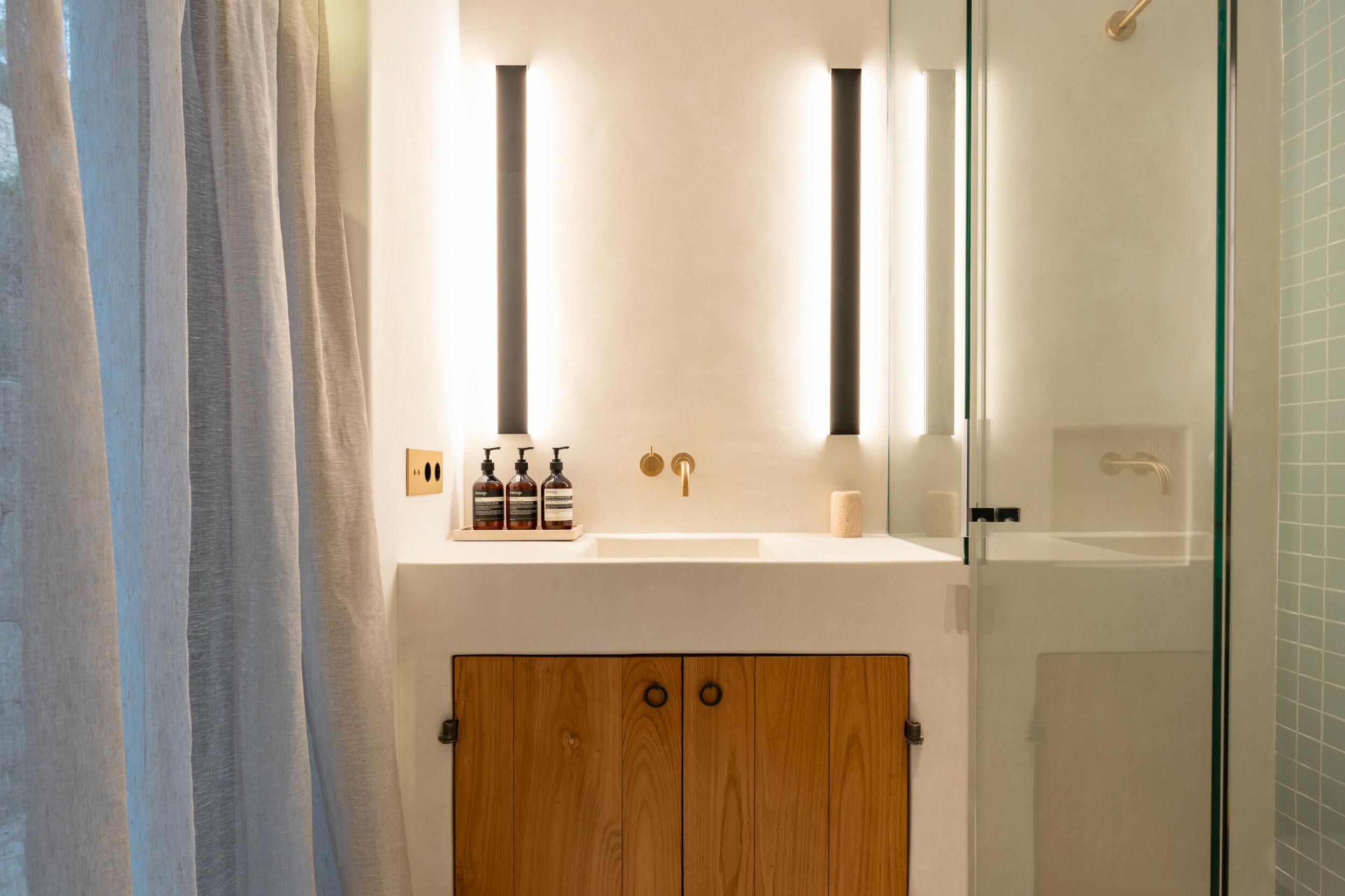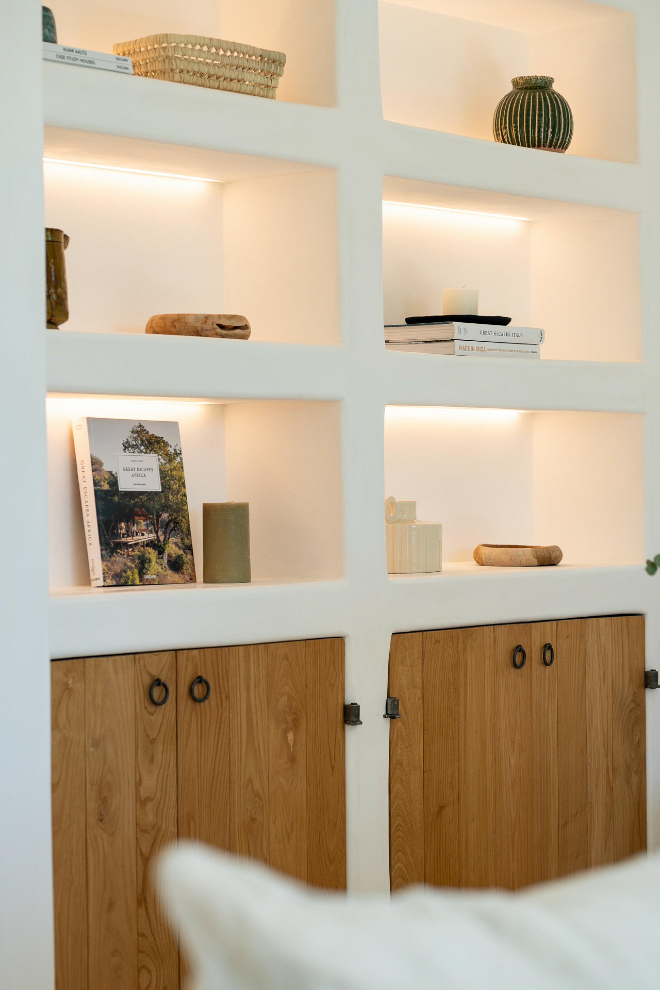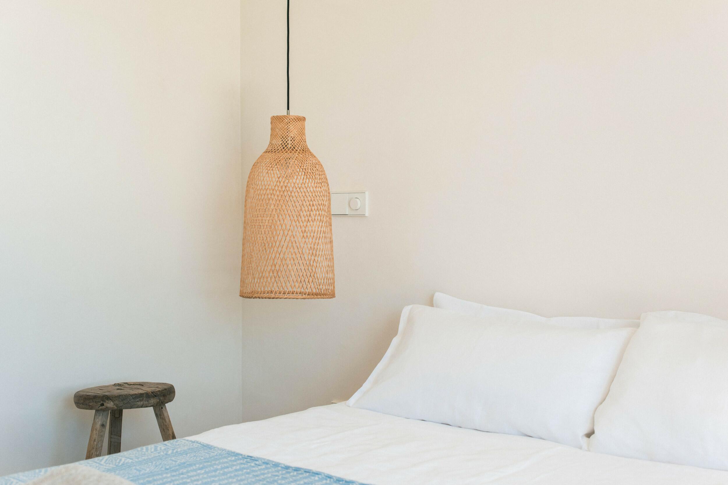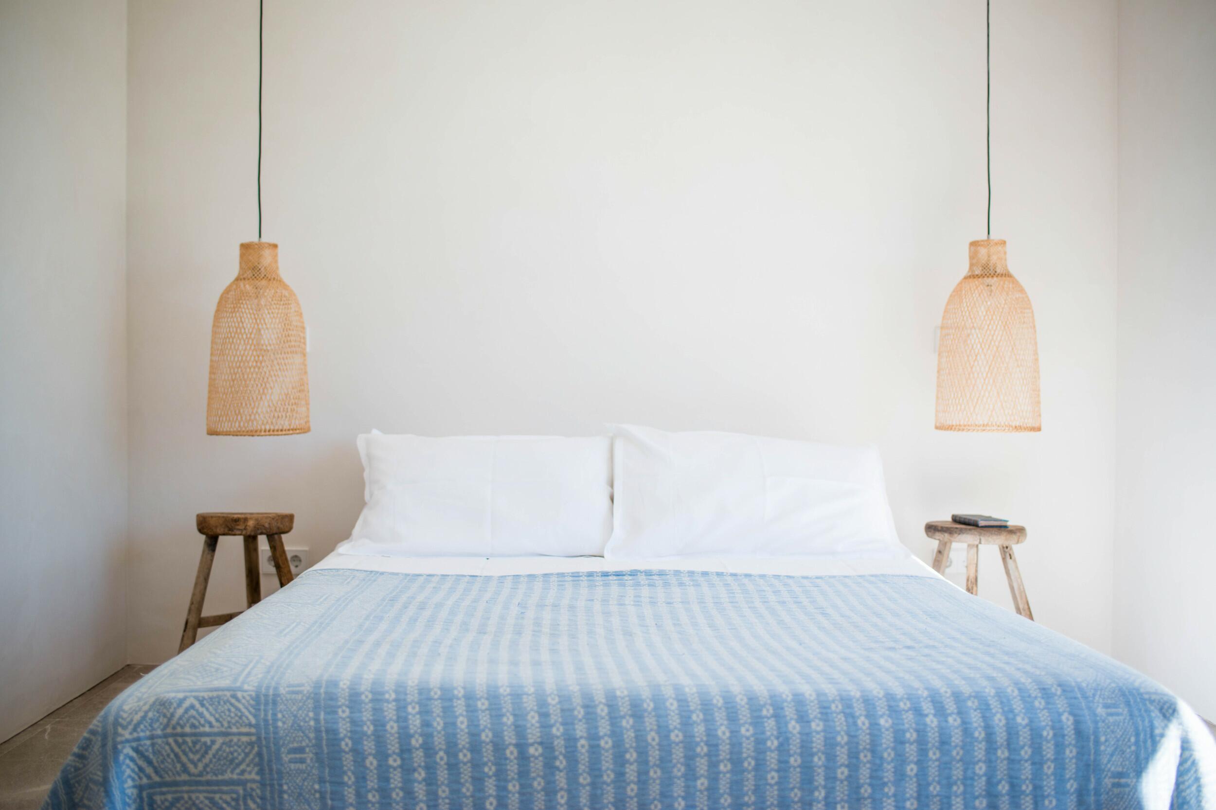 Esta propiedad muy especial, que tiene una superficie total de 32.000 m2 y una casa de 251 m2 tiene una hermosa e imponente fachada blanca de estilo campesino. Tradicionalmente, estas casas fueron construidas por los propios agricultores y ganaderos de Ibiza para vivir junto a sus tierras, y se distinguían por tener pequeñas ventanas de forma cuadrada y líneas curvas en los extremos de los tejados y las paredes.